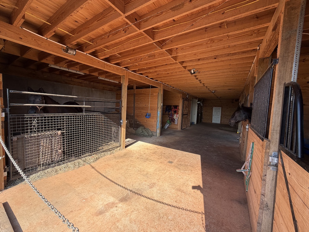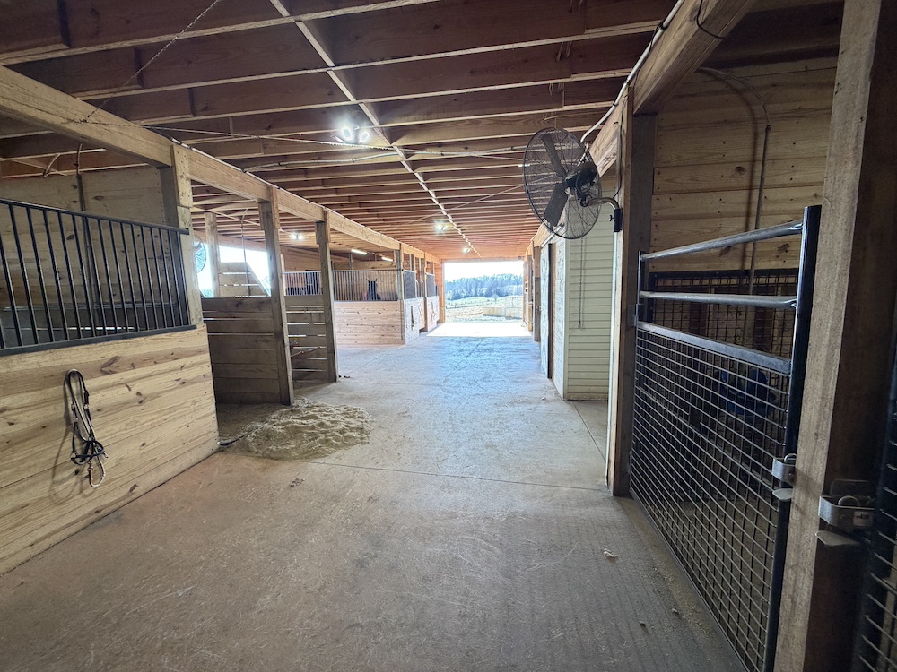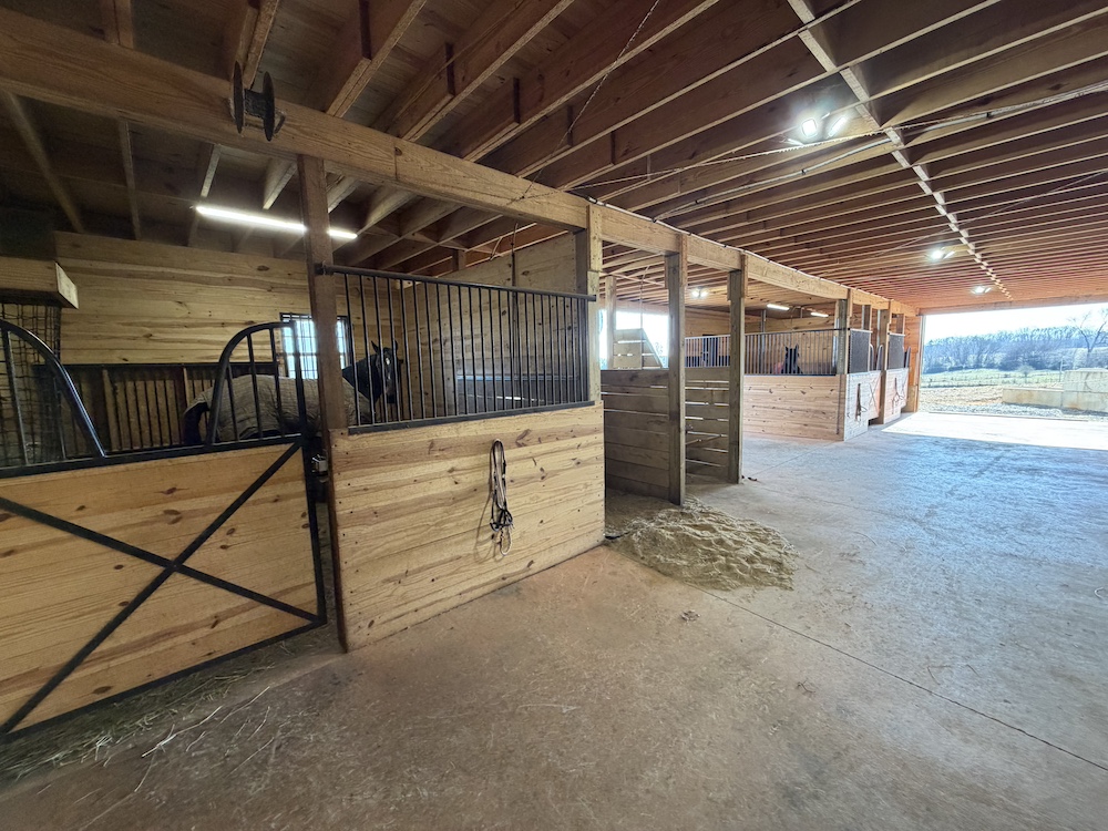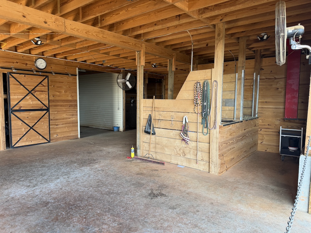 - 38x55 horse stall area, 6 stalls could be expanded to 7, wash area, tack room