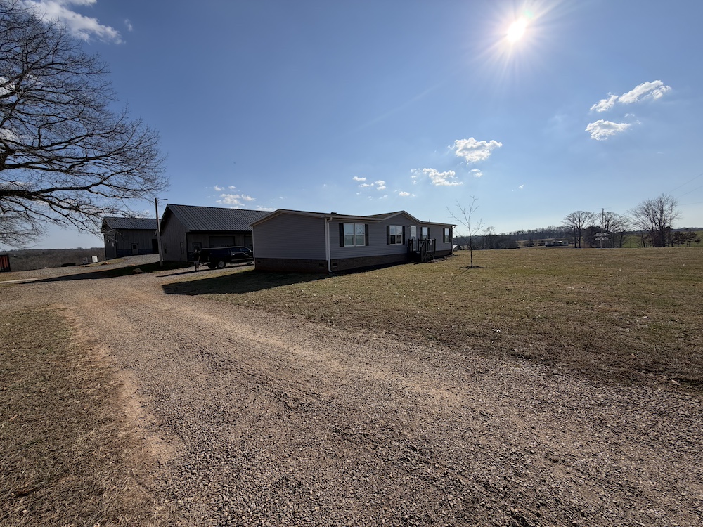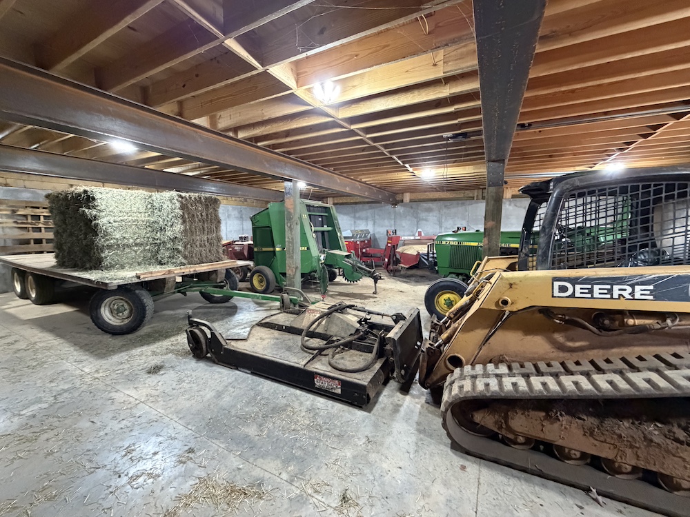 Improvements include an impressive 32x48 three-bay insulated shop with a 9x48 overhang, spray-foam insulation, attic shelving, and plumbing in place for a future bathroom (note: no septic installed for the shop). Additional structures include a 48x36 garage/shop, 38x64 workshop, 48x45 downstairs shop with concrete floors, LED lighting, and a roll-up garage door, and a pole barn.