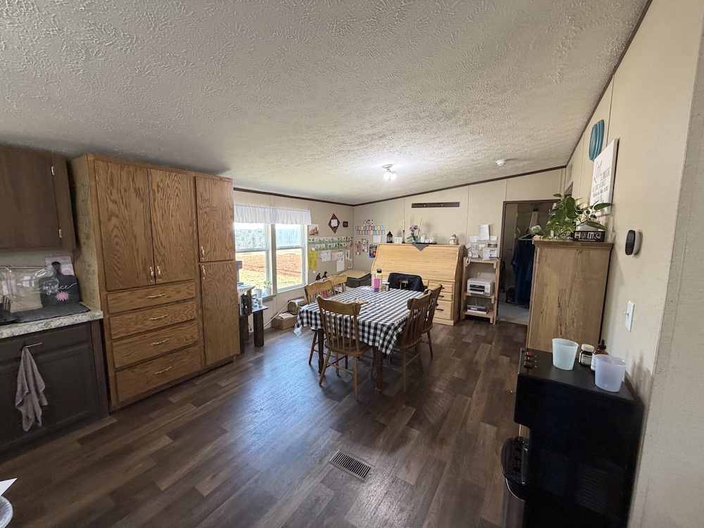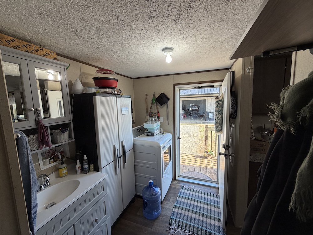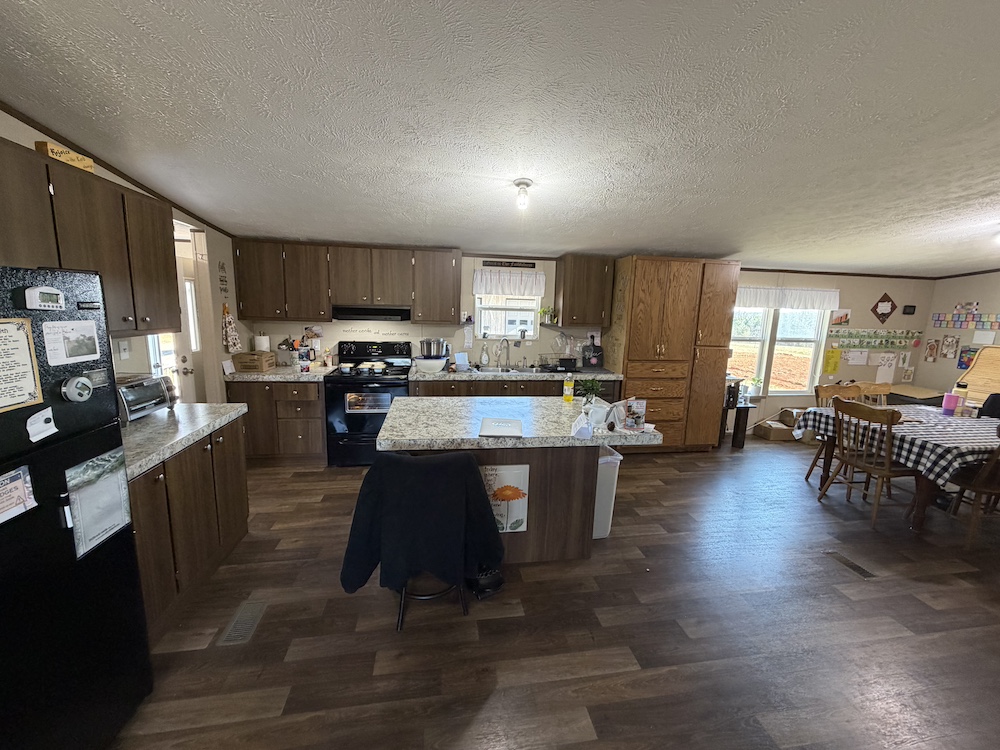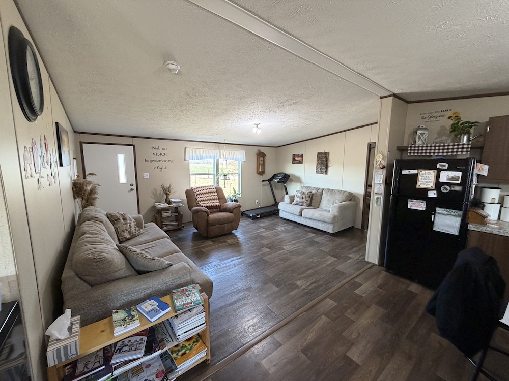 The residence is a 26x56 mobile home built in 2018, offering 4 bedrooms and 2 bathrooms. The refrigerator and stove convey, providing a move-in-ready option for full-time living or farm management.