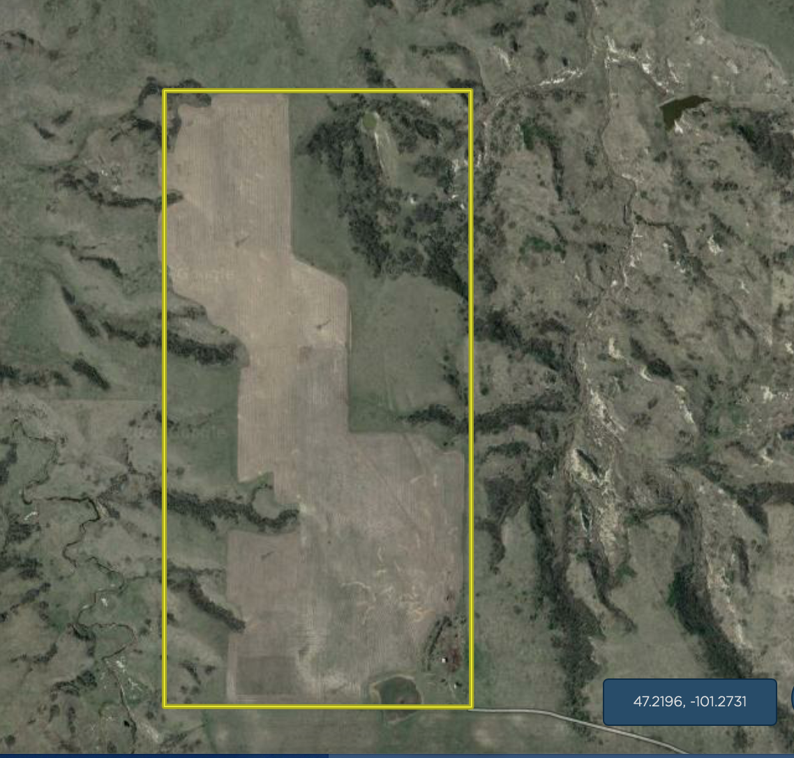 The perfect mix of tillable, pasture, hunting, and potential income. Located 10 miles North of Center, and only 45 miles from Mandan, this tucked away tract has a fantastic layout of productive tillable cropland, pasture, and hunting ground. Sitting a mile from the nearest road in any direction provides this property the peace and quiet that both humans and animals desire. Access to the property is convenient and easy as the prairie road is in great condition and going through the two gates gives you a secure feeling as you leave civilization behind. Pulling up to the Southeast corner of the property you are greeted with an old farmhouse and shed that takes you back to a simpler time. If you like old barn wood you are in luck with these buildings. The house is inhabitable, but the shed, which is an old granary, is in great condition with a new steel roof installed in recent years and a concrete floor. With very little work, this 24’x34’ building would make a perfect cabin to stay in as you enjoy everything this property has to offer. The entire property is fenced on all four sides, and gated. The approximately 160 tillable acres has a great Productivity Index (PI) of 73 and is currently in its 3rdyear of alfalfa, producing approximately 320 large round bales per year with 2 cuttings. The crop is in excellent condition providing a lush and thick stand, and with the high PI, any crop would do well here. The hunting is phenomenal and both whitetail and mule deer are commonly seen while I have been on the property, as well as many other animals. The current owner states numerous large bucks of both species have been taken and missed over the years. The habitat here is ideal with several buck brush and bull berry choked draws that lead up to the alfalfa field. In the draws and coulee’s, you will find natural springs flowing into dams that provide vital water year-round. The southwest corner of the property adjoins an additional 316 acres of public hunting land as well for even more opportunities. Deer and other animals from neighboring properties are drawn to this tract as it has everything they need in the form of food, cover, and water, all within an hour’s drive from Bismarck and Mandan. I don’t think there is anything else that could be wanted in a property, but there is potentially a lot more to be had. The current owner has signed a contract with a wind energy company to further explore the possibility of putting wind turbine(s) on this property. If it goes through and turbines are put up, the contract, and therefore, the payments for the wind turbines will be going with the sale and land, to the buyer. Call me for more information or to take a look at this incredible opportunity.