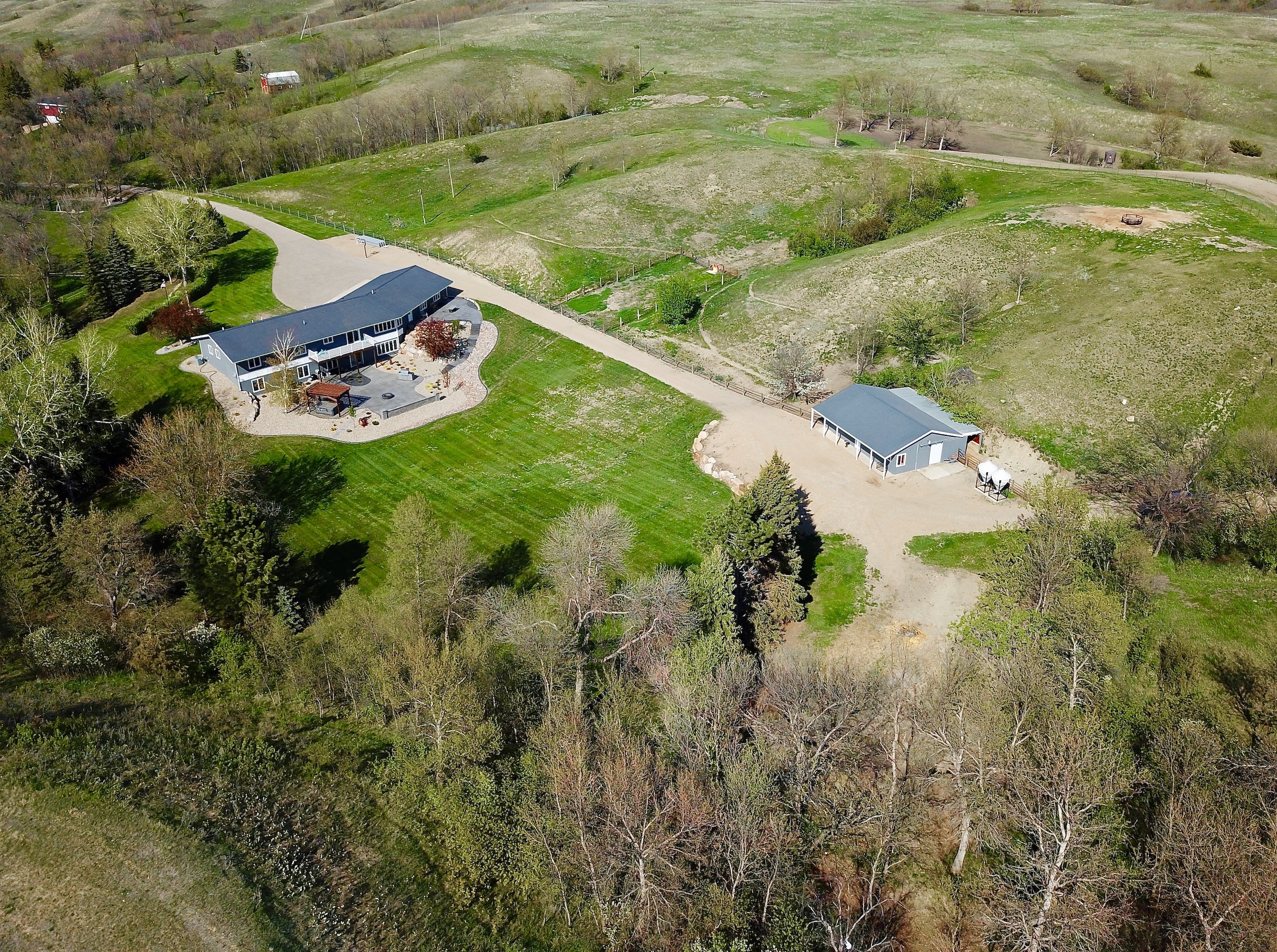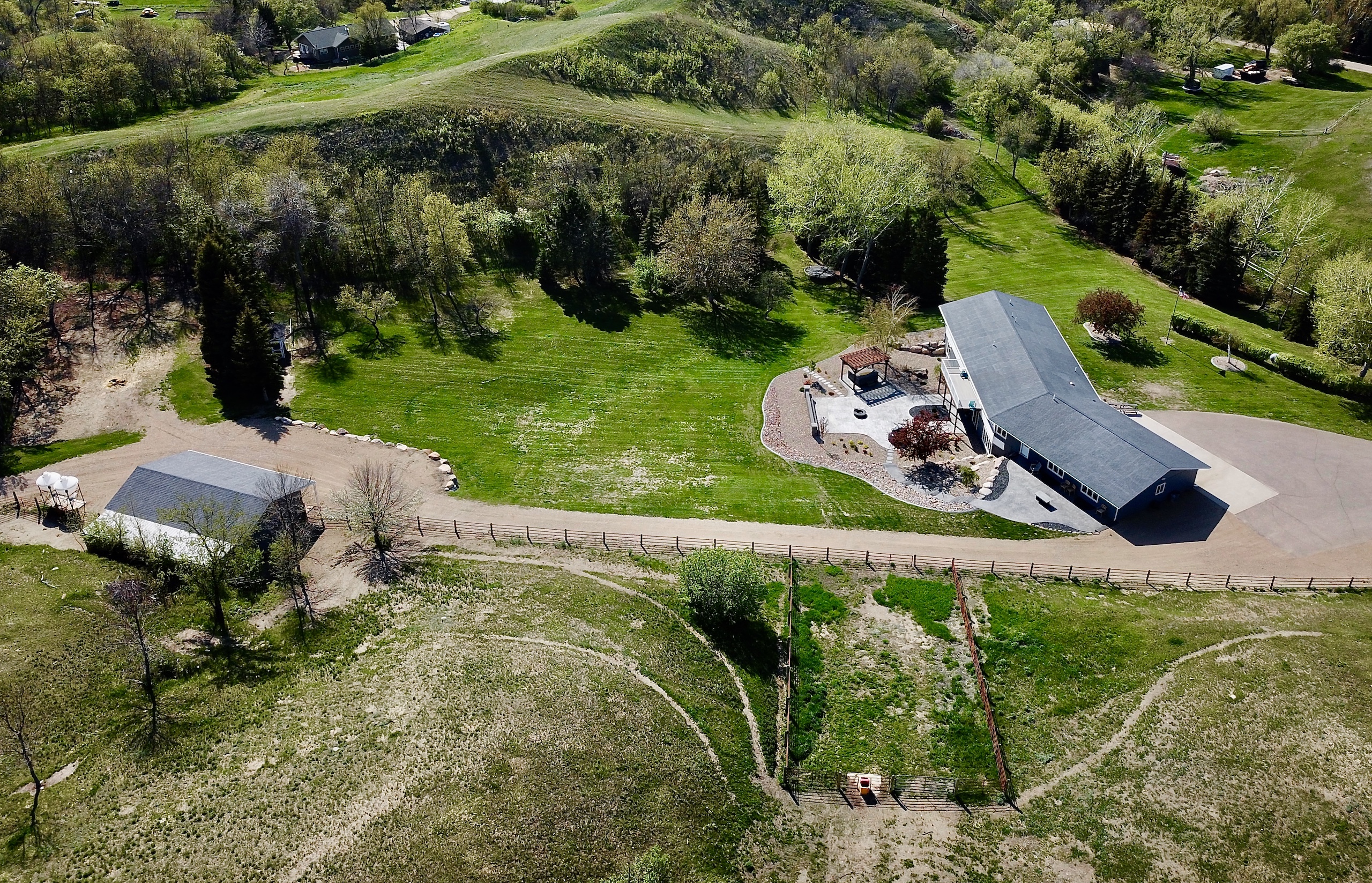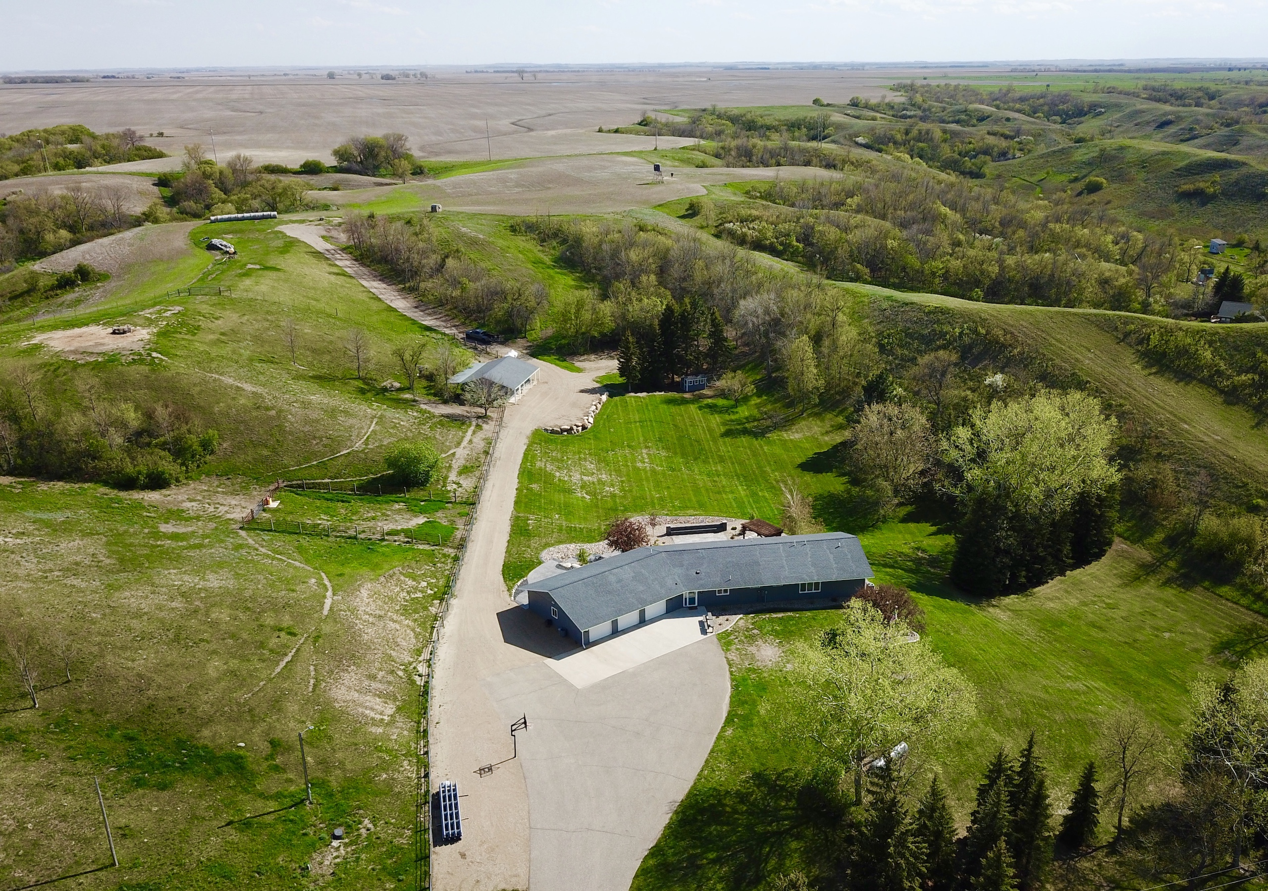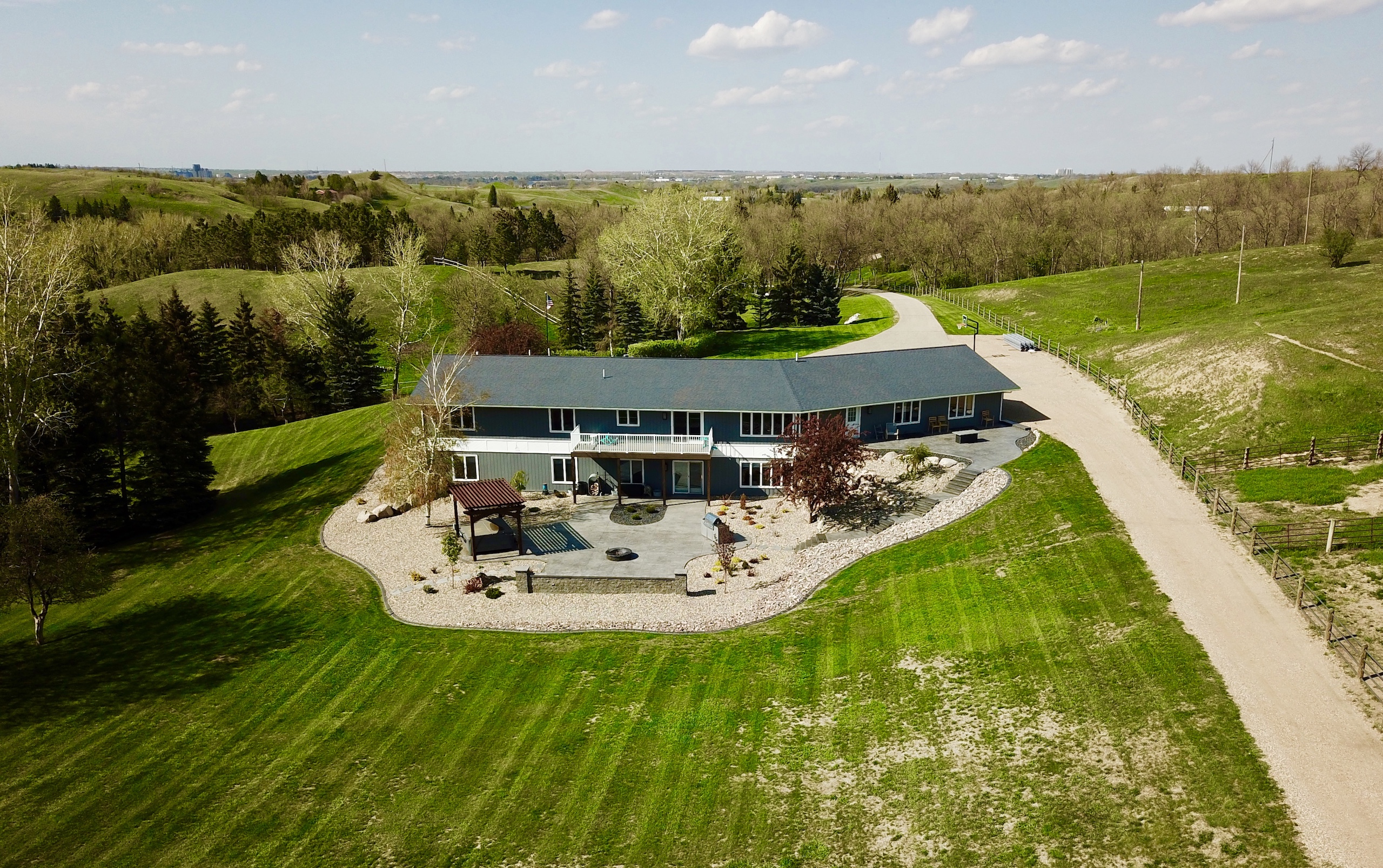 The attention to detail and quality of every aspect of this property is simply amazing. It starts with getting there when you drop down into the draws on Minot’s southeast side. Leaving the flat farm ground behind, you enter a different world of hills and brushy draws that come alive with animals and seclusion. There is no gravel to take or dust to deal with as the paved driveway leads right to the front door or the five-bedroom, 3.5-bath, 5,040-square-foot home that has been meticulously kept up and cared for. The wide open floor plan and numerous windows give the main floor a bright, clean feeling, and with the kitchen island, wide bar top, dining room, and den area, there is no shortage of space to host people. The large maintenance-free deck off the dining room adds space to enjoy the sunsets and views of the large backyard. The lower level is much the same and has been recently completely renovated. It is another home inside a house with a fully equipped kitchen, two bedrooms, a bathroom, a dining area, an island bar, and a fireplace, to name a few of the amazing features. There are two heating/cooling zones in the home, one for the main floor and one for the lower level, so everyone always stays comfortable no matter where they are. Both furnaces are new, the pressure tank is new, the central air is new, and a new reverse osmosis system is installed, so the cleanest and best drinking water is there for you, and the list goes on and on. So many features and of the highest quality throughout give this home enjoyment and peace of mind. The attached three-stall garage is insulated, heated, and finished, so your vehicles and toys stay warm and dry with plenty of room for projects and tools. Moving outside to the back of the house and garage is the stunning patio area. Professionally installed stamped concrete, blocks, pavers, boulders, and landscaping make this look like Better Homes and Gardens cover. There is a fire pit area, a gas grill area, and a hot tub area, all easily accessed from the walk-out door of the home's lower level. Along the access road behind the house sits a 24’x40’ barn/man or woman cave. The front half is insulated, finished, and heated with a storage area. The back half is set up for cold storage with a concrete floor. It’s the perfect area for a play house, exercise room, storage, or a variety of other things. In the rear of the yard is a chicken coop with power and a thermostat for keeping critters safe and warm. There is an enclosed chain link fenced area attached to the shed, and it would be a perfect dog kennel because there is also an underground dog fence around the yard with three collars that will go with it. To top all of this off is the location. It feels like you are hours away from a city, but you are only minutes from the city, and its amenities are under 5 miles away. The demand for rural properties that have acreage within a few miles of a city is high in demand. This property is not only that but is incredible and has the “wow” factor everywhere you look. Call me today for more information about this amazing property and opportunity.