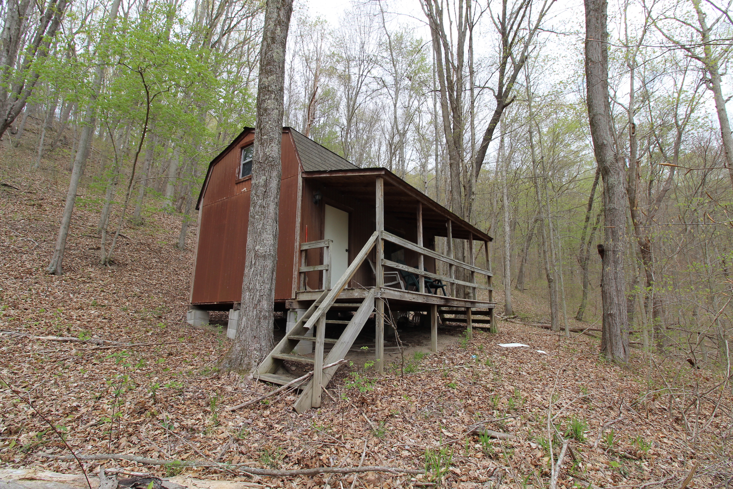- Small off-grid cabin in the woods which would be great for weekend family camping