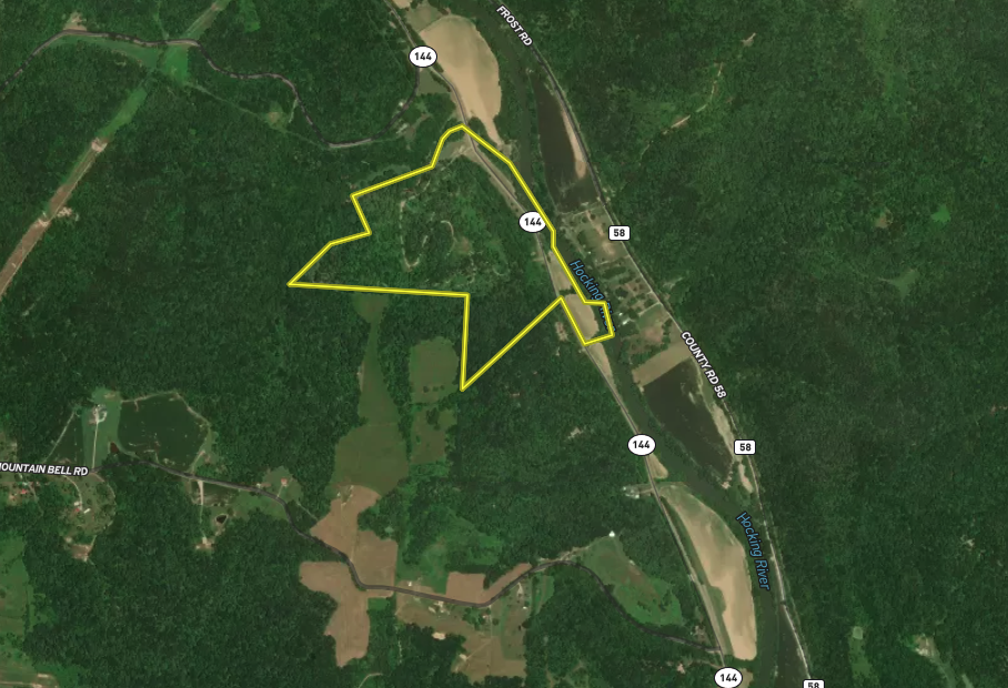 If you are looking for frontage on the Hocking River, this property is for you. 1,800 feet of frontage on the Hocking River and 2,000 feet of frontage on Jordan Run. 2,300 feet of road frontage on the riverside of SR 144 and 1,850 feet of road frontage on the other side. There are 4.4 acres of tillable in the river bottom, and the woods were timbered a few years ago, but many large trees remain. There are exposed rock outcroppings and multiple possible build sites. Abundant wildlife throughout the property. Old homestead on the property. The structure is in disrepair, and the condition of the well and septic is unknown.