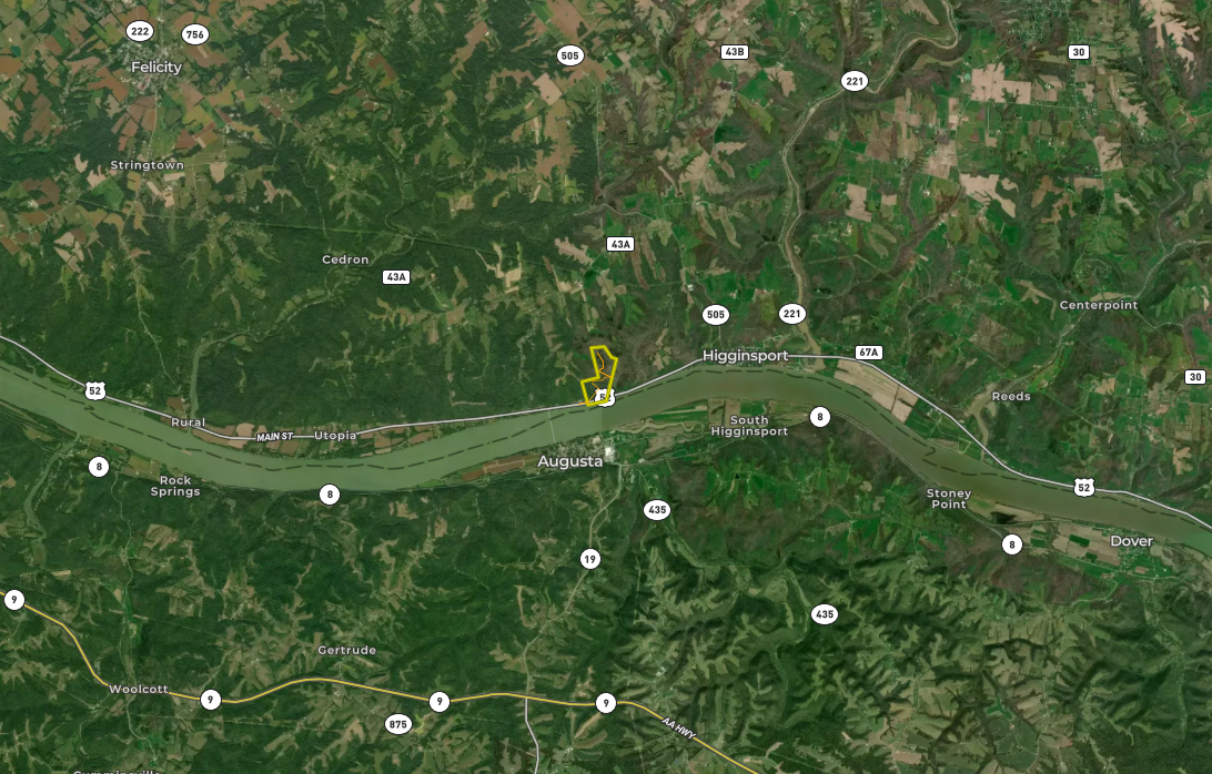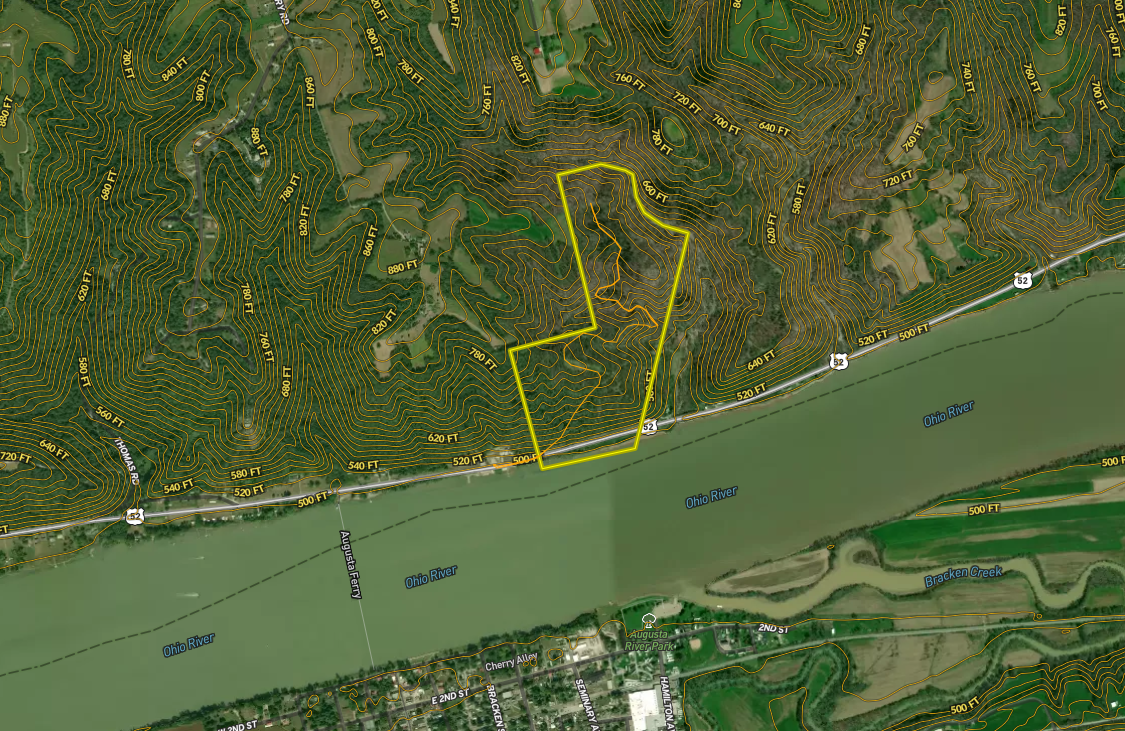 Southern Ohio beauty, with river views for miles! Along US Route 52 lies almost 100 acres of Ohio River valley perfection! A brand-new, professionally installed stone driveway leads from Ohio's scenic byway to a cleared ridgetop building site with breathtaking views of the Ohio River. A freshly constructed pond complements the future building site. It allows the new owner to wet a fishing line or admire the wildlife it attracts. Did I mention recreational opportunities? With Augusta Ferry right across the street, you can be in the historic town in just minutes to dine, shop, or explore. Are you a boating enthusiast? The property boasts several hundred feet of riverfrontage to construct your own personal boat dock. We haven't even mentioned the hunting. It might be the best part! This is a blank canvas of a bonafide southern Ohio trophy deer hunting paradise! Words can't describe this property. Come see for yourself! Contact a member of Team Hayden for your private showing!