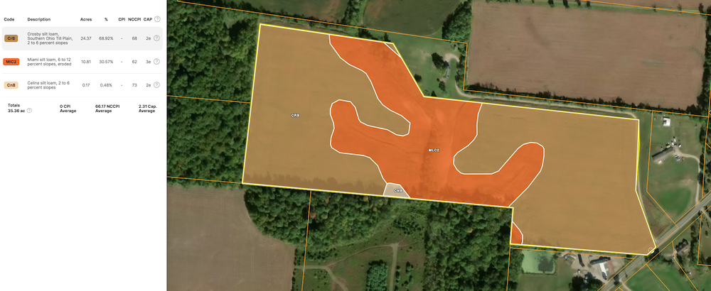 Here's a great opportunity for 35.441 acres, approximately 32 tillable acres, located in Champaign County. The property features productive farmland, primarily Crosby silt loam soils, with some Miami silt loam. Property includes a 3-phase electric pole on the property and deeded ingress/egress serving the neighboring driveway. Excellent opportunity for row-crop production or land investment. Easy access for equipment and strong yield potential. The property is currently in CAUV, and any recoupment would be the Buyer's responsibility. No walking the property without representation or a scheduled appointment.