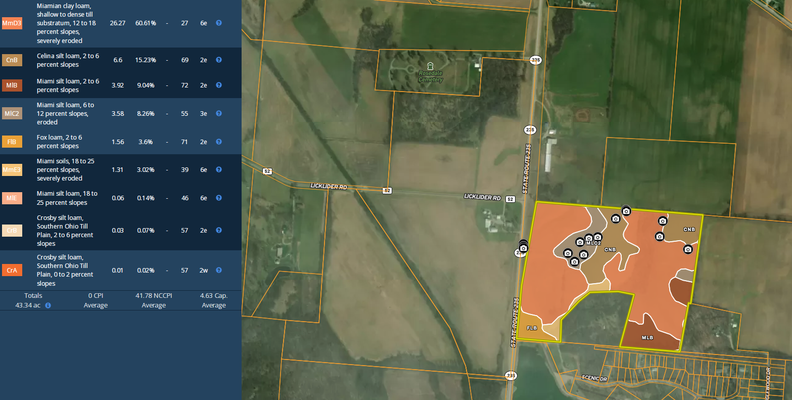 - Soil Consist of Miamian clay loam, Celina silt loam and Miami silt loam