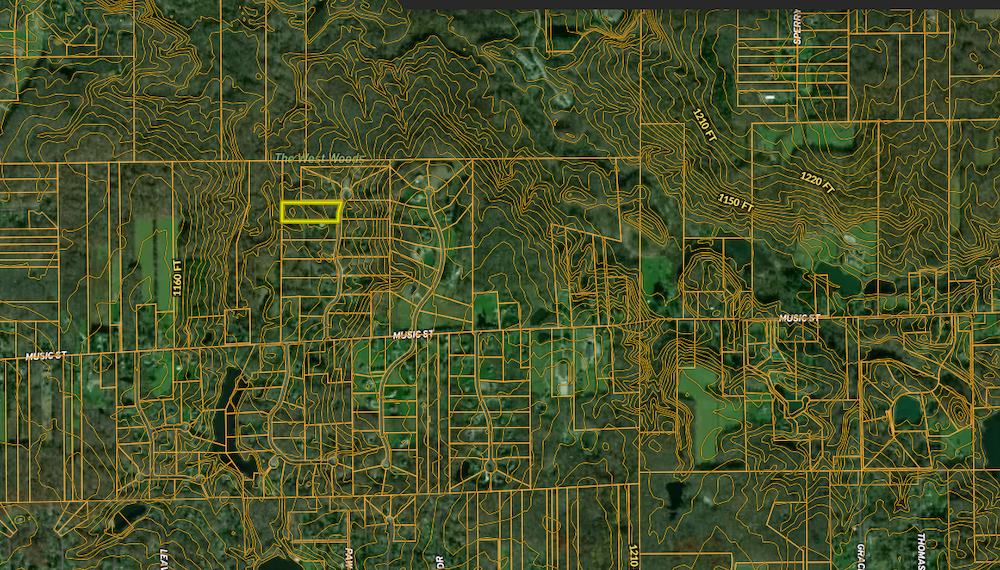 Wooded terrain with gently sloping ground