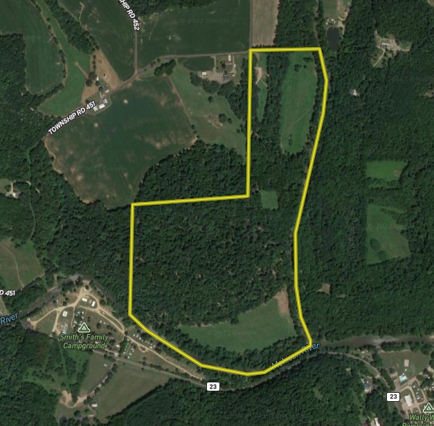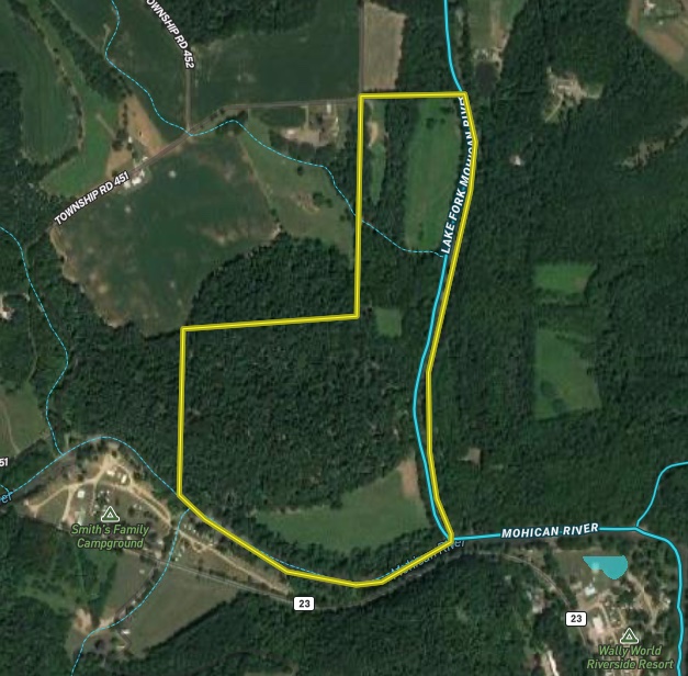 Here is an opportunity you do not want to miss! This unique property features 3,500 +/- ft of Lake Fork Mohican River frontage and 2,000 +/- ft of Mohican River frontage! The rolling terrain, open areas, and wooded acreage set this property apart from most! The well-maintained trail system makes getting around the property a breeze, with several cleared areas ready for food plots, row crops, and much more! An ideal mix of wooded acreage, thick areas, and water provides an excellent deer and turkey habitat, which is shown with all the deer and turkey sign seen throughout the property! The woods have mature timber scattered all over, with an additional pine thicket on top of the ridge. As you enter the property, you will find a 32'x48' building and a 34'x50' bank barn ready for you to make your own! An additional abandoned cabin is on the property but needs extensive work. The property also has electricity in multiple areas and two wells. Bring your family and friends to enjoy both rivers and all the property has to offer!