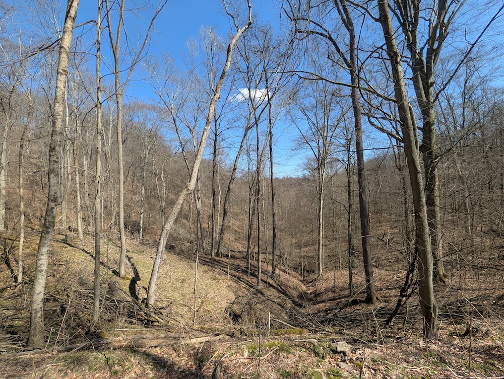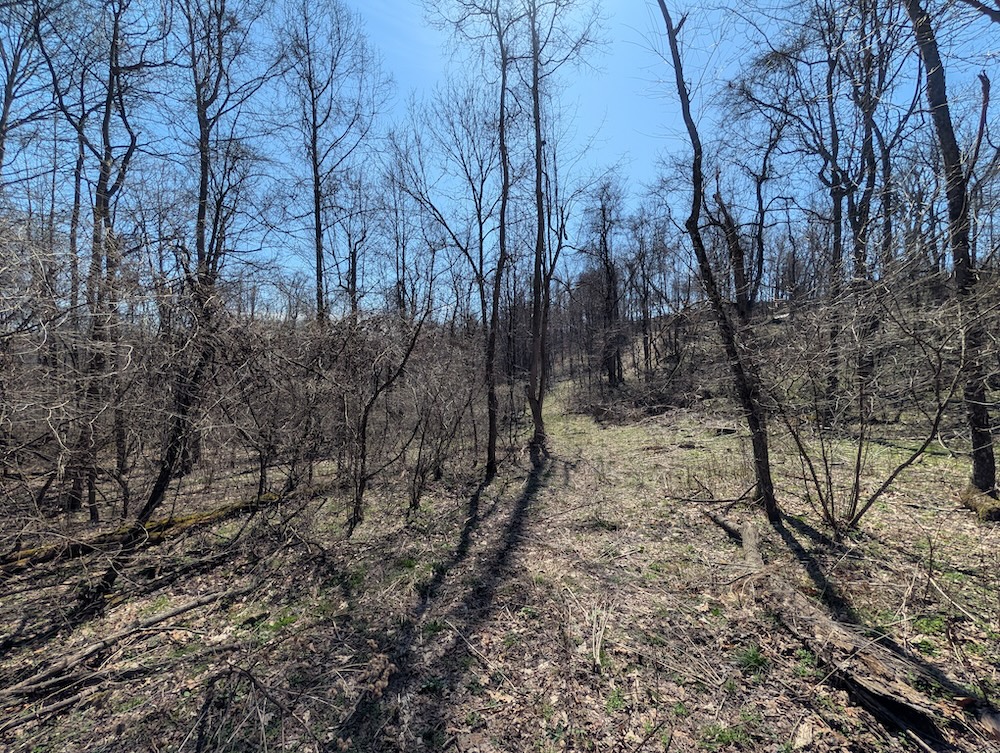 A defined trail system is already in place, allowing for access throughout the property. This feature supports ease of navigation for recreational activities such as hiking, scouting, and general land management. Internal access also helps connect key areas of the property, including the ridge and the lower sections.