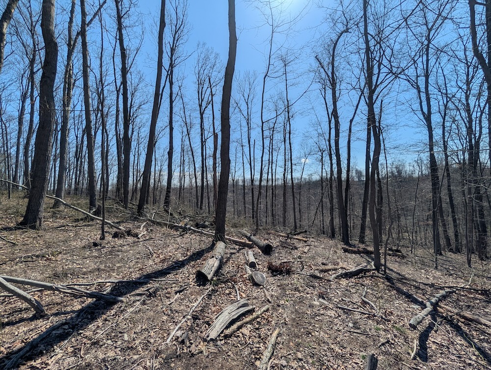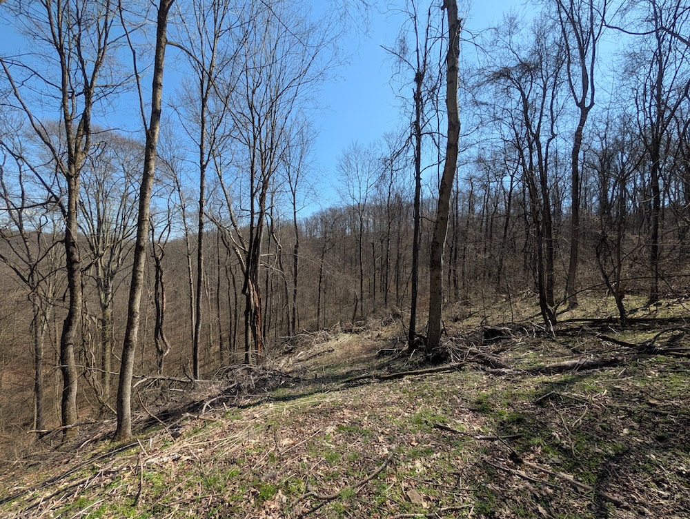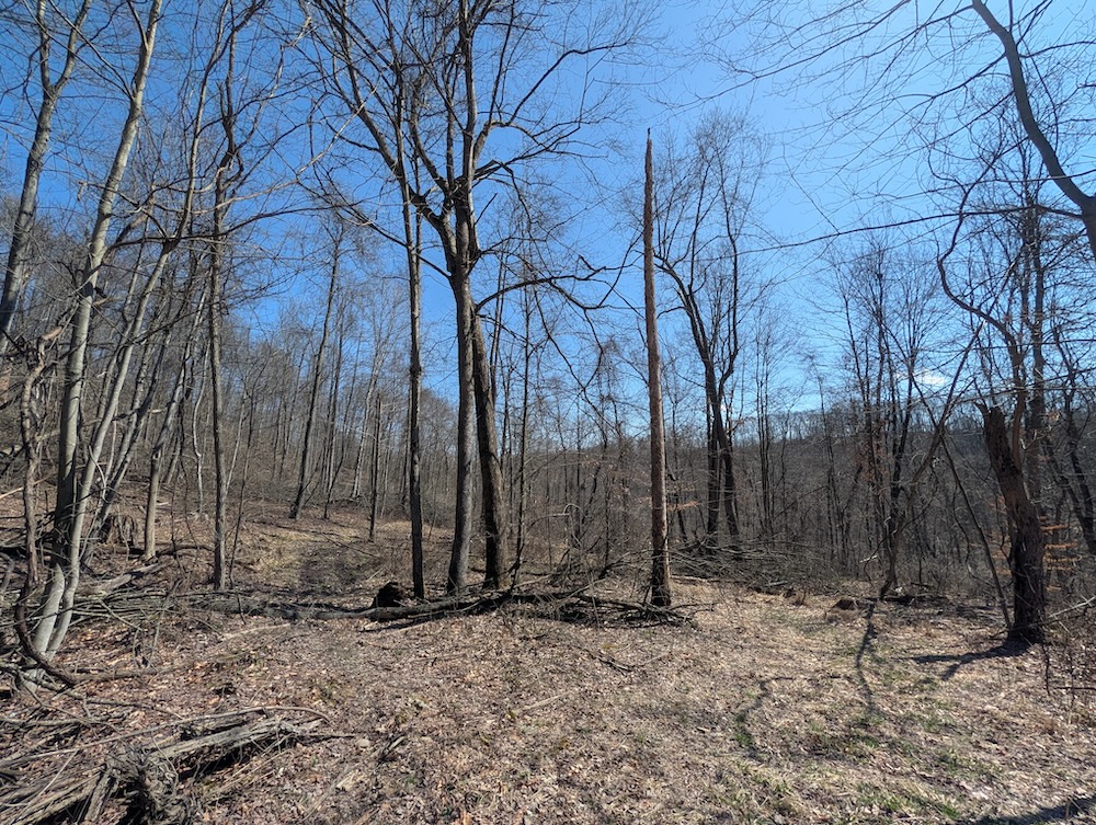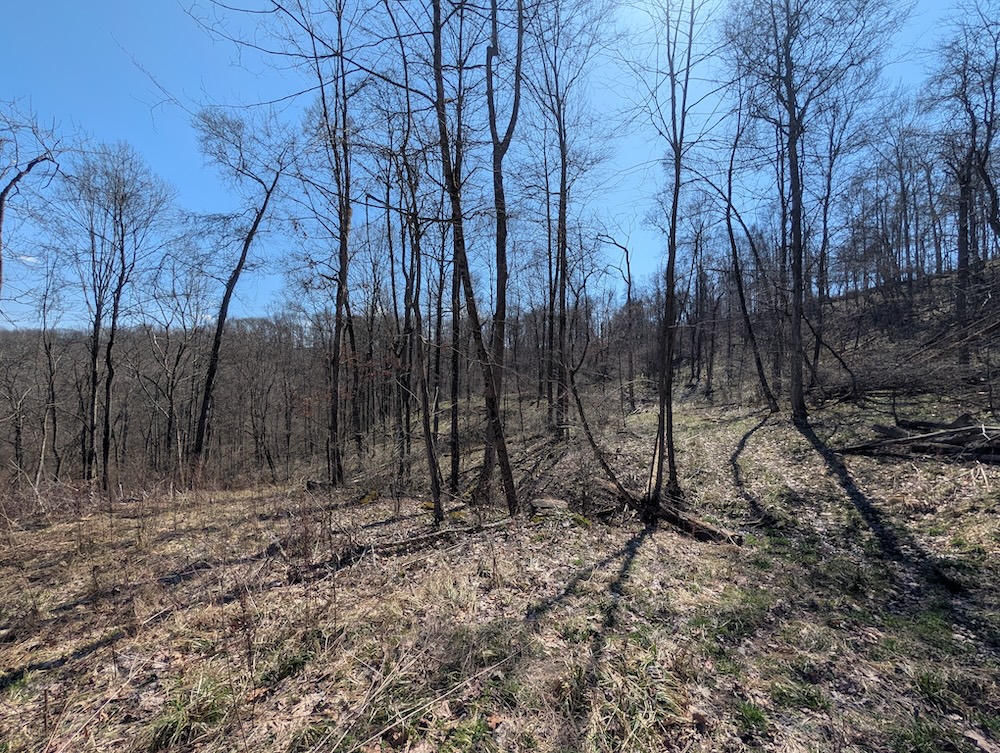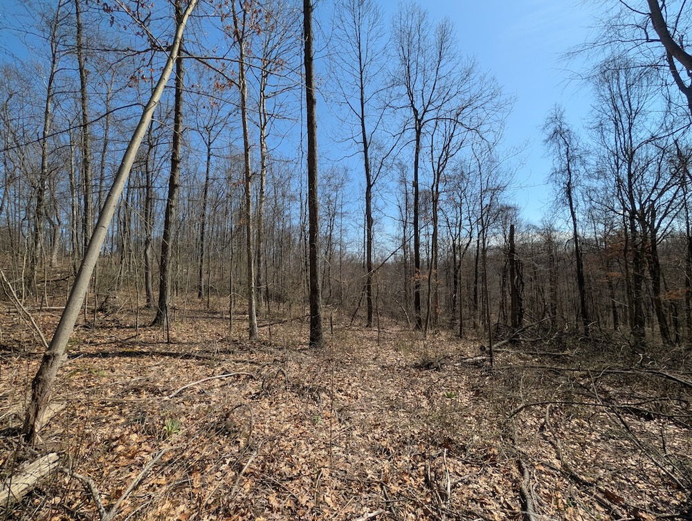 A recently completed select timber harvest has introduced a blend of open canopy areas and regrowth, creating increased understory development. This transition provides security cover and promotes early-successional habitat conditions commonly associated with improved wildlife use. The combination of mature timber and regenerating areas offers a balanced landscape across the acreage.