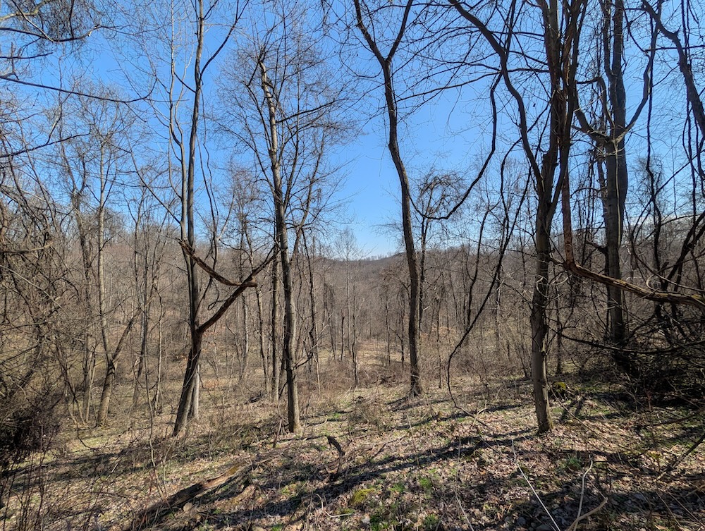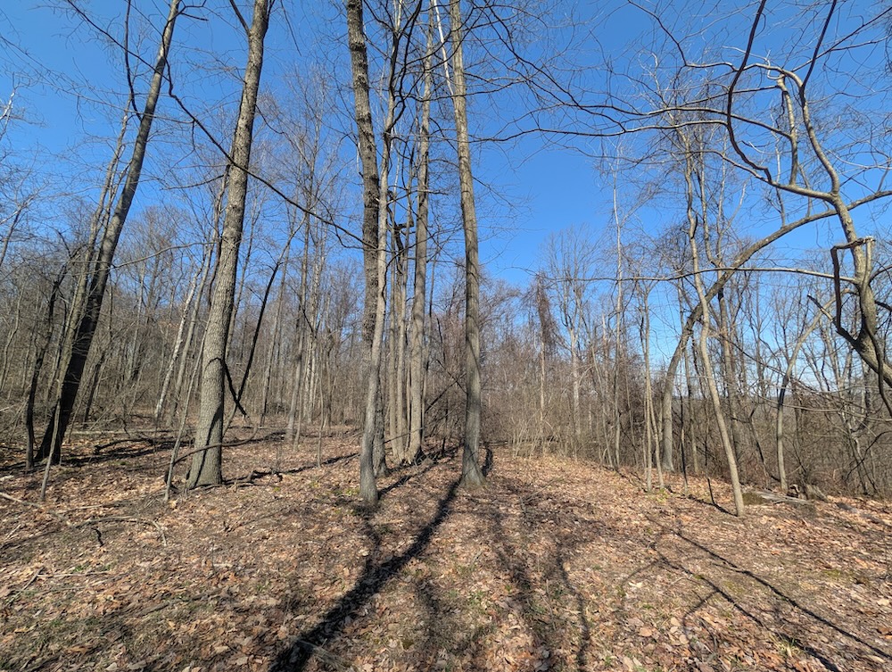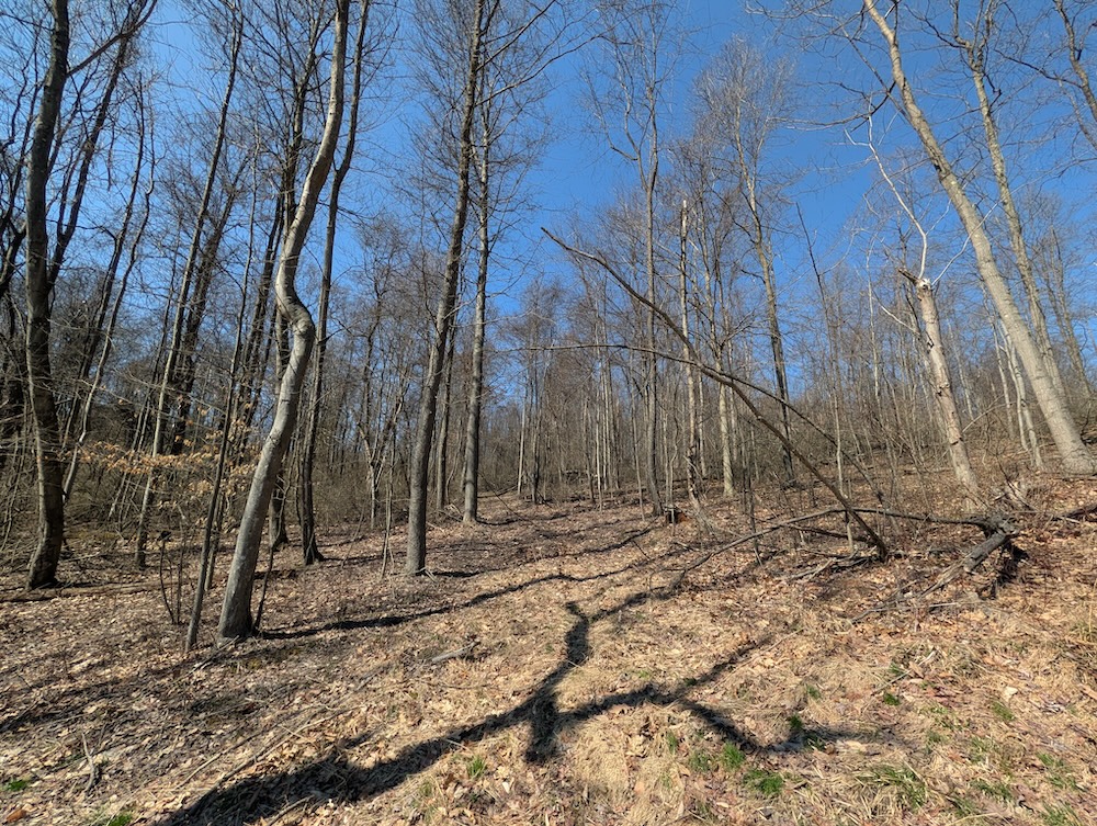 - Fully wooded with mixed hardwoods