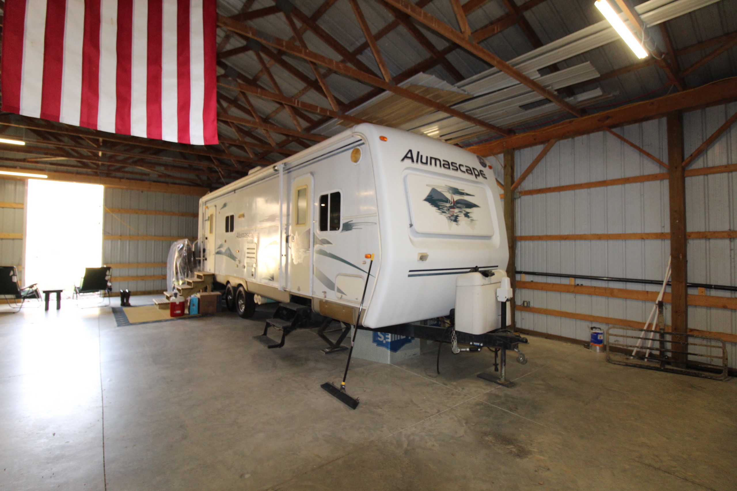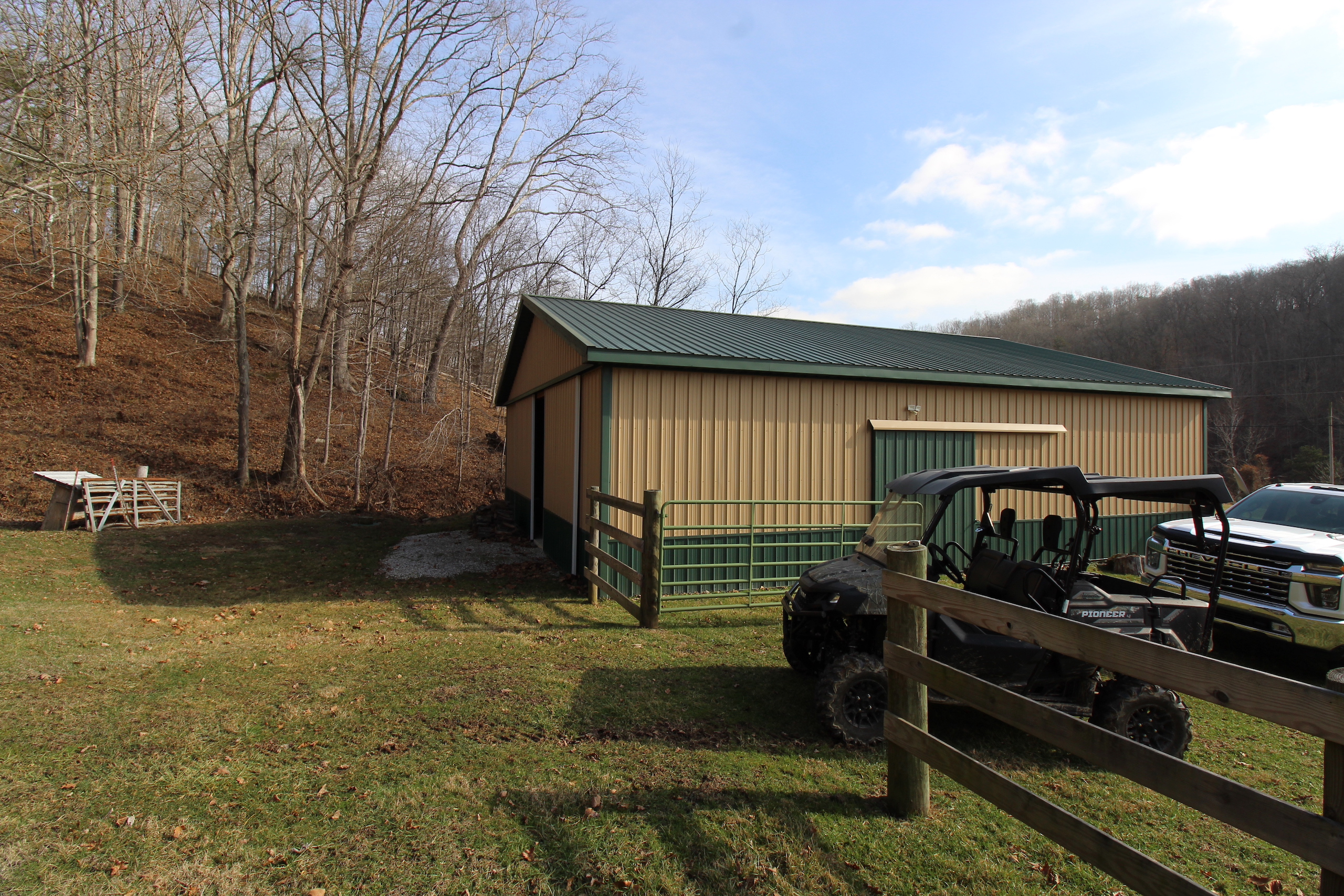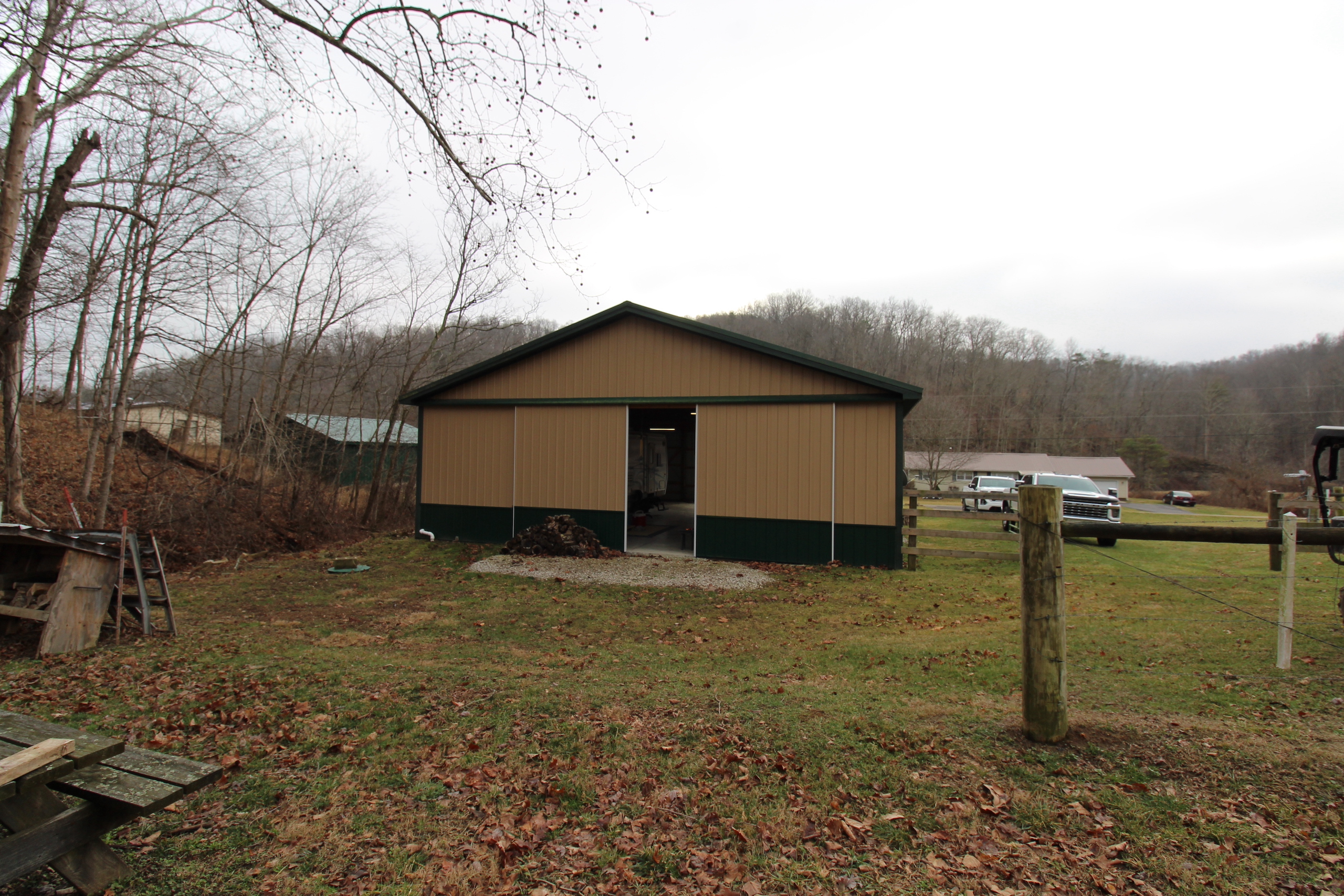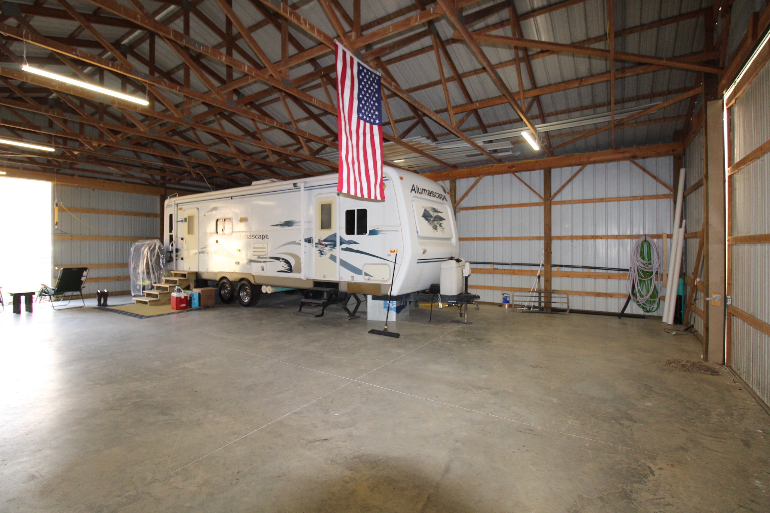 - Metal pole barn has water and electricity!