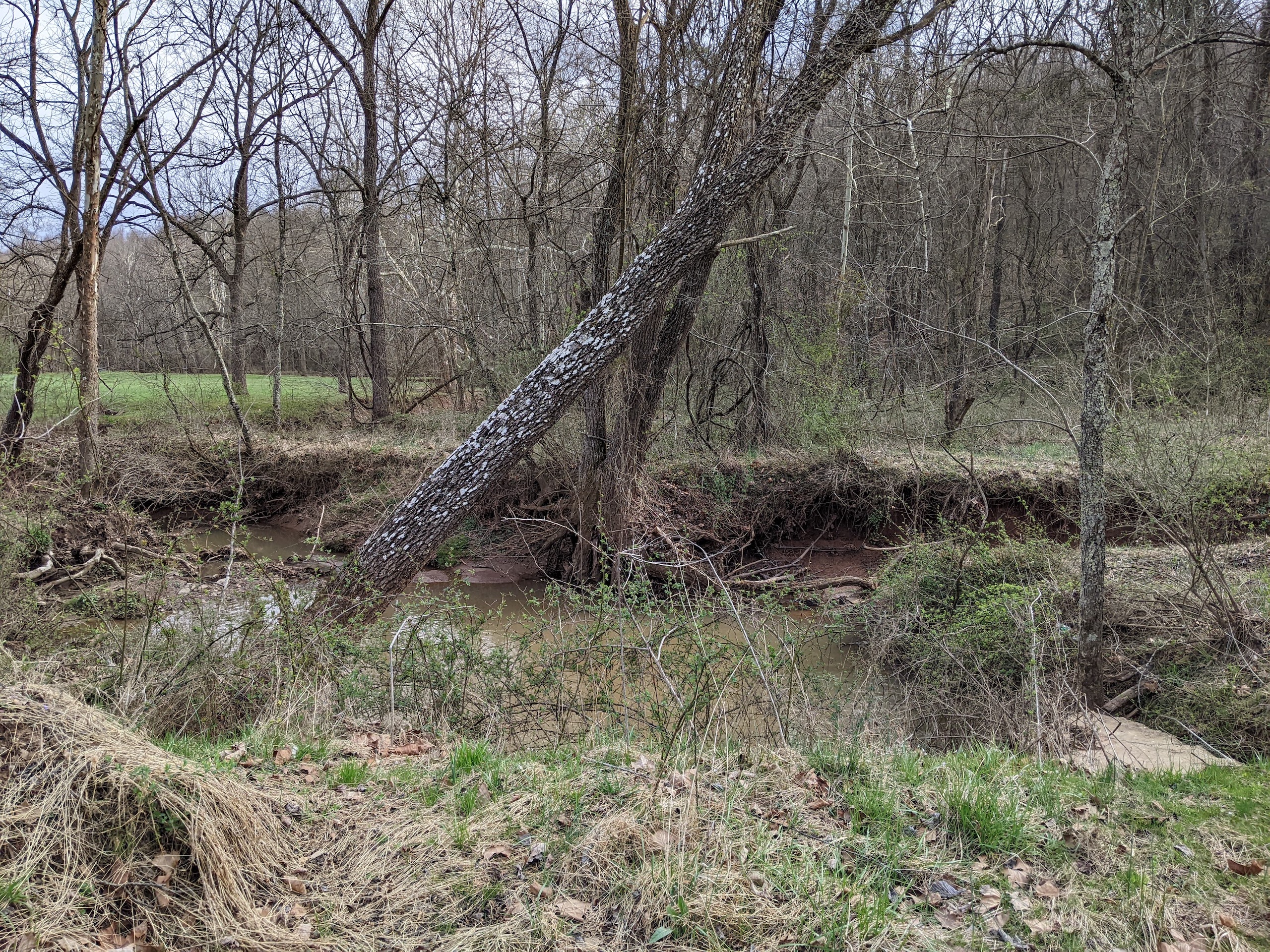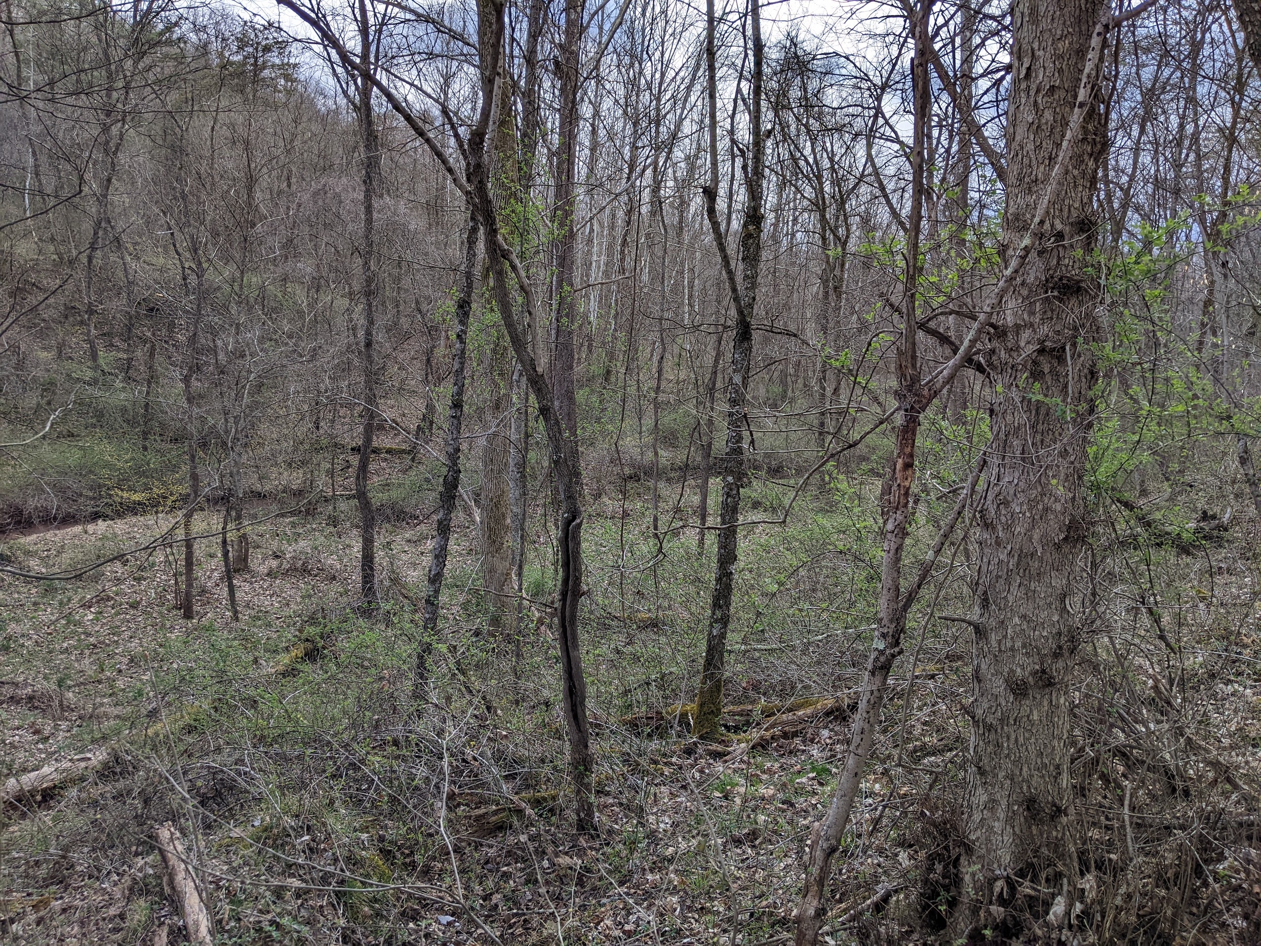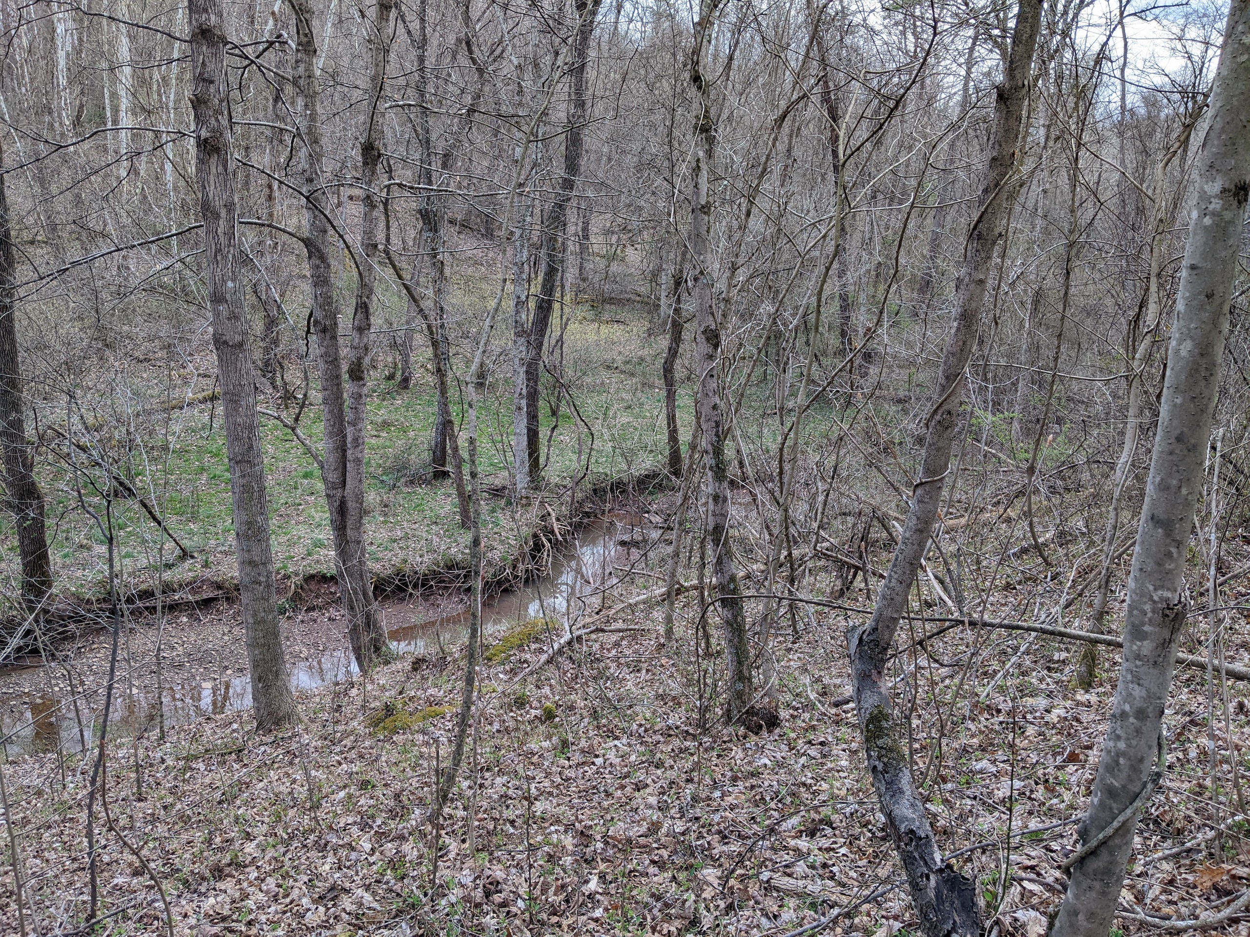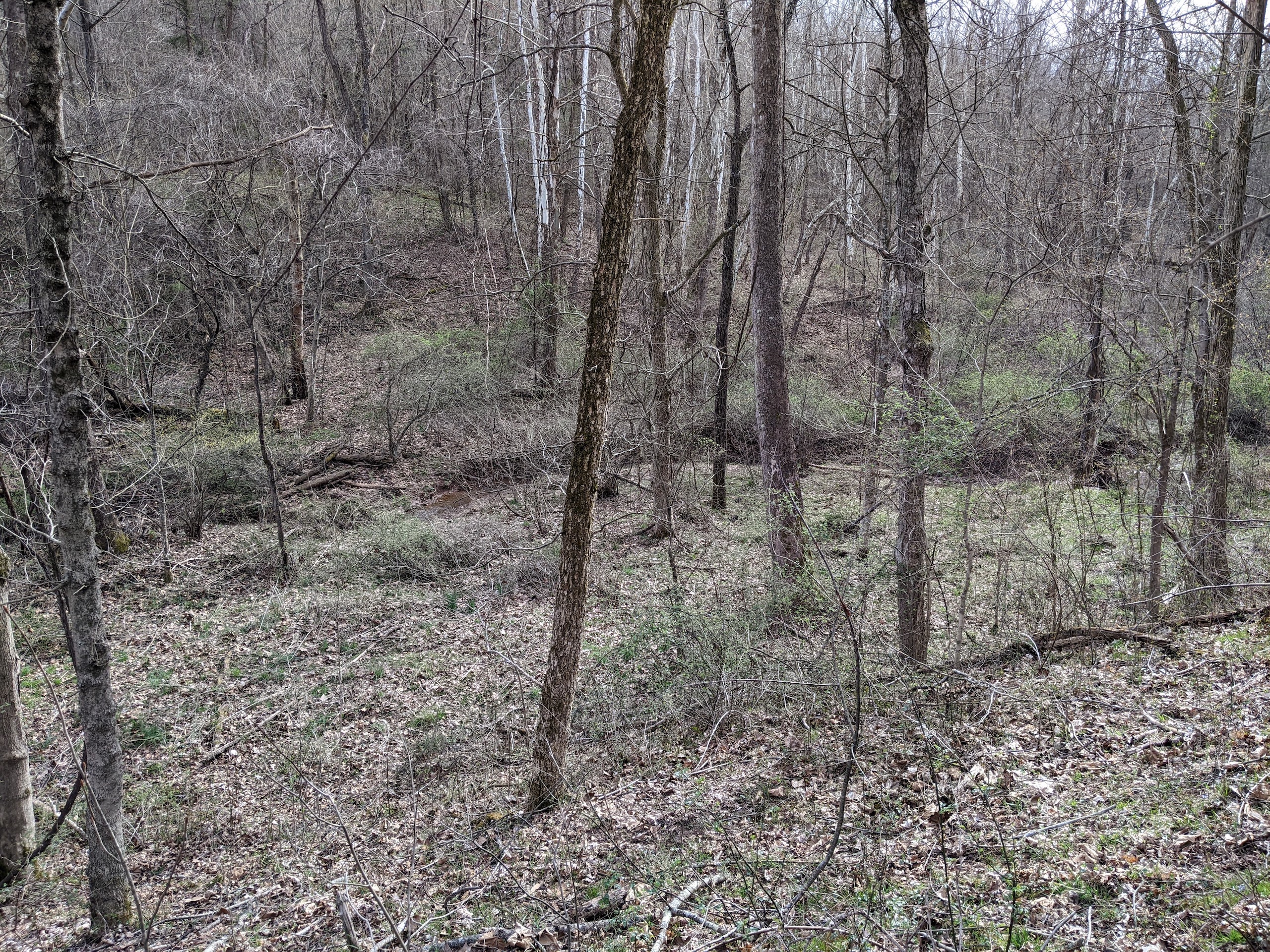 - A creek bottom running west to east