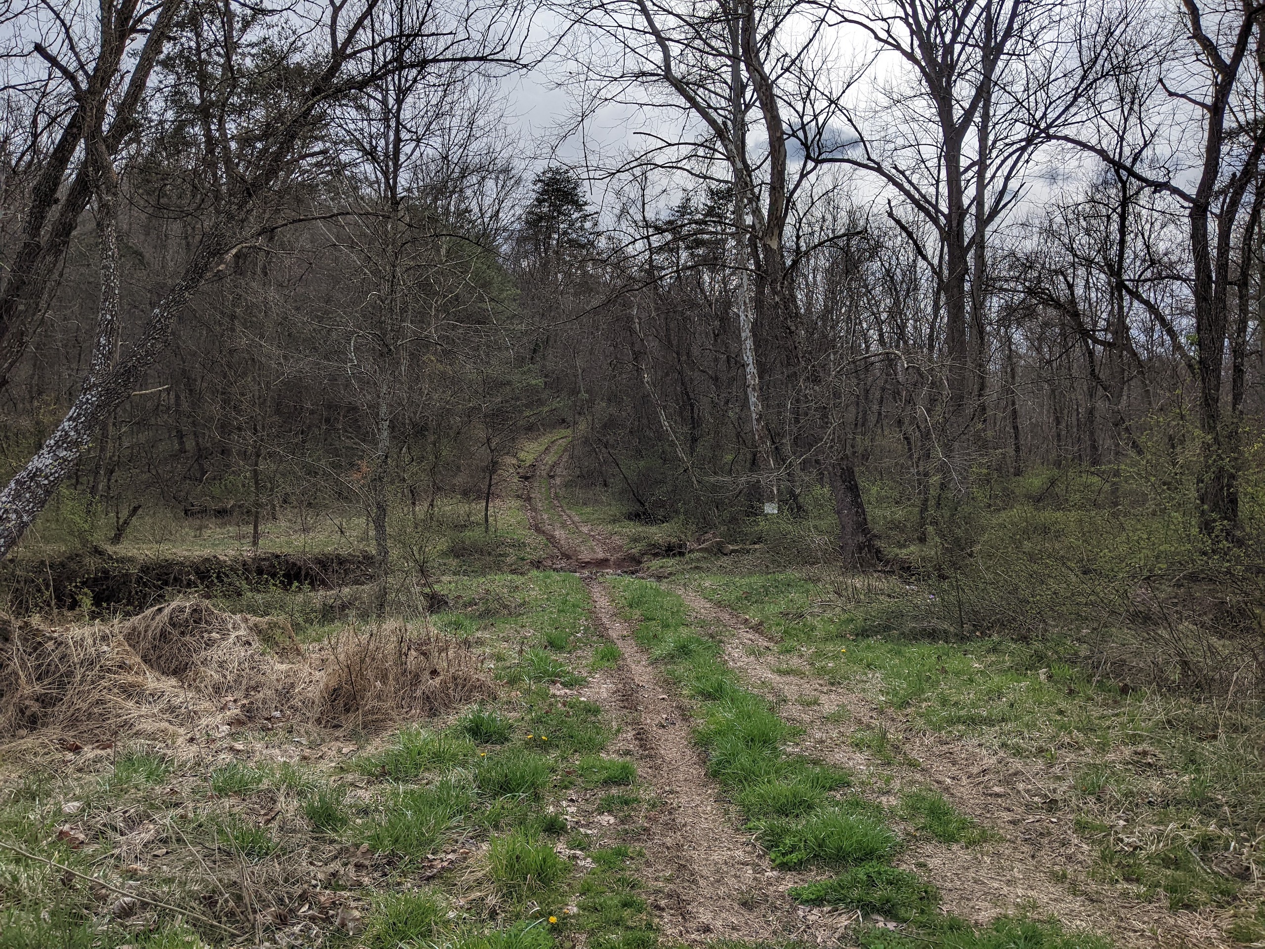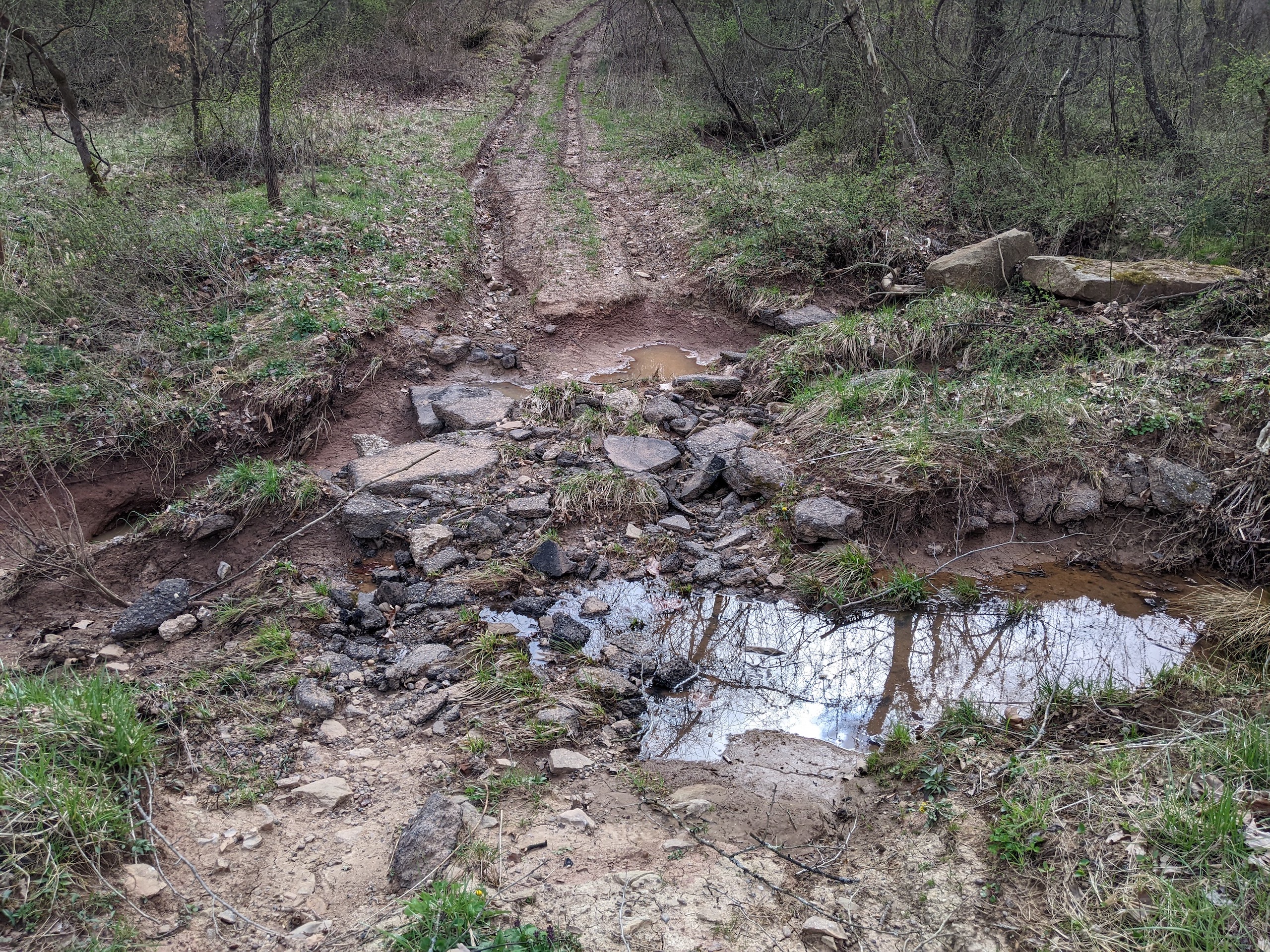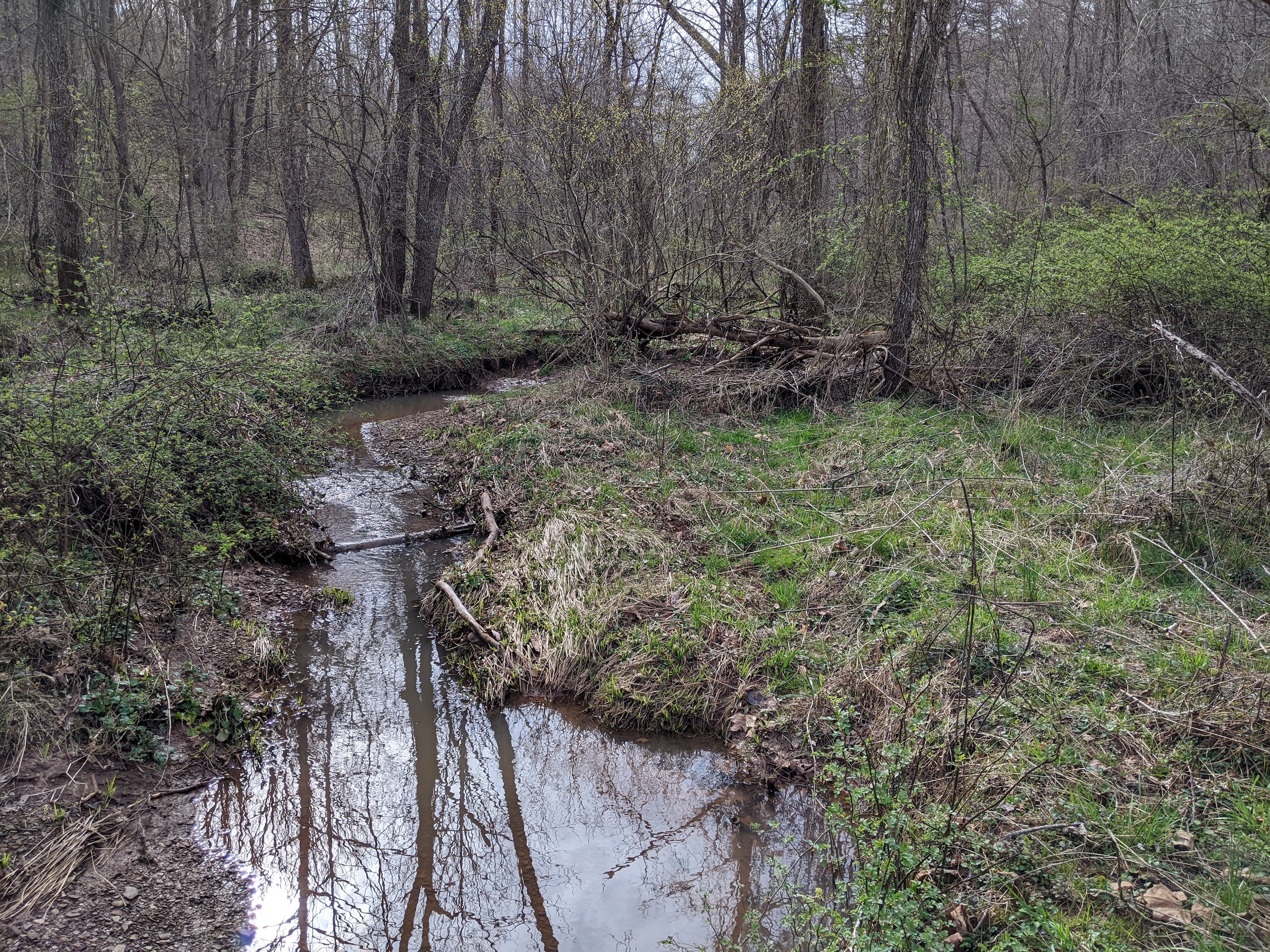 - A creek bottom running west to east