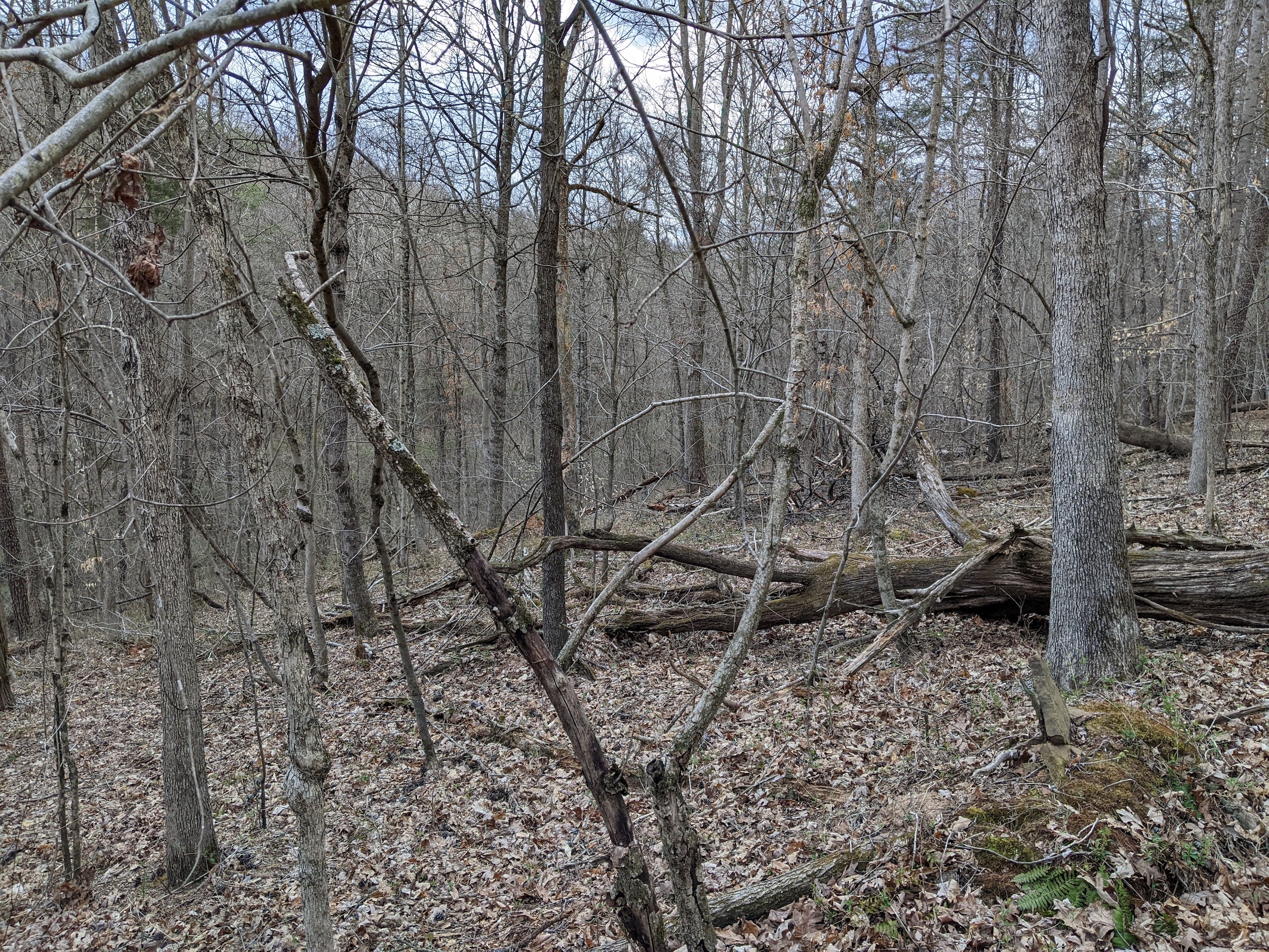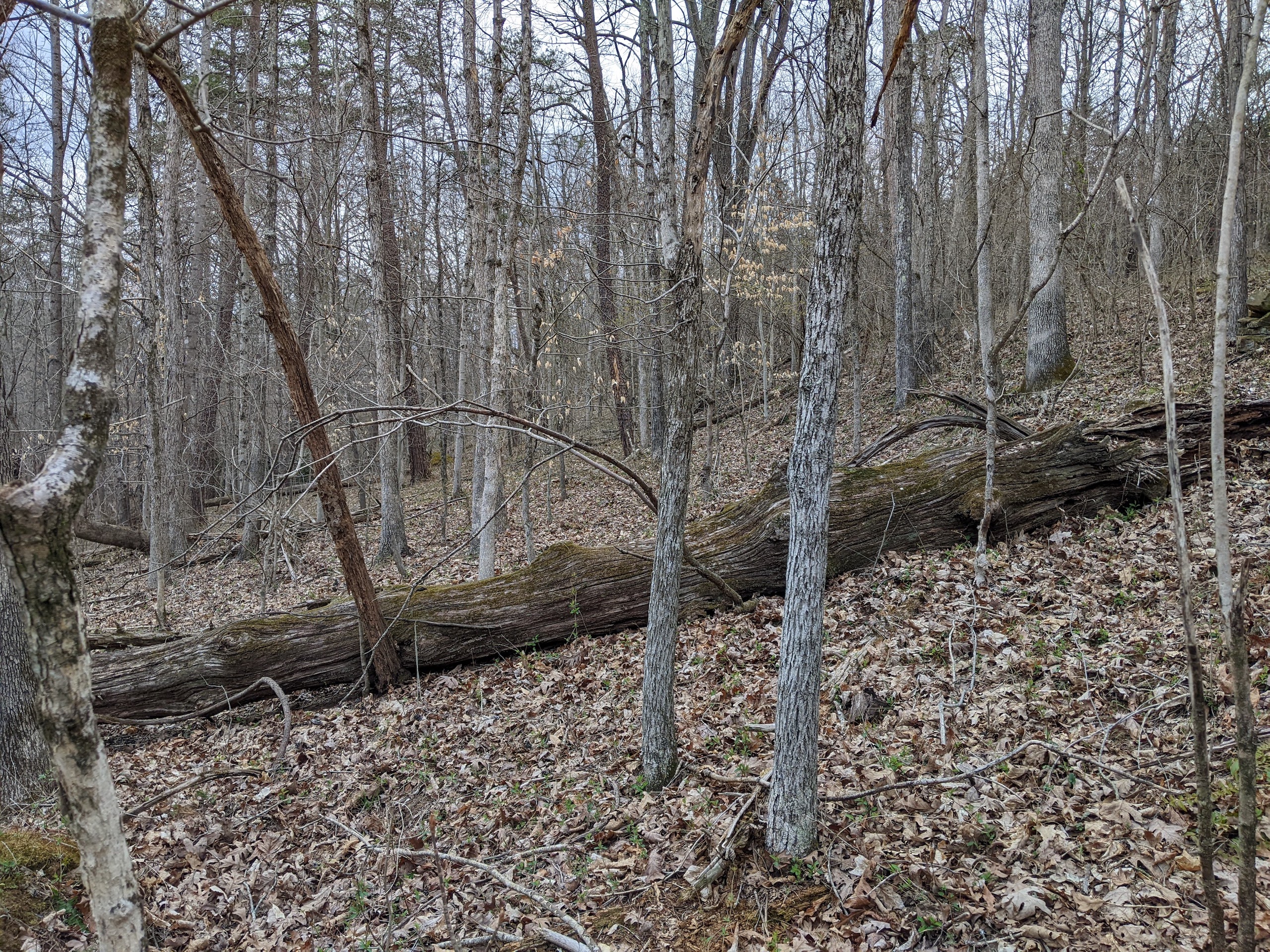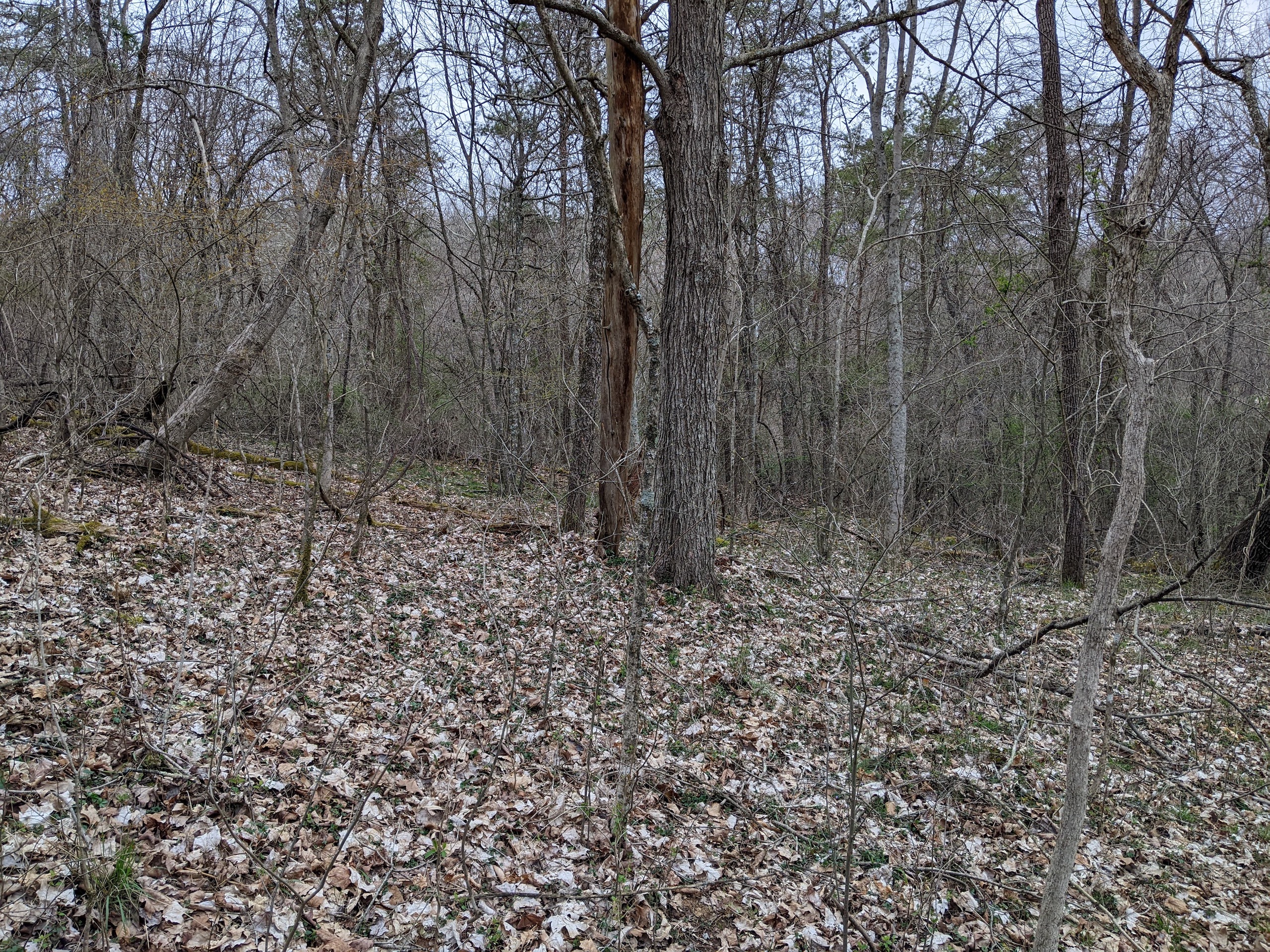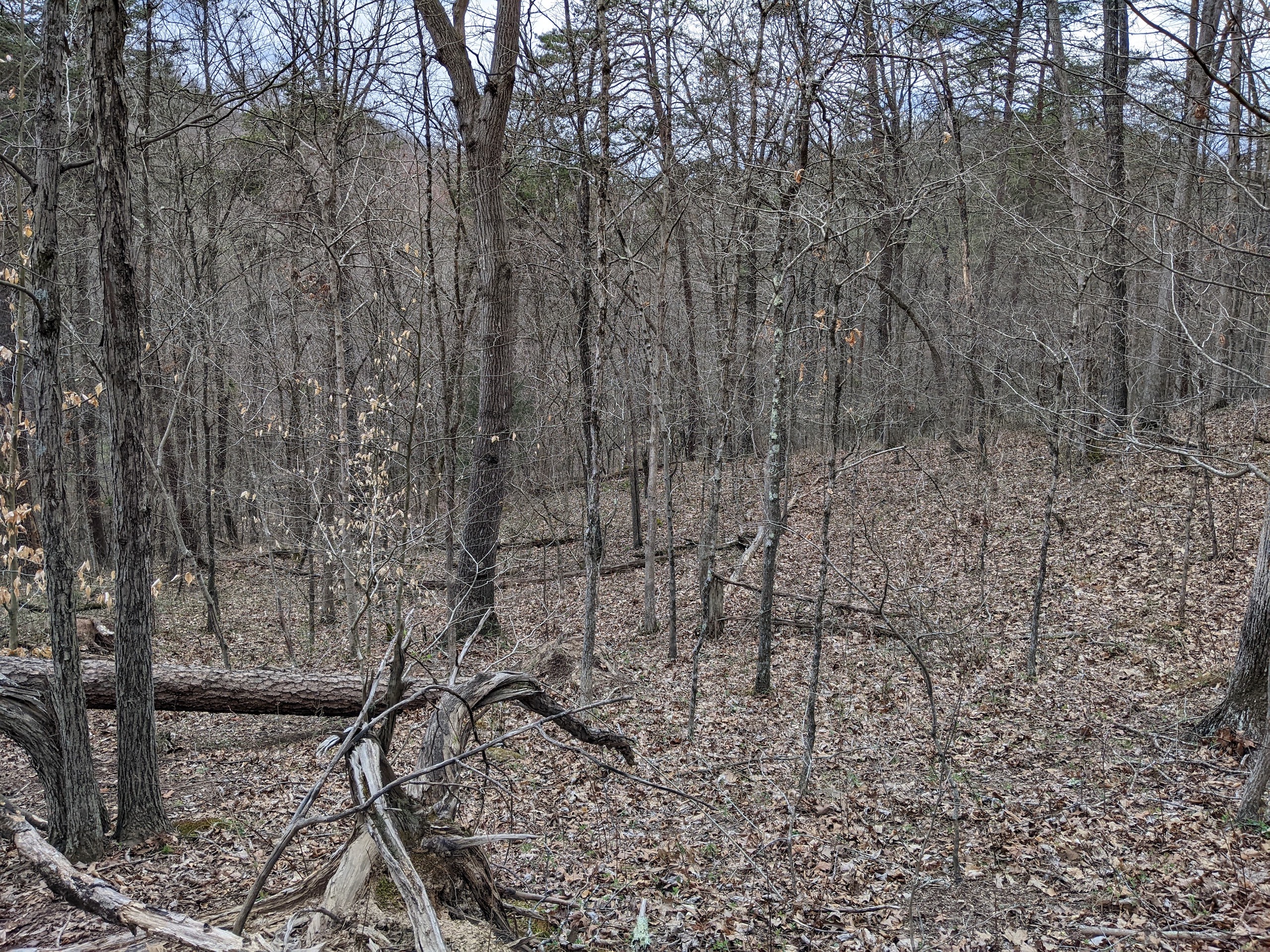 - A creek bottom running west to east