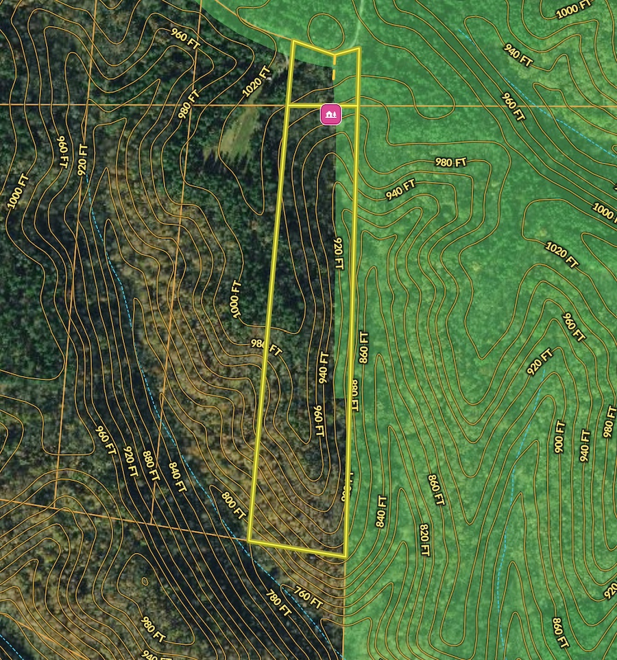 - Two small clearings for food plots and a deer feeder