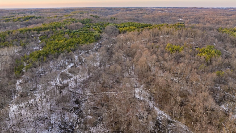 This 138.86-acre property sits in one of Muskingum County’s well-known trophy whitetail areas. The region has a long reputation for producing mature bucks thanks to strong genetics, large contiguous timber, and limited surrounding hunting pressure. The property borders more than 10,000 acres of protected, no-hunting ground at The Wilds. This neighboring acreage consistently influences deer movement and age structure, allowing mature deer to travel naturally through the area throughout the season. Habitat improvements were professionally designed by Whitetail Habitat Designs, a company focused on building properties that function for real-world hunting. The layout emphasizes security cover, controlled access, and predictable travel routes without overcomplicating the farm. Several established food plots are in place to support seasonal movement and holding power. The farm includes a solid mix of hardwoods and planted pine, creating both structure and cover across the property. Heavy bedding areas were intentionally developed to encourage deer to stay on the farm rather than simply passing through. Small creeks and natural water sources provide consistent water throughout the year. Two shooting houses are positioned for comfortable and effective hunting. A well-developed interior and perimeter trail system allows for quiet access, easy stand approach, and efficient property management. This is the kind of property that has been thoughtfully set up, hunted the right way, and located in an area where mature bucks are a realistic expectation year after year.