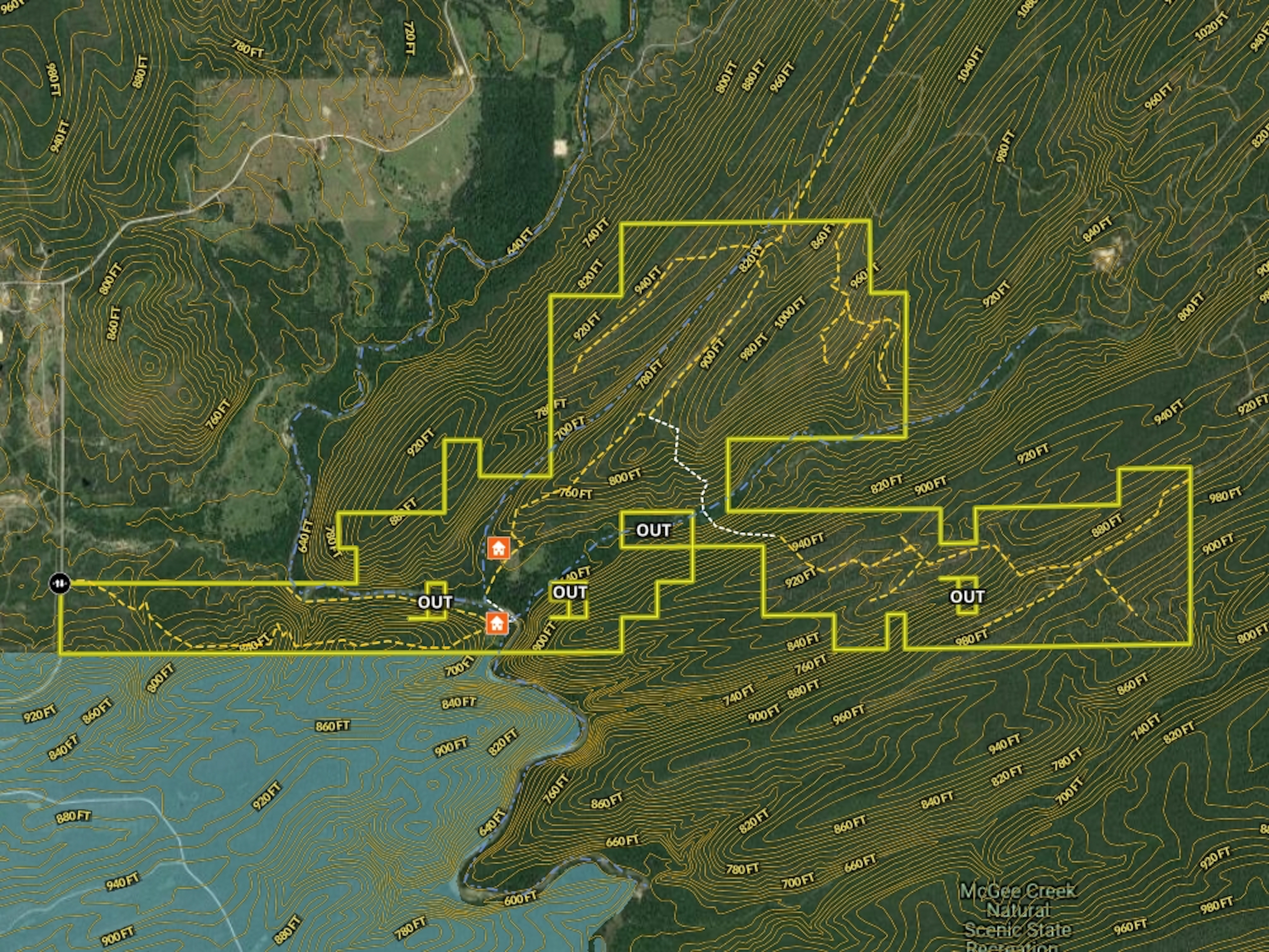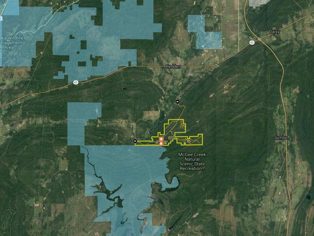 - Borders approximately 7k acres of Scenic Recreational Area and 14k of McGee Creek WMA