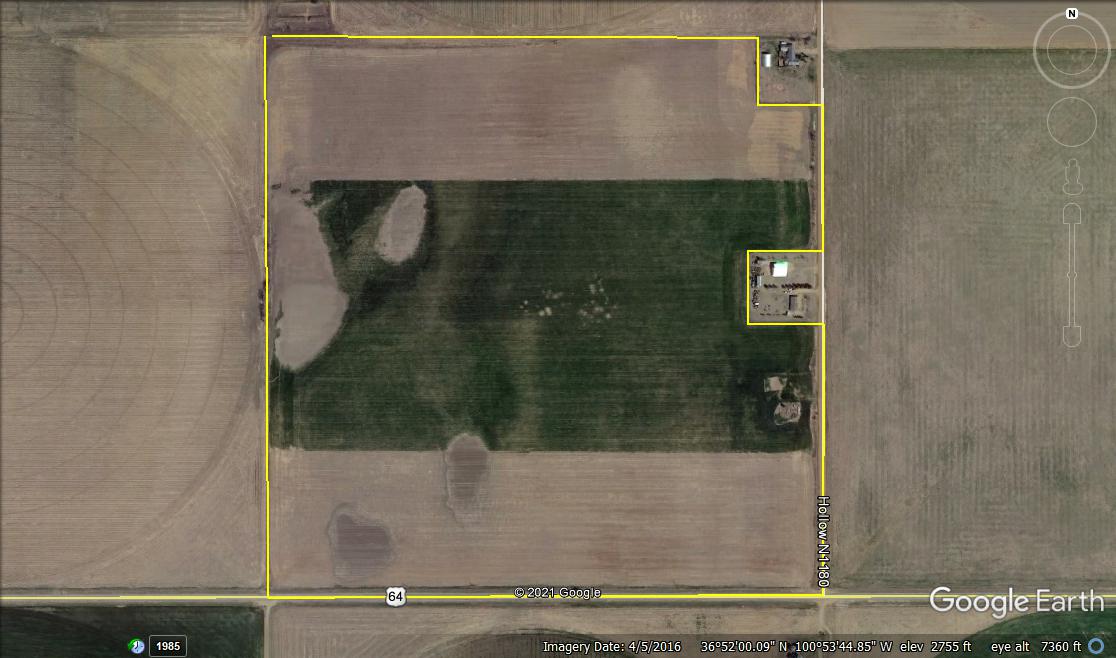 Attention Farmers! Here’s a great farm tract for sale with Irrigation potential. This area has produced some big irrigation wells. And, this property is bordered on three sides by irrigated pivots. There are 20 pivots within a 2 ½ mile radius of this place. It’s currently planted to wheat. The tract could also serve as a great long-term investment by continuing the crop’s cost-share agreement with the current farmer. Feel free to contact Steve with any questions or to look at the property.