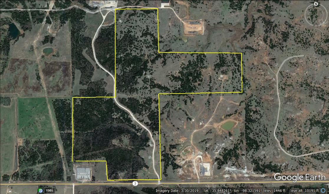 A great recreational tract between Watonga and Kingfisher on Hwy. 3. Live Water! It has a beautiful Live creek flowing through the property. The creek is spring-fed and supports numerous hardwoods such as Elms, Oaks, Catalpa, Cottonwoods, and Willows. There are creek-bottom meadows, lush with heavy grass and wildflowers. The property offers great whitetail hunting with heavy tree cover. It has a scenic elevation sitting above the vast bottom-land in eastern Blaine County. The tract lies in the heart of a very exclusive transitional line consisting of cedar-canyons, which lies between the flat top-land and flat bottomland. All in all, it’s a very unique terrain with endless potential. The meandering, spring-fed draw, with its constant water flow, could easily support a large pond. It’s an excellent hunting tract with deer and turkey. Lying just 3 miles east of Watonga, this property would make a beautiful Executive home-site. And, only 45 minutes of the Oklahoma City Metro. Don’t hesitate to call Steve with any questions, or to look at this beautiful property.