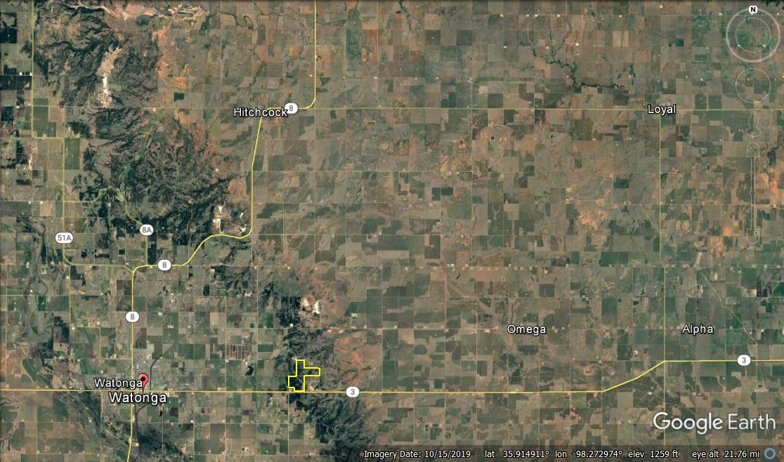 - 3 miles +\- east of Watonga OK