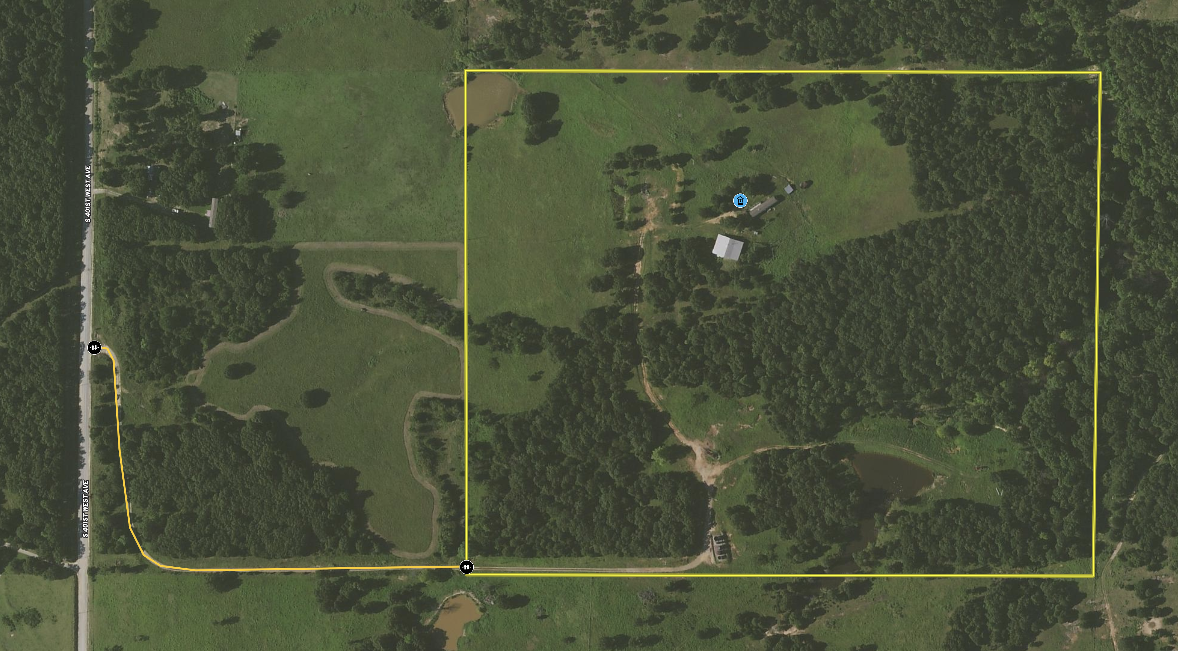 - Multiple ponds and wet weather creek on property