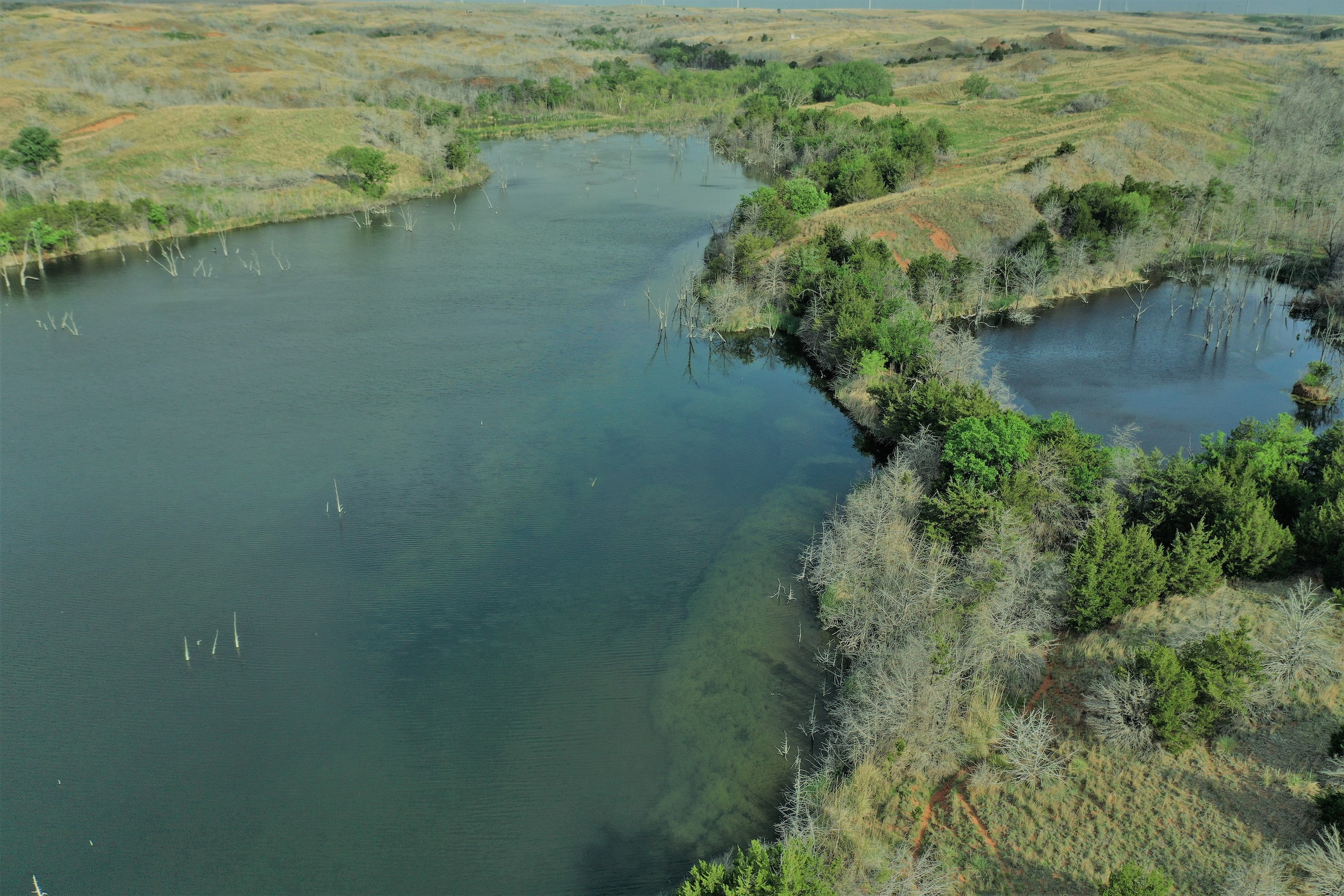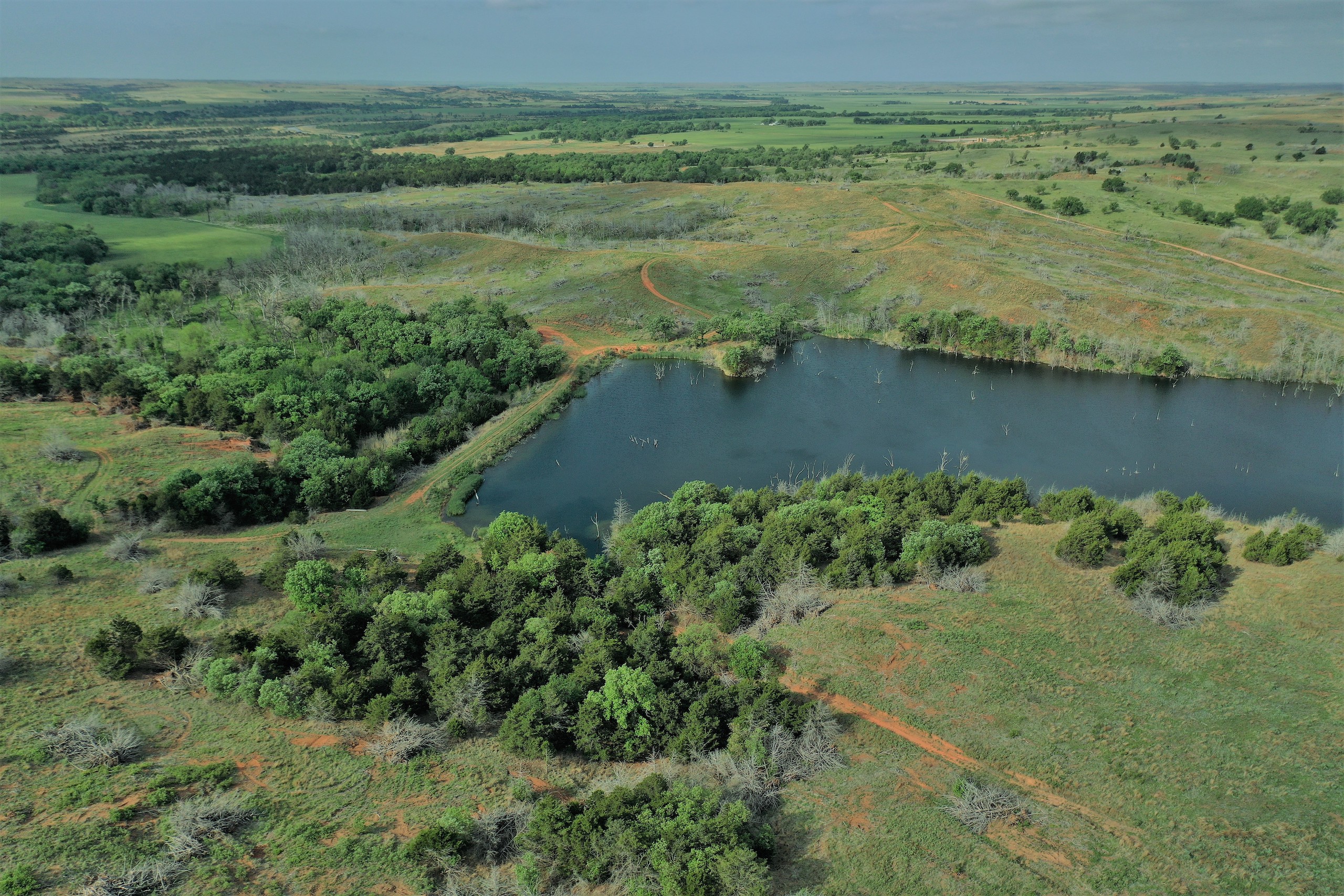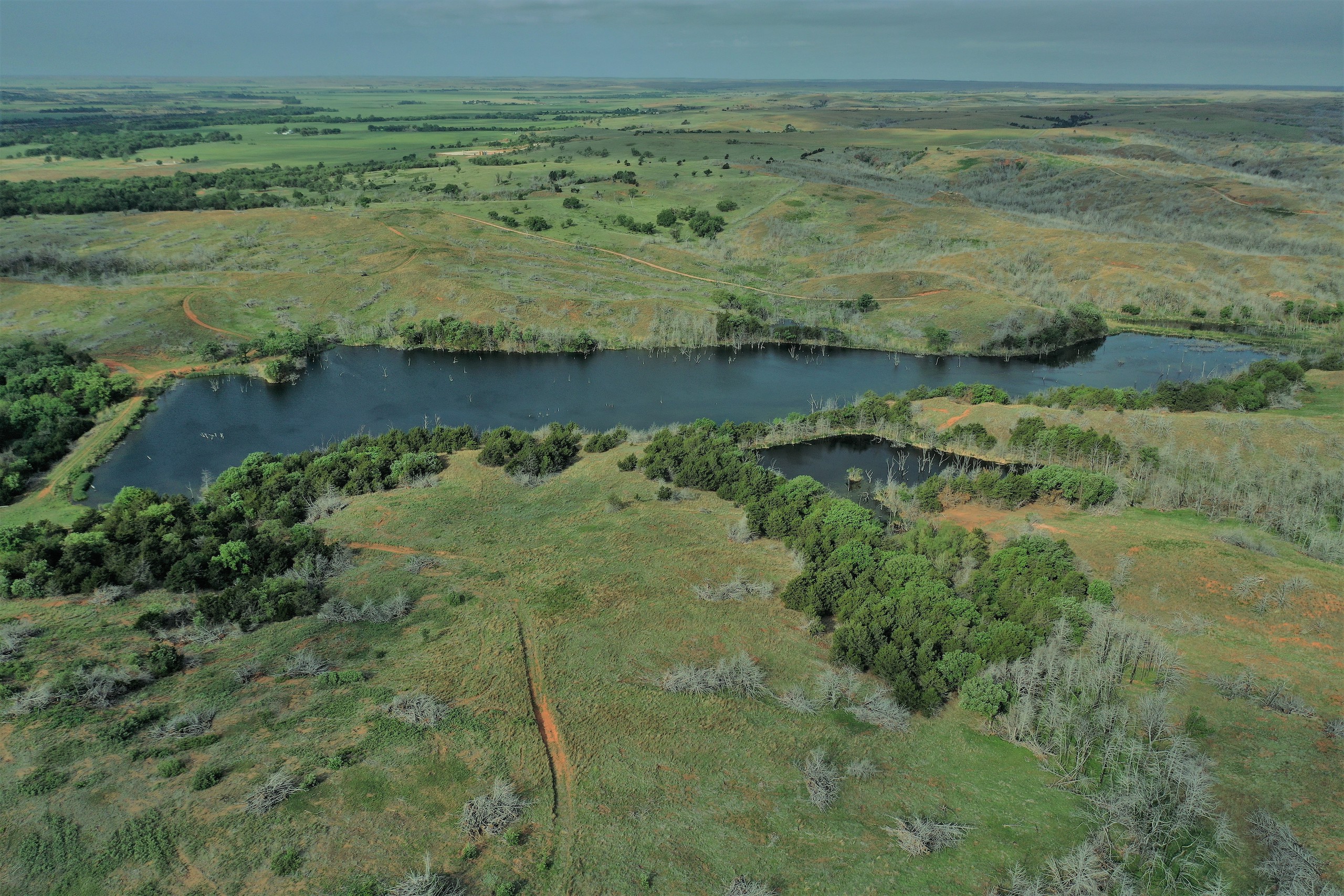 What a Beautiful Ranch! A Sportsman’s Paradise, offering everything that Northwest Oklahoma has to offer - trophy whitetail, Rio Grande turkey, wild boar, quail, and waterfowl. The property should even have elk occasionally as nearby ranches have produced some giant bulls over the years. The ranch lies on the South Canadian River and extends north into the Red Cedar Canyons. The northern end of the ranch is home to the highlight of the property - a beautiful spring-fed lake approximately 23 acres in size. Very few lakes of this size exist in the northwest quadrant of the state. There are also 2 nice-sized ponds on the east side. In the central part of the property is a 56-acre crop field currently planted to wheat. The field is bordered by a live creek on the north, and it’s framed with beautiful hardwoods such as oaks, cottonwoods, elms, and China berries. These hardwoods serve as roost trees for a large winter flock of Rio Grande turkeys. It’s easy to imagine a group of gobblers flying down on the wheat and showing off on a spring morning. The deer hunting is equally amazing. The ranch has been well-managed and has produced some great bucks over the years. Make sure to check out the deer and turkey pictures. The ranch has excellent access, bordering Highway 183 on the east and Lenora Rd. on the south. It has an extremely nice, and well-made lodge/barndominium surrounded by beautiful hardwoods. The lodge has everything needed for a home and would make an amazing hunting camp. The front portion has a kitchen w/appliances, living room, bedroom, and bathroom. The back portion offers a ton of storage. A portion of the ranch burned in the Spring of 2018. It improved the northern ranchland pasture significantly, resulting in thick native grass. Some areas in the Cedar canyons burned leaving chest-high cover in those bottoms and creating excellent deer bedding. The hardwood trees in the burned areas are already tall and coming back strong. The southern portion of the ranch has South Canadian River frontage. It’s extremely thick and wooly with excellent deer cover, such as Pampas and Switch Grass meadows, Plum-thickets, Tamarack, Cedars, and Cottonwood. This portion of the ranch is very secluded and untapped, all the way to the banks of the South Canadian River - a river well-known for producing monster whitetails. The river bottom has a very unique saturated water table that lies 5’-6’ below the surface. Some of our more recent buyers have opened up shallow warm-water sloughs creating fantastic duck hunting locations in the winter. When you combine everything this ranch has to offer - the variety of wildlife, the river, the lake, the lodge, the crop-field, the live creek, spring-fed, the highway frontage, this might be the perfect recreational tract. And only 1 1/2hrs. from OKC! It would be hard to find a more ascetically pleasing recreational property. As you can see from the various harvest photos, this family has enjoyed decades of memories here. Now it’s your turn. Don’t hesitate to contact the listing agent with any questions, or to view this beautiful place!