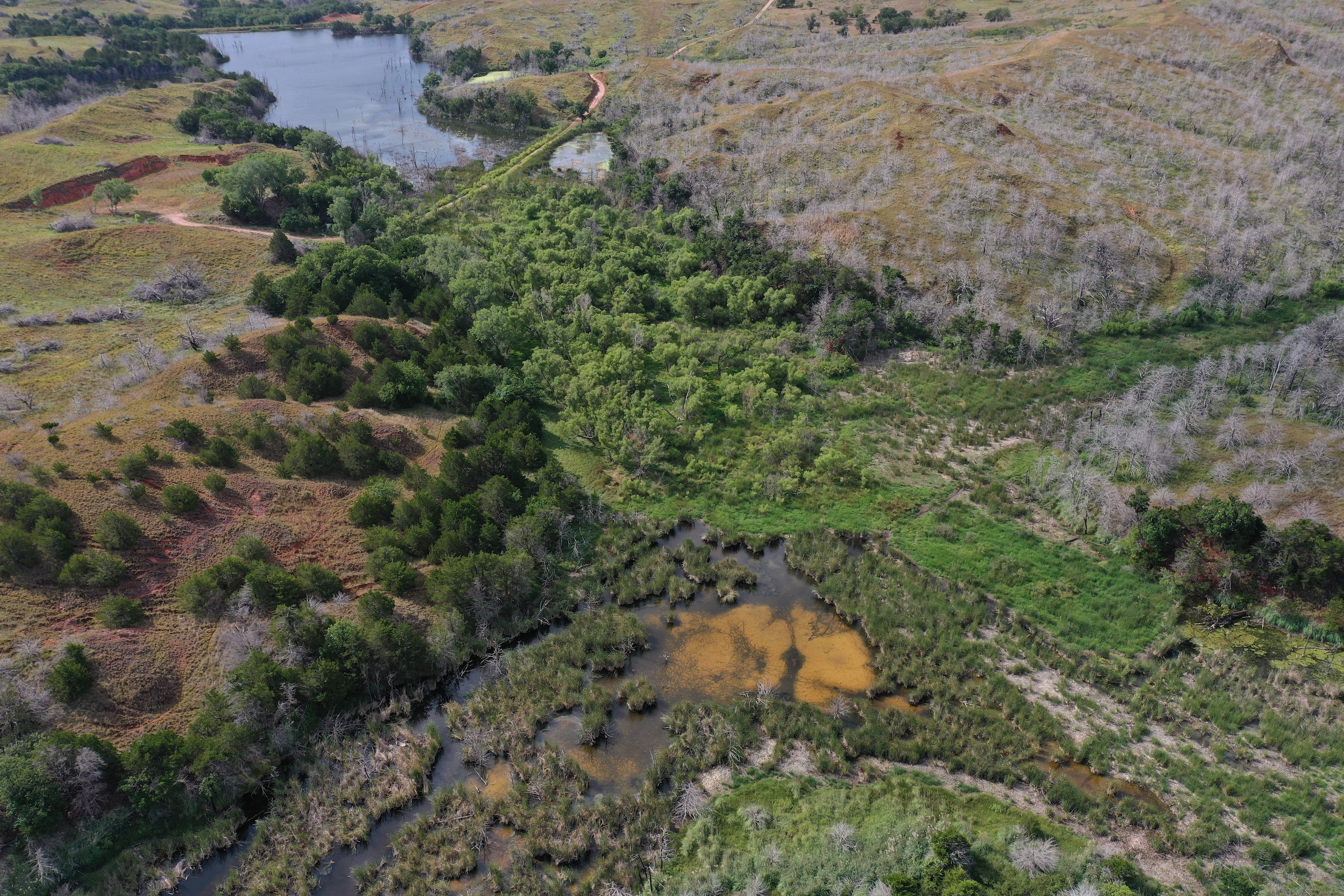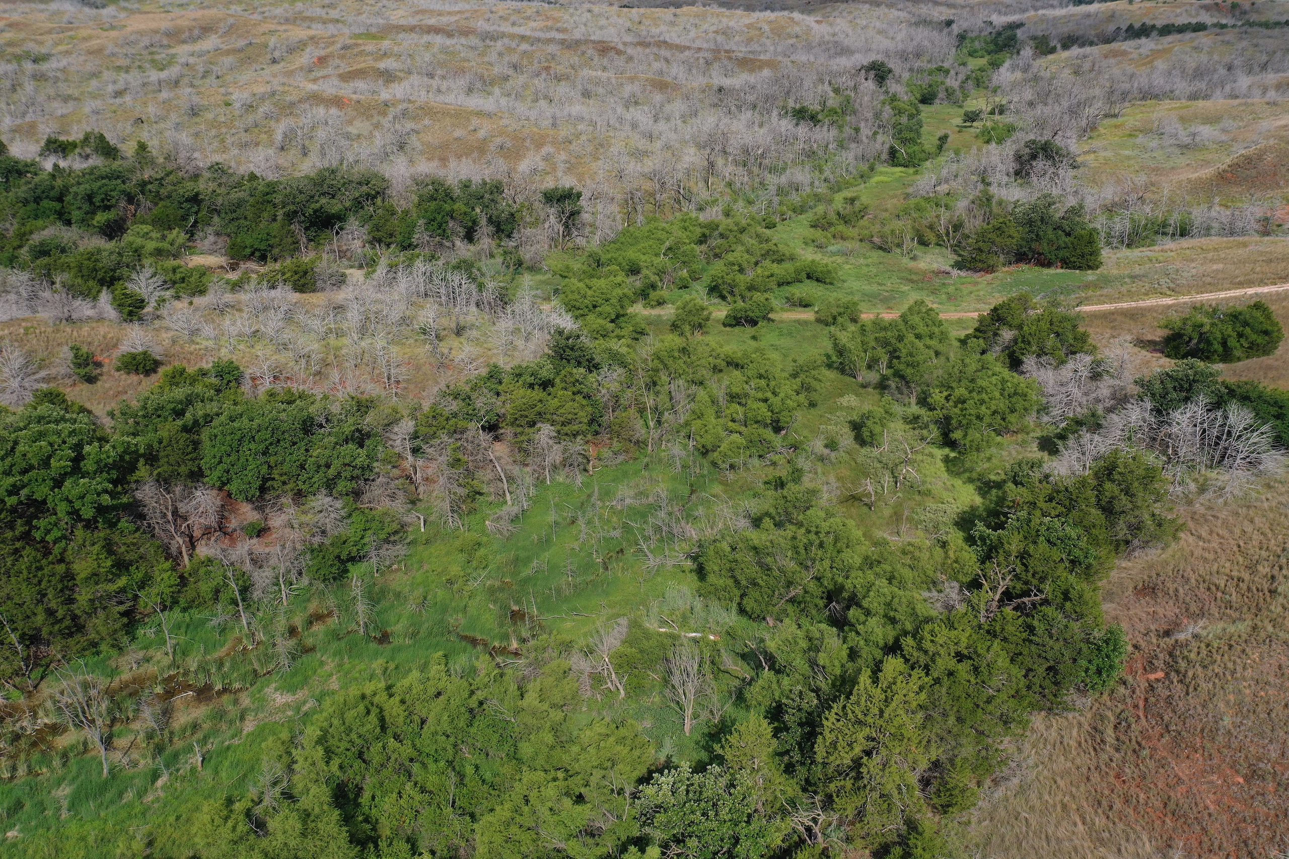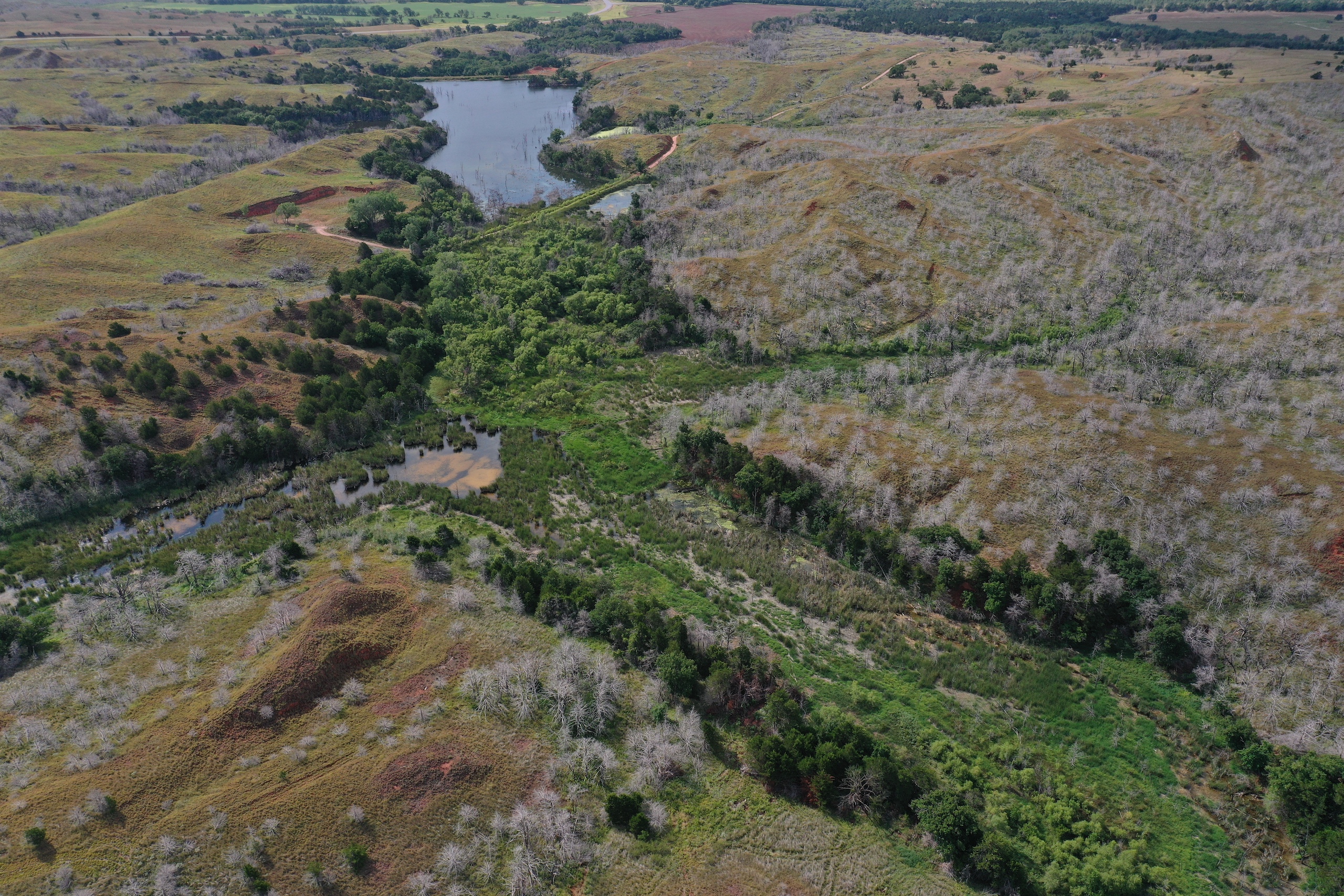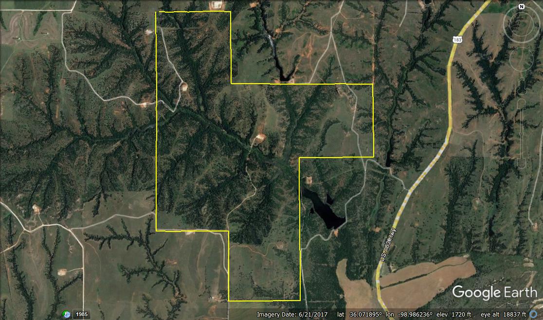 Here’s a great Multi-Purpose Ranch that will cater to Ranchers and Hunters alike. It burned in the Spring of 2018 in the large Dewey County fire. A positive result of that was excellent grass and new fence. The grass is lush and dense now. Hog Creek runs through the heart of this tract supplying live spring water and multiple pools scattered though-out. Trophy Whitetail, Rio Grande Turkey, Wild-boar, Quail, and Waterfowl. The ranch has produced some great bucks over the years. The ranch has excellent access, lying only 1 miles from Hwy.183. Two county roads dead-end into the ranch only ½ mile off the Lenora Blacktop. Highway 183 on the east and Lenora Rd. on the south. Don’t hesitate to contact Steve with any questions, or to view this beautiful place!