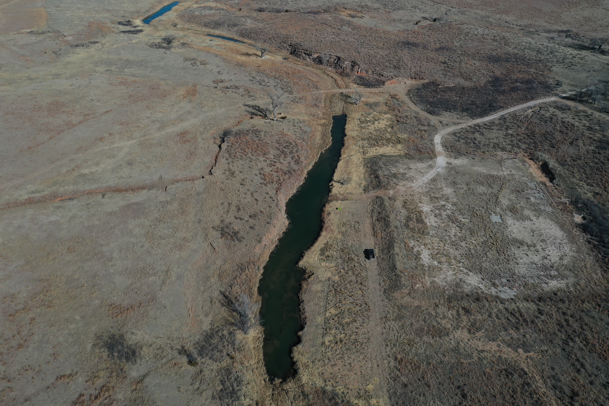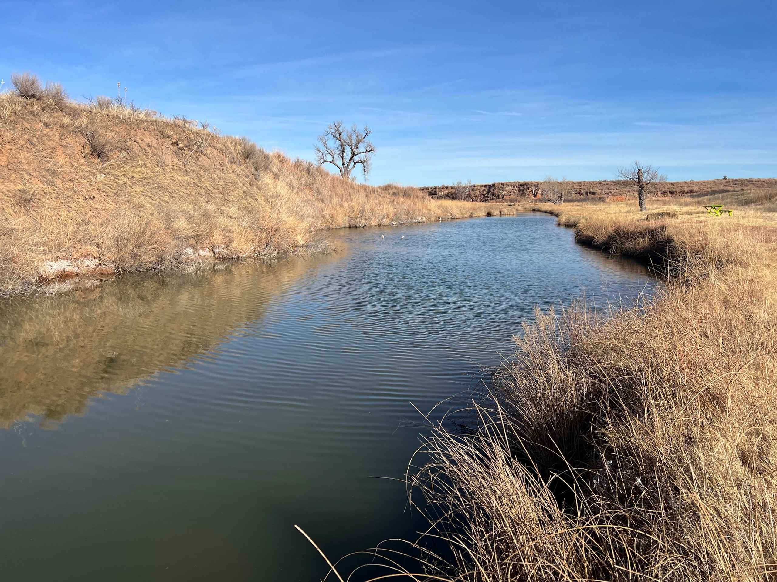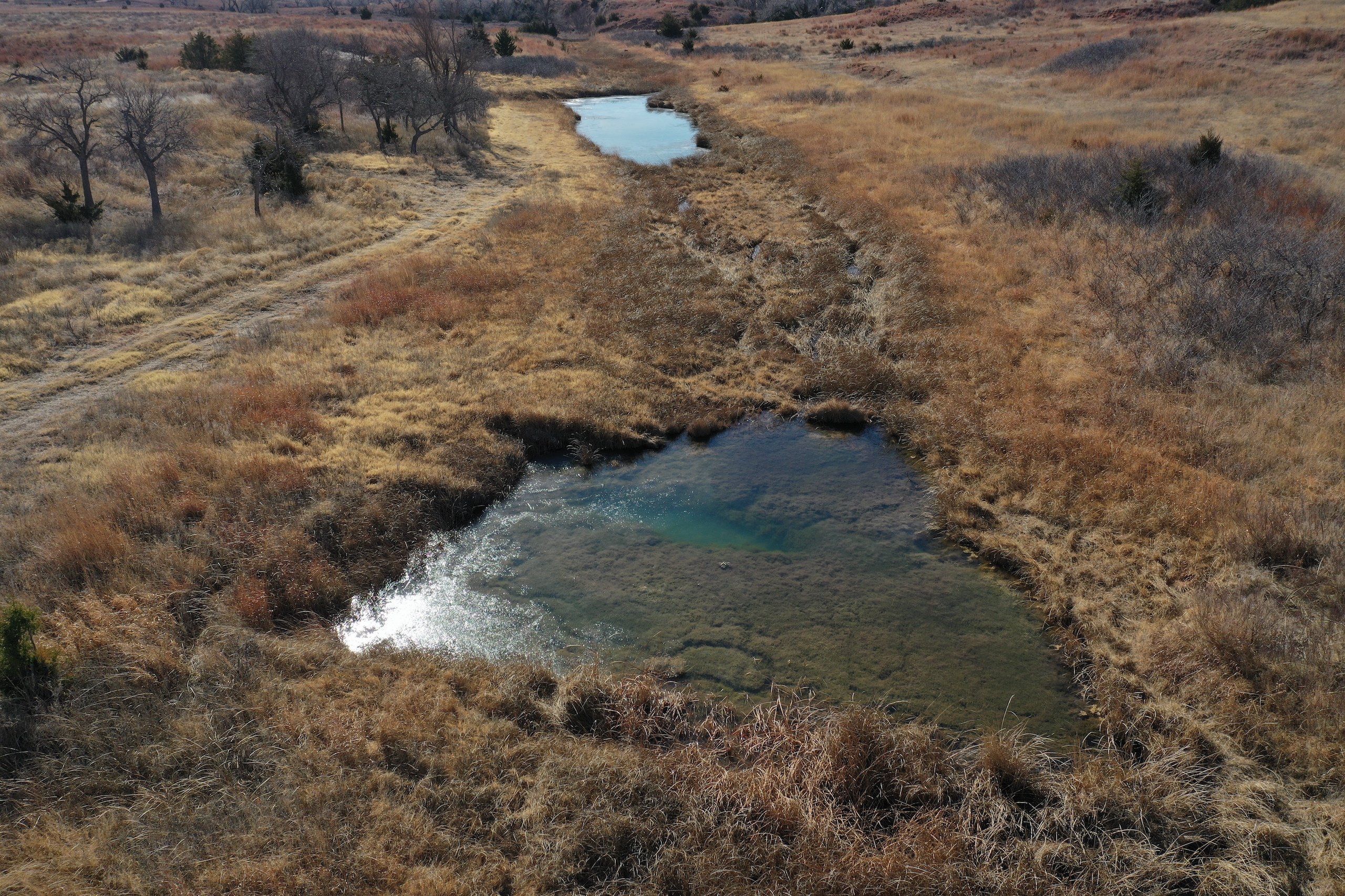 - Large pond with a constant supply of water from Blue Line Creek