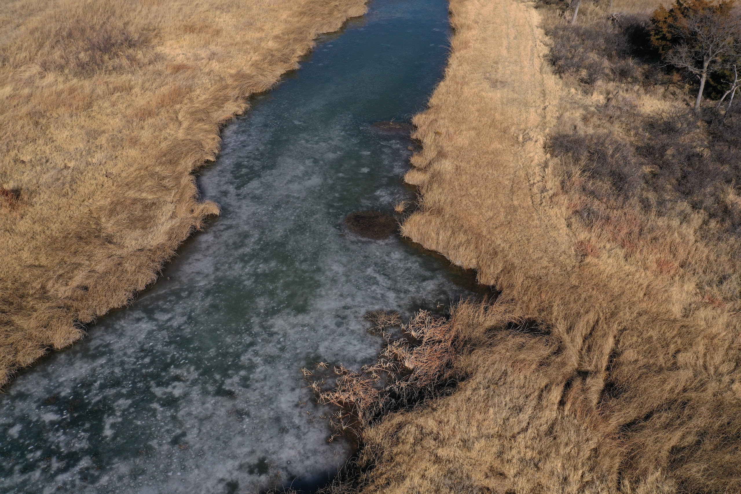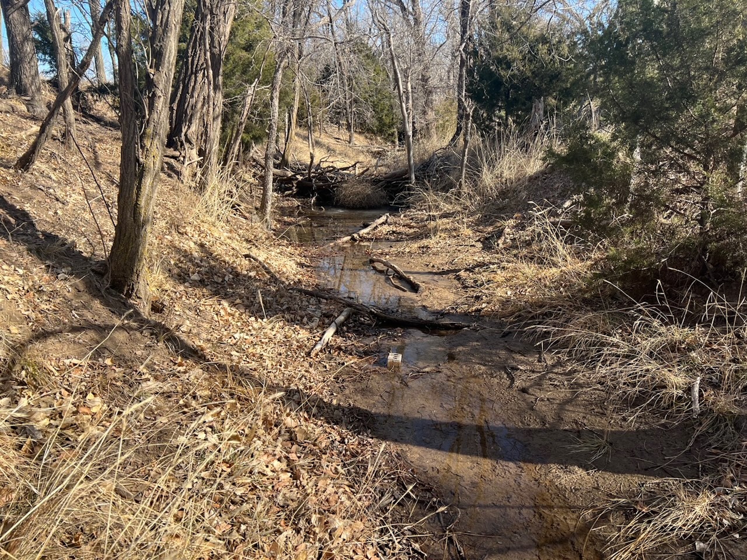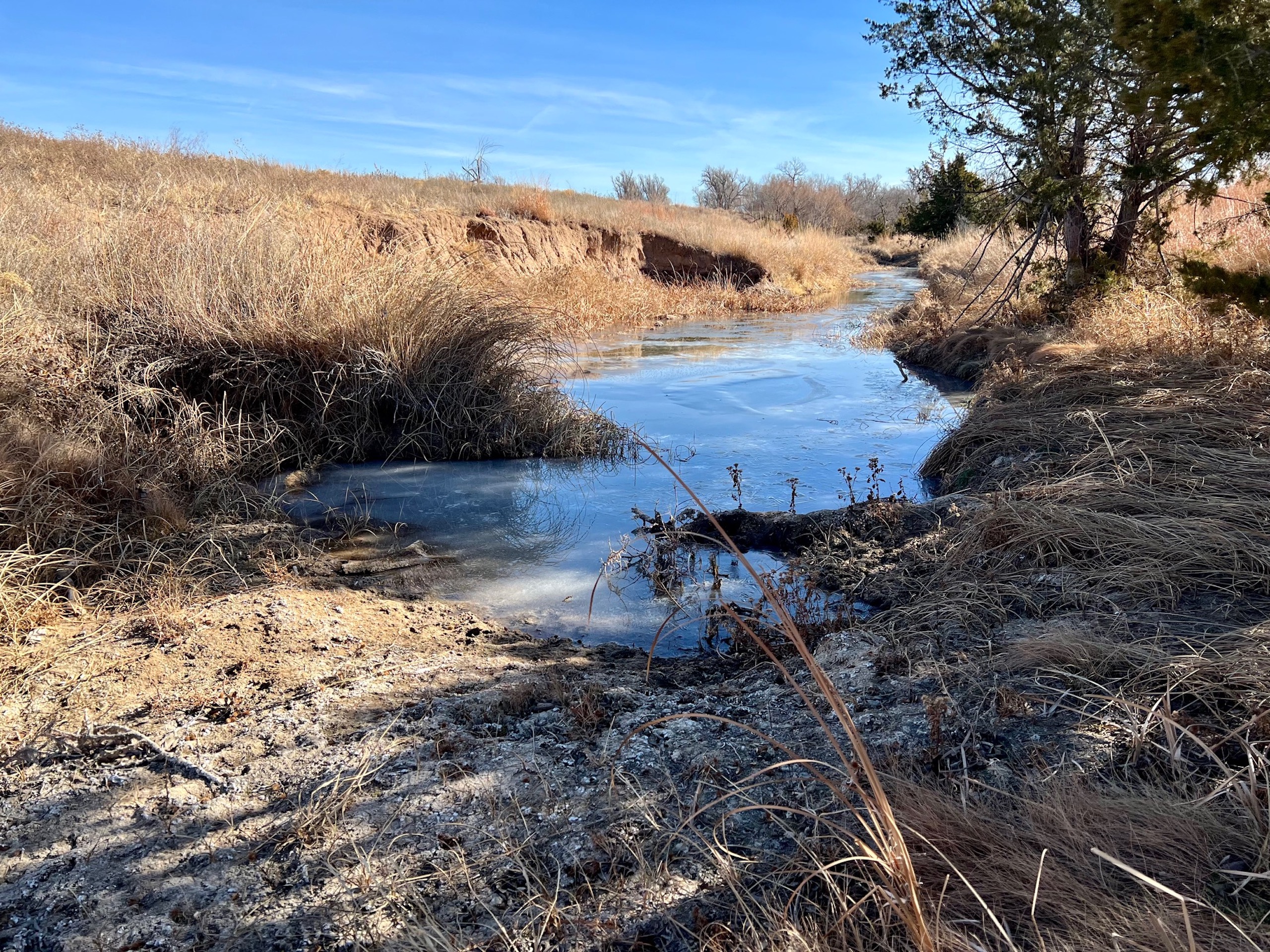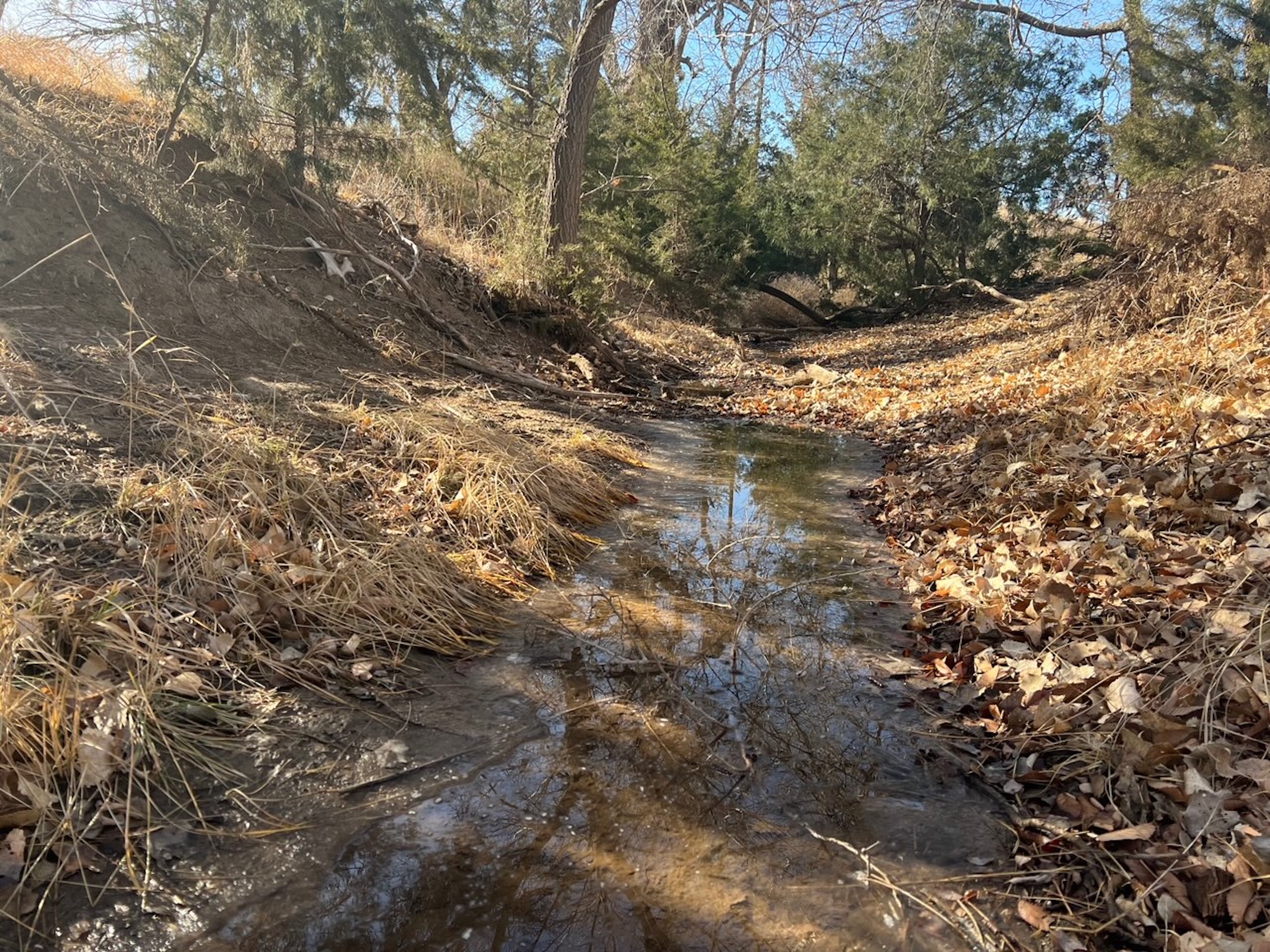 - Large pond with a constant supply of water from Blue Line Creek