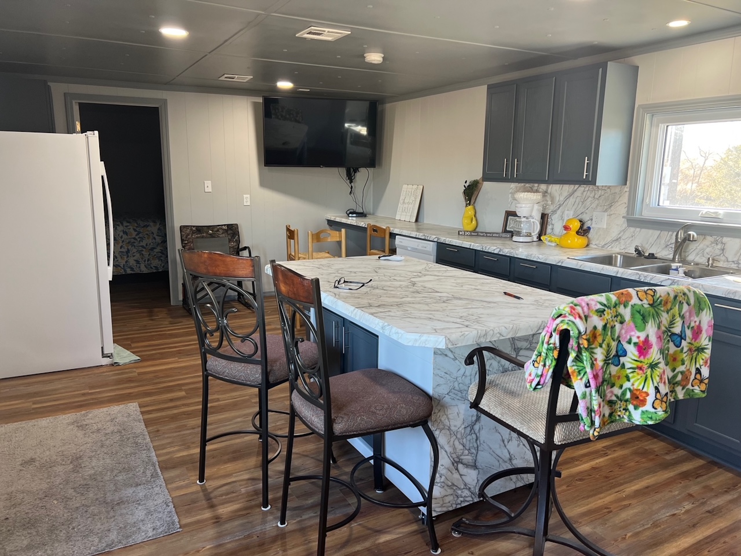 - Kitchen and living area