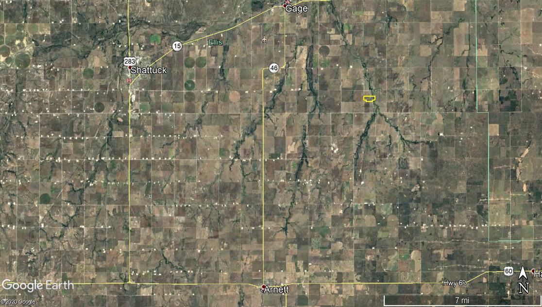 - 10 miles east of Shattuck