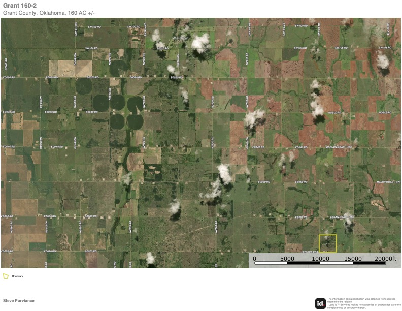 Here’s an excellent hunting tract in Grant County on the Alfalfa County border. This tract lies 10 miles west of the Byron and Amorita; 5.5 miles south of the Kansas border. Sportsmen familiar with that area know how rich the wildlife is in that area. Whether it be Deer, Turkey, Quail, or Pheasant, this location has it all. The Property has a meandering, seasonal Creek-Bottom, loaded with cover. Including dense Plum-thickets, Locust Groves, Chinaberry Groves, thick grass and brush. Not to mention, the old growth Hardwoods scattered throughout the property. There’s electricity at the west entrance, with a electric well and pump, in a perfect location for a hunting-cabin, but far enough away from the primary hunting area. There’s also a solar well on the east side. The property is currently under a cattle lease paying $40/acre; $6,400/year.