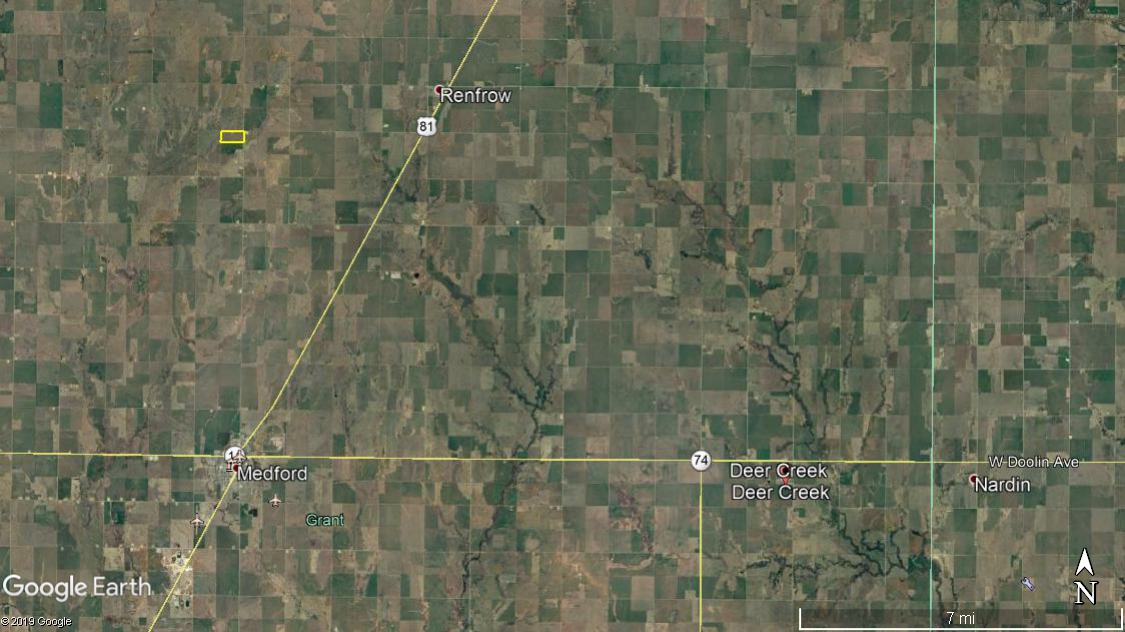 PRICE REDUCED! Attention Farmers; Here’s a great piece of farm ground for sale 6 miles north of Medford. It has approximately 55 acres in cultivation, currently planted to wheat. The balance is grass with a seasonal creek and nice pond. There’s some great deer hunting potential. This is the main food-source for neighboring properties that contain dense bedding areas. It’s obvious with the wheat covered in deer tracks. This property can also provide some great quail and pheasant hunting. Call Steve with any questions or to look at this property.