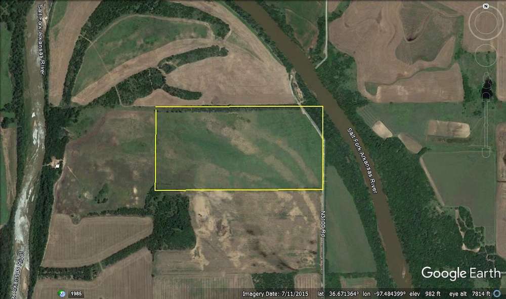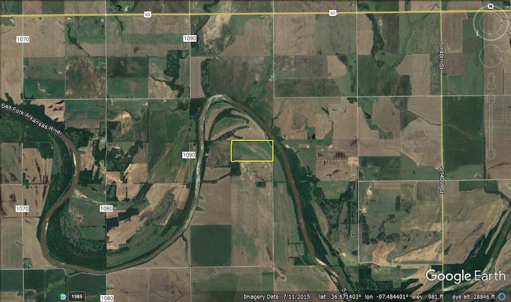 The Salt Fork River angles across the Northeast corner of the property. It has some beautiful tree cover, consisting of several varieties of hardwoods. These include Cottonwoods, American Elms, China-berry, and Hackberry. This River-timber is full of deer trails, serving as a corridor for deer travel.
