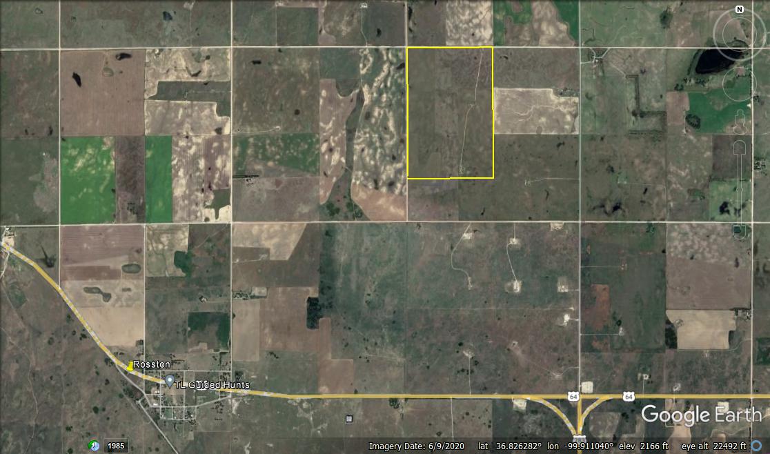 Here’s a great grass tract just a couple miles from Rosston and less than 10 miles from Laverne. It’s primarily grass pasture with approximately 126 Acres in CRP through 2037, paying $13/acre. It has scattered plum thickets which hold some deer. There’s a water well and windmill on this property and cross-fencing. It has great access, bordered on the two sides by well-maintained county roads, and less than a mile from a paved township road. The tract offers a great location for a country home as well. Feel free to call Steve Purviance with any questions or to schedule a showing.
