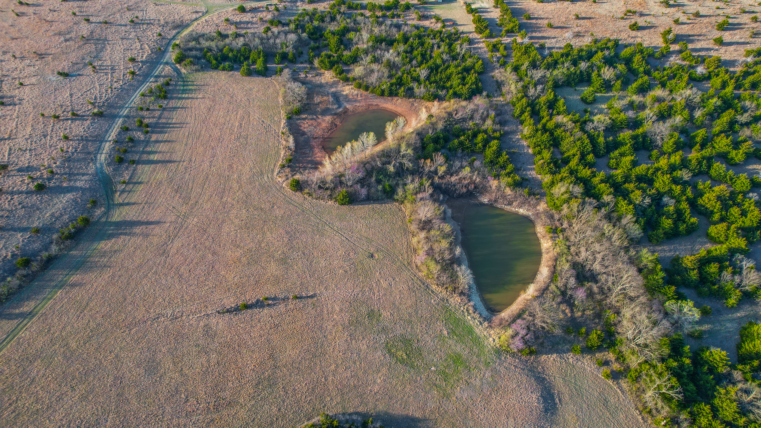 - 3 separate ponds scattered across the acreage