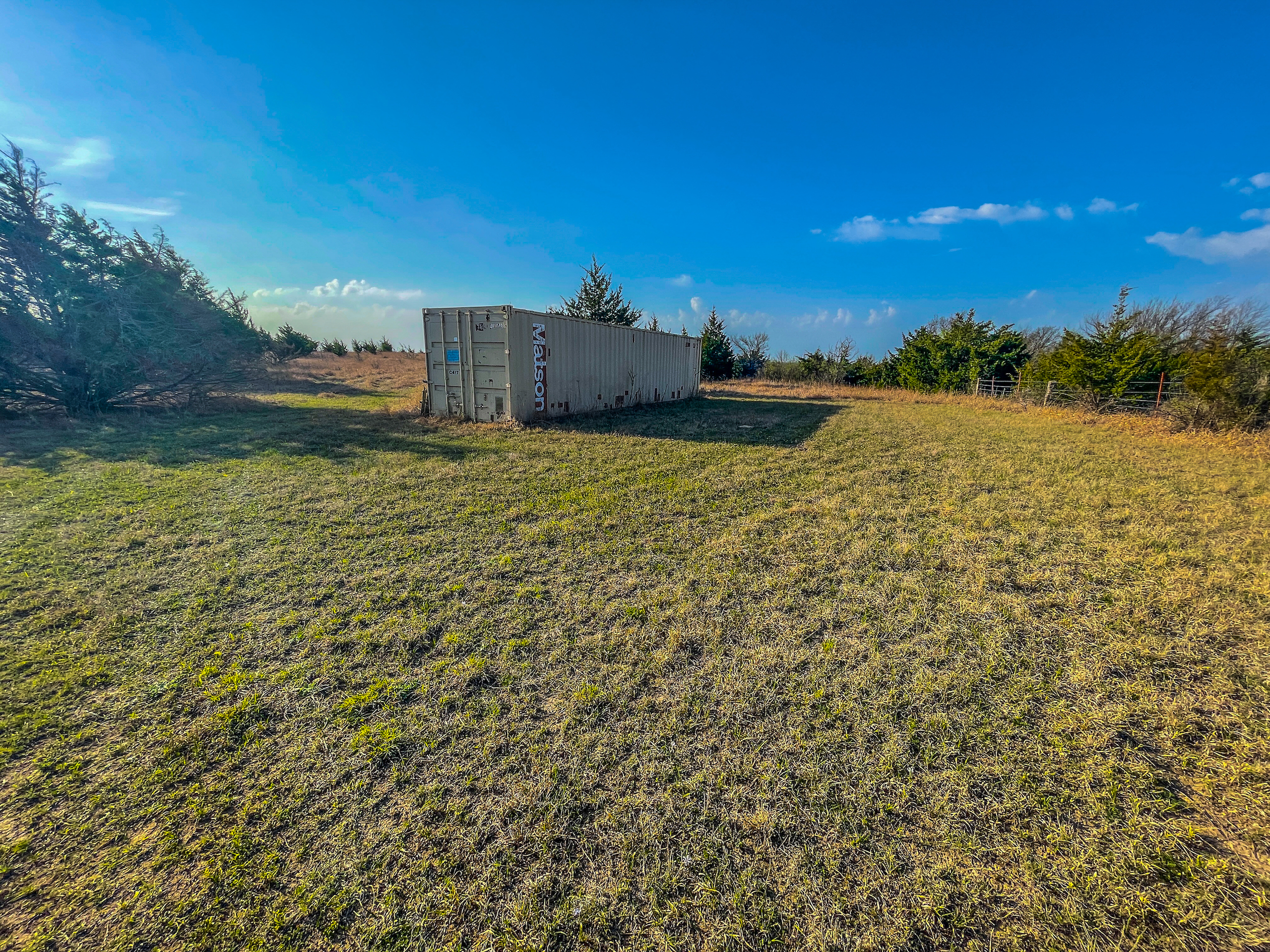 - Large shipping container and several implements to remain with the property