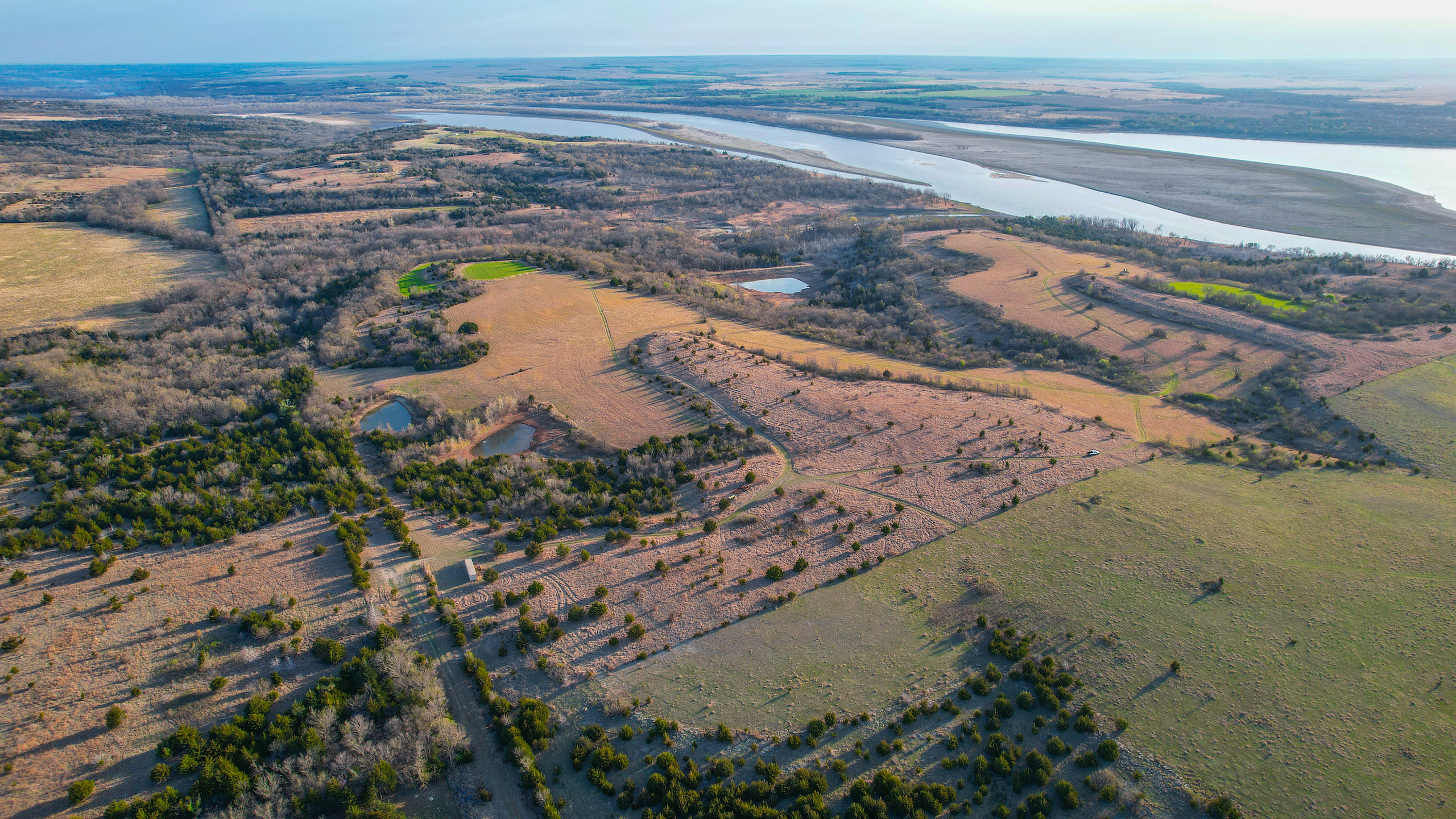 Looking for a true one-of-a-kind hunting property located only 15 minutes from Ponca City? Look no further than this incredible acreage located along the banks of the Arkansas River/Kaw Lake. Access the property via the dead county road that provides plenty of seclusion and privacy setback from the main roads. Driving through the property you immediately see the tremendous opportunity this property offers, but also the beauty of all that the surrounding area is known for. Incredible views of the surrounding Arkansas River valley and beautiful Kaw Lake are scattered all along the east side of the property and would make for a great site for an off-grid cabin with truly breathtaking views. Touring the rest of the property, you will see the multiple food plots that are already established and sure to draw wildlife in from all around. The 3 separate ponds will also provide plenty of water for the wildlife, as well as provide some good fishing opportunities. Looking for something a little bigger? There are hundreds of acres of public hunting ground available to the North and East with limited access for the public to get in. On top of that, there are another 300 acres to the south of Common School Land that is currently leased for hunting by this seller, and could obviously be leased outright at the next auction for those properties. If you are looking for some income potential on this property, there is a good amount of ground that has been being cut for hay, and could certainly be continued, or let grow to provide additional habitat. Don’t wait long, give me a call today to schedule your private showing before it’s too late!