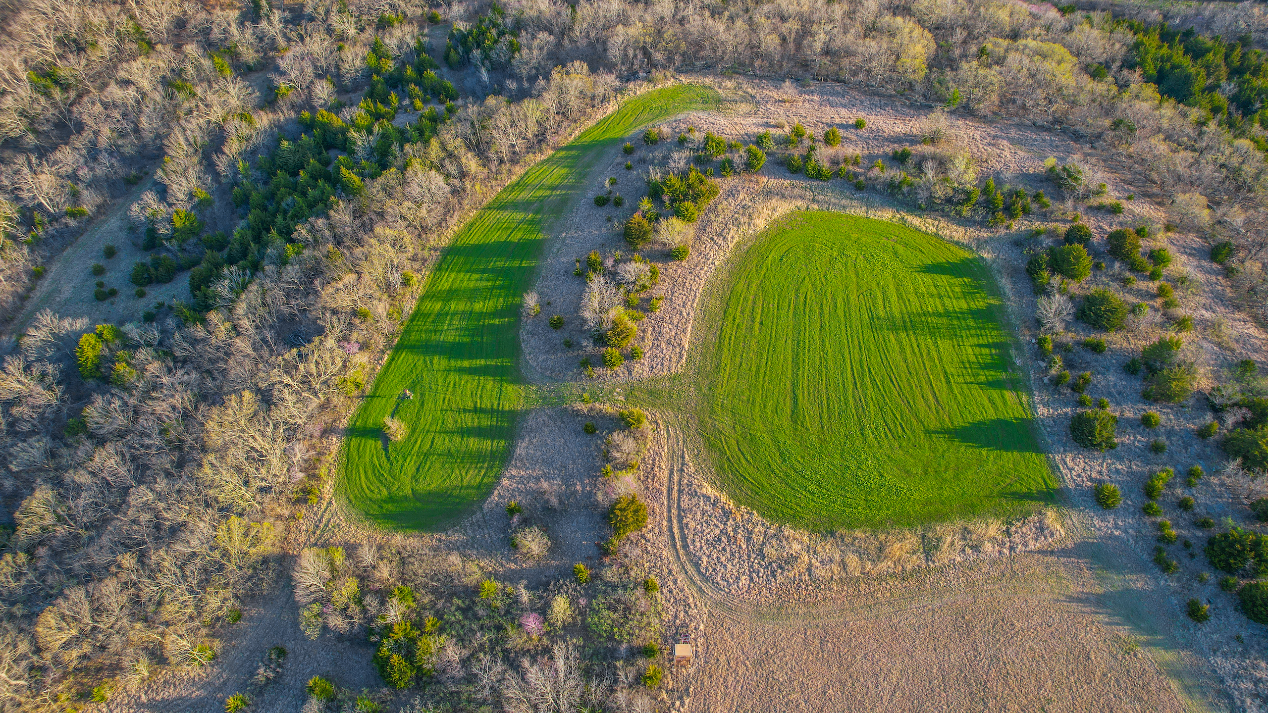 - Multiple food plot locations already in place provide plenty of food to draw deer from all around