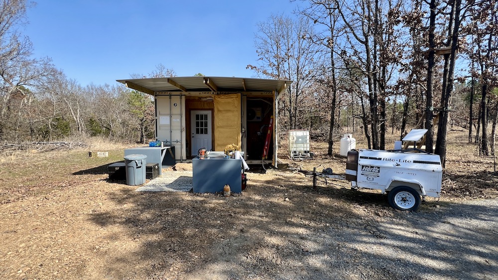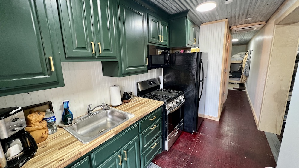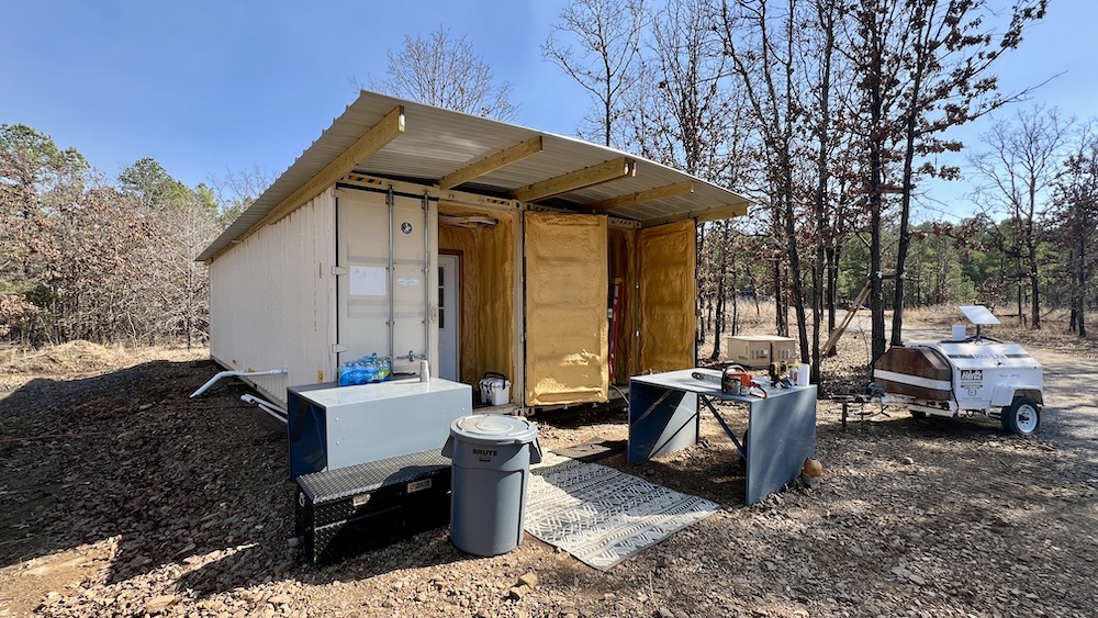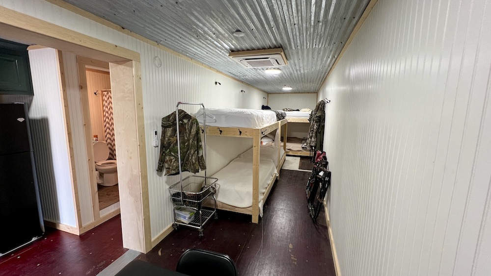 - Double conex-type metal cabin with bunkbeds, bathroom and kitchen