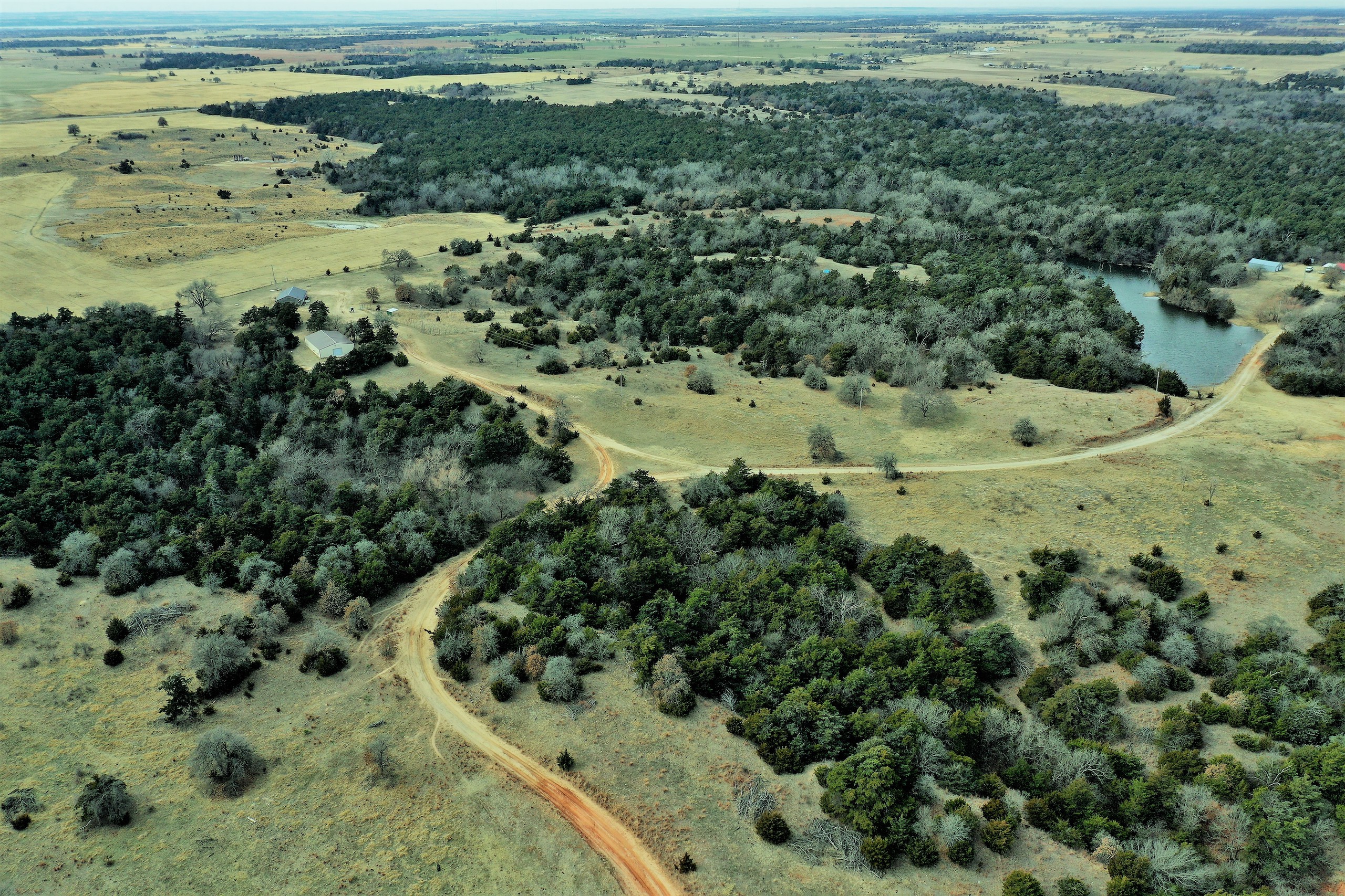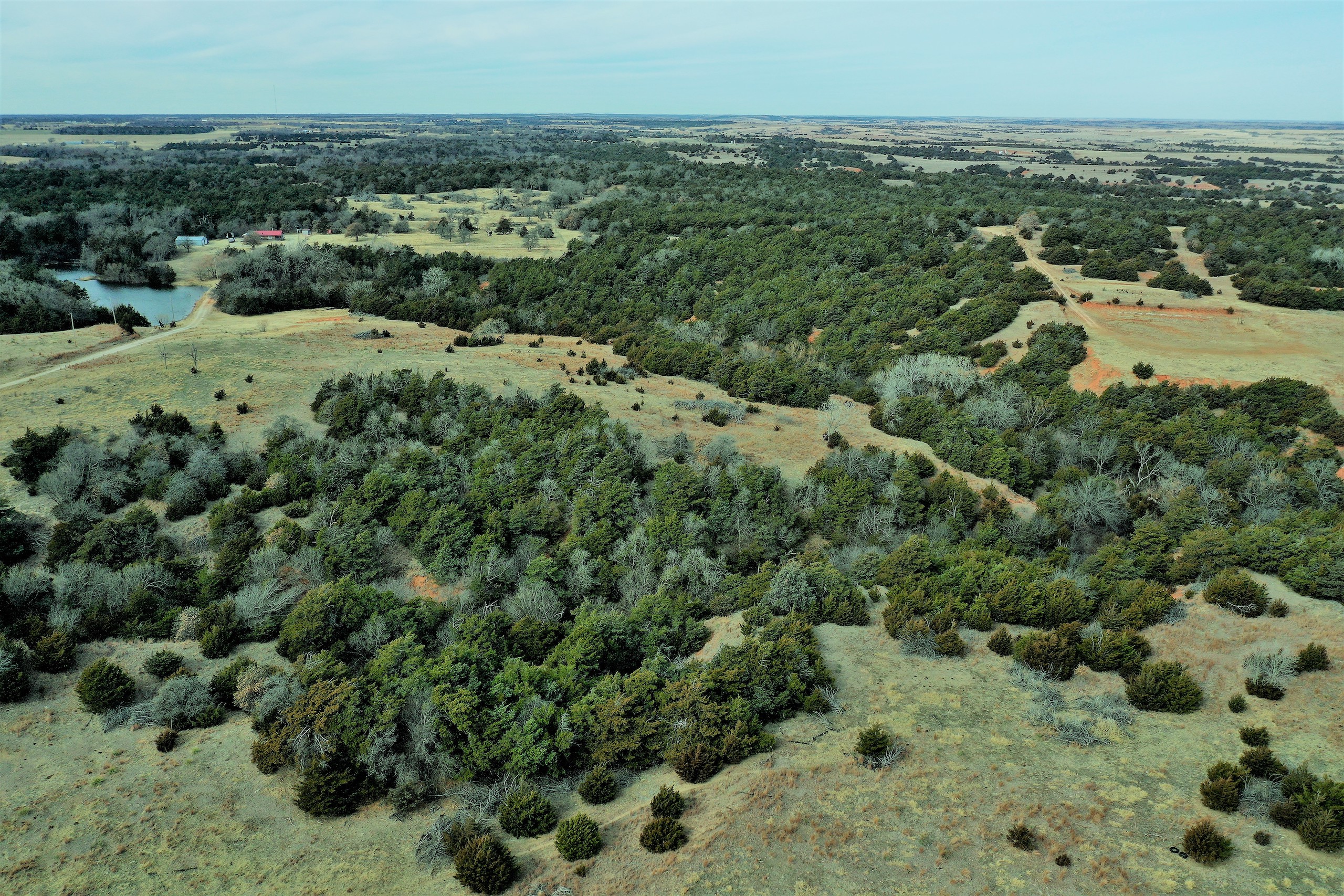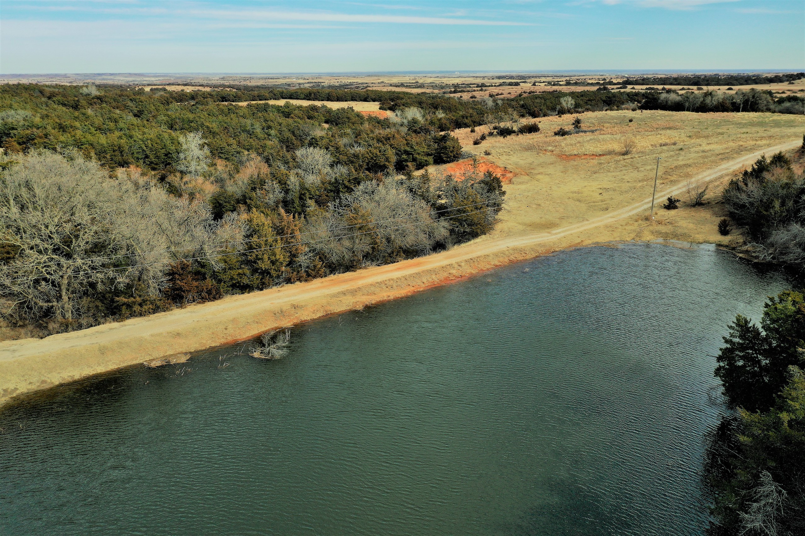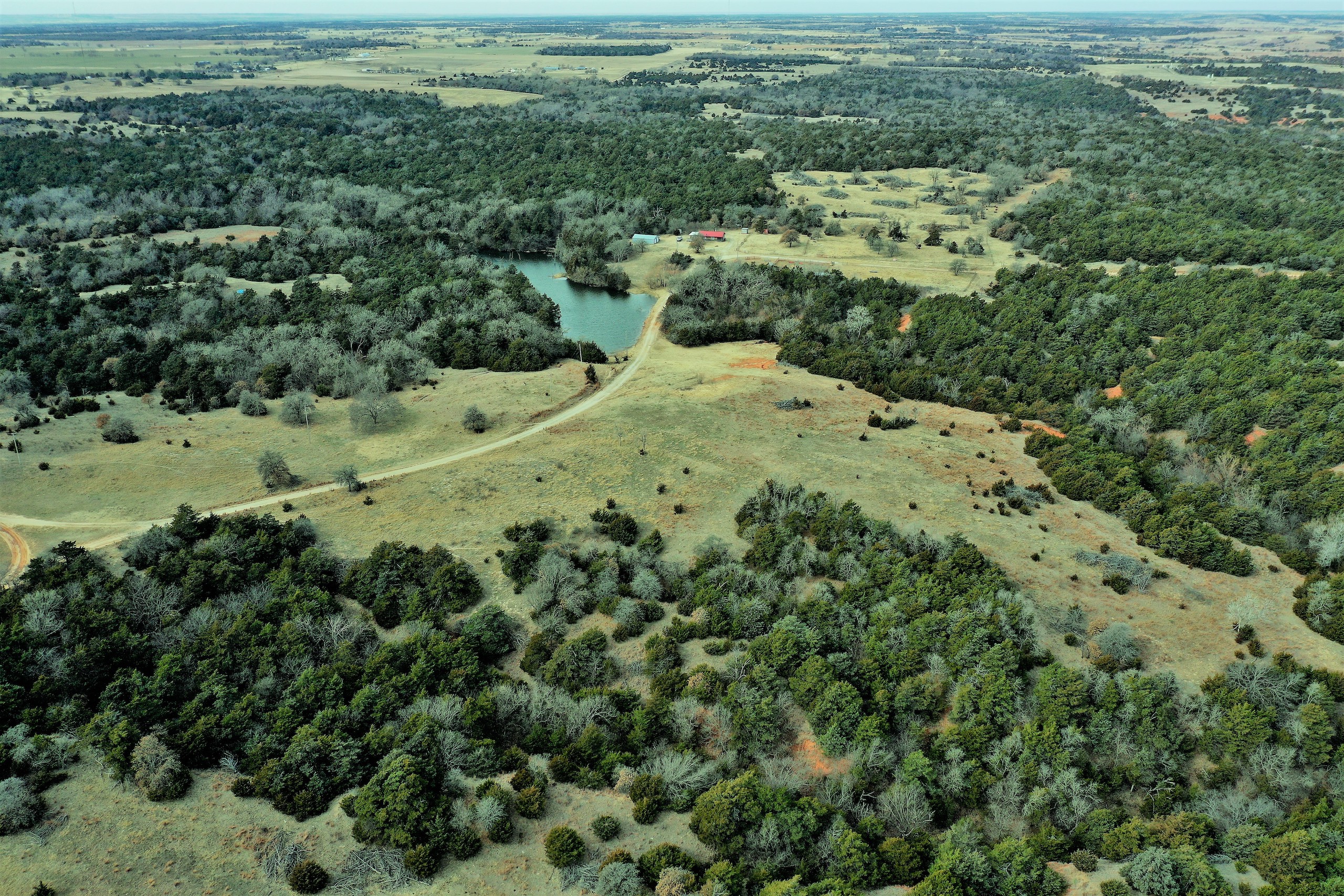 Here’s a beautiful Recreational property providing everything that Northwest Oklahoma has to offer; and then some! A beautiful Spring-fed Pond is a large highlight of the property. It’s full of fish and fish-cover. You can just visualize a big Bass hammering your spinner as you bring it by a fallen Oak log. The pond is maintained by a heavy water flow even in drought conditions. This spring is so strong that the pond-overflow provides a constant flow downstream as well. The creek supports some large, beautiful hardwoods, consisting of Blackjack Oak, Cottonwoods, China-Berry, and Elms.