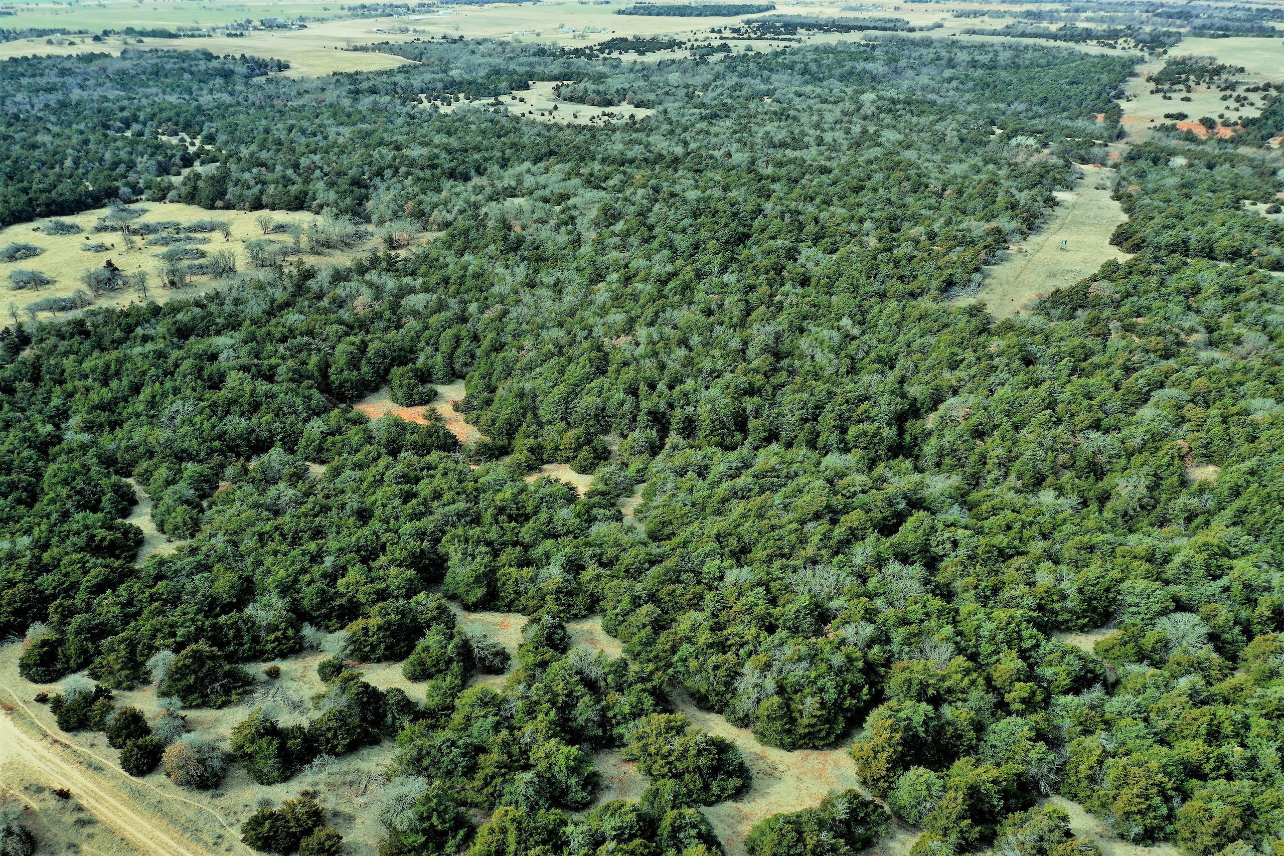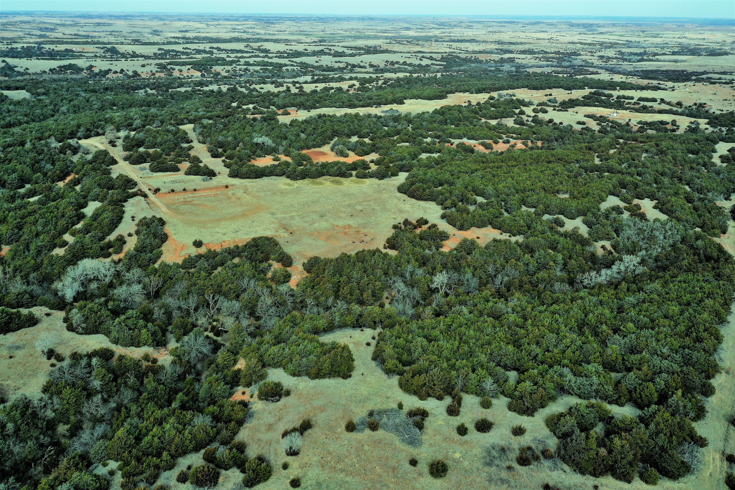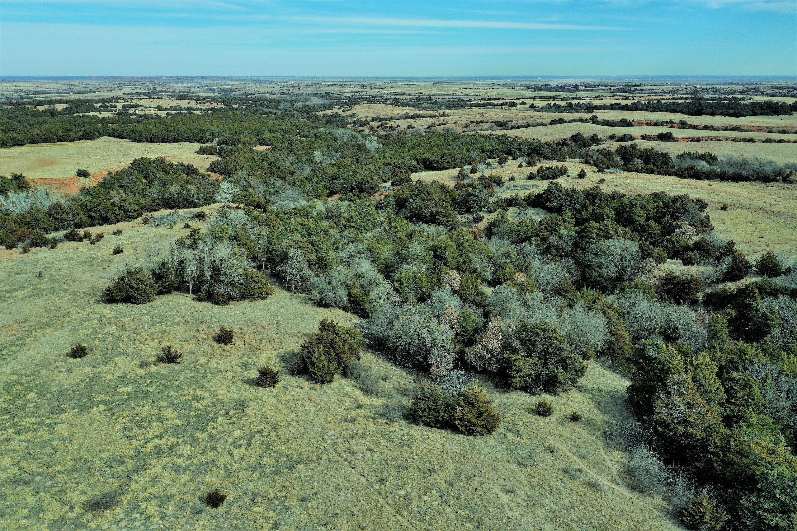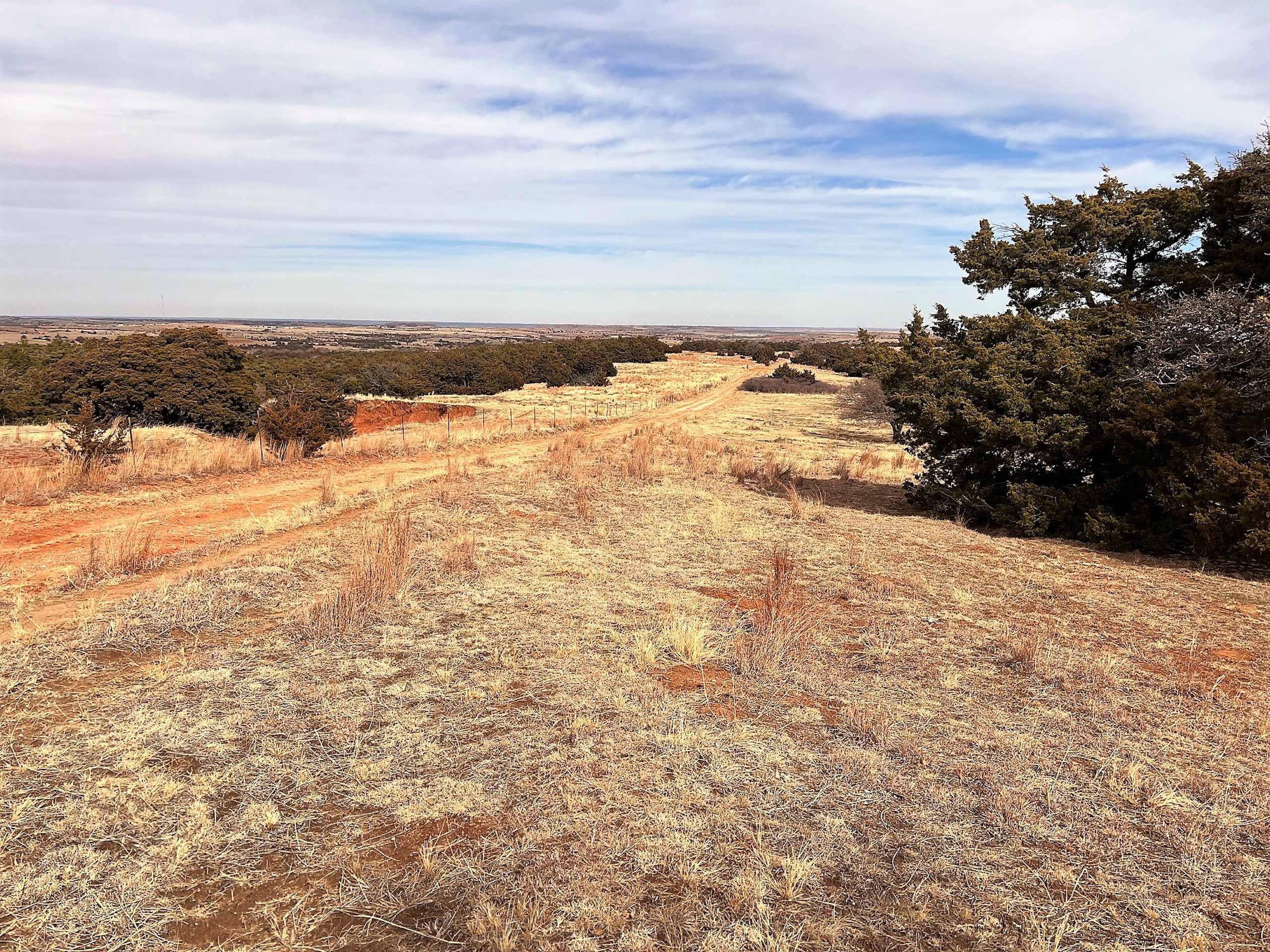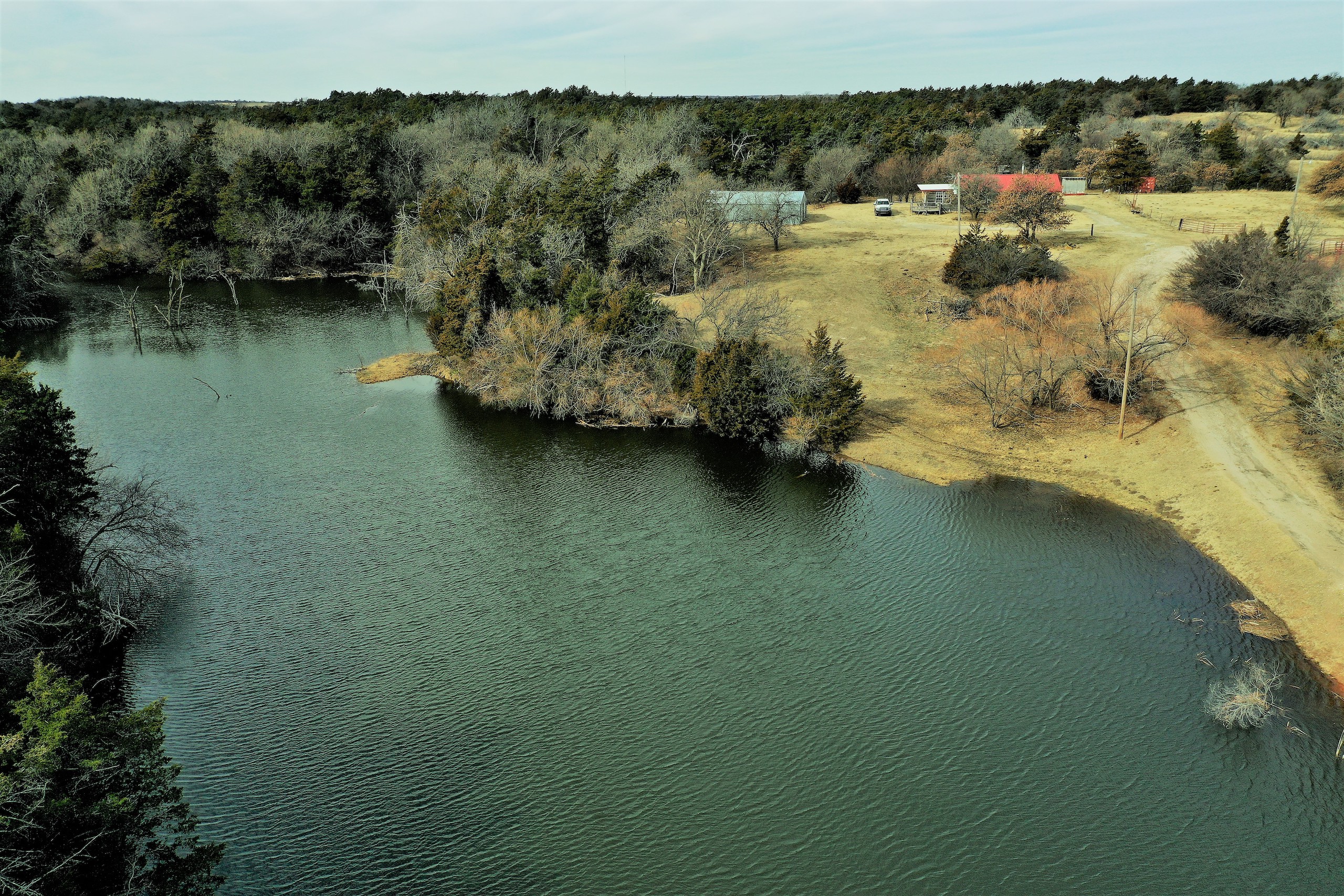 Here’s a beautiful Recreational property providing everything that Northwest Oklahoma has to offer; and then some! A beautiful Spring-fed Pond is a large highlight of the property. It’s full of fish and fish-cover. You can just visualize a big Bass hammering your spinner as you bring it by a fallen Oak log. The pond is maintained by a heavy water flow even in drought conditions. This spring is so strong that the pond-overflow provides a constant flow downstream as well. The creek supports some large, beautiful hardwoods, consisting of Blackjack Oak, Cottonwoods, China-Berry, and Elms.