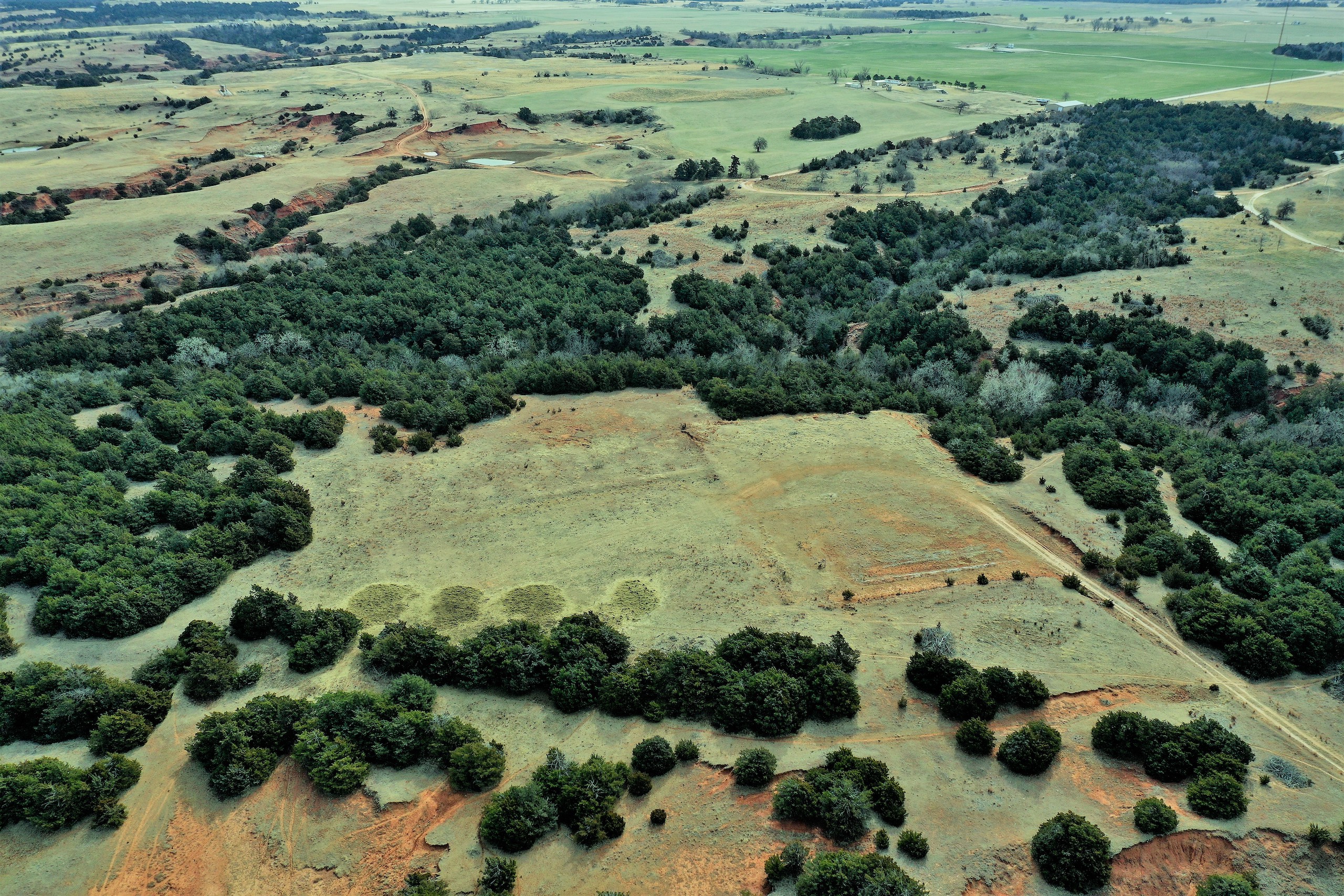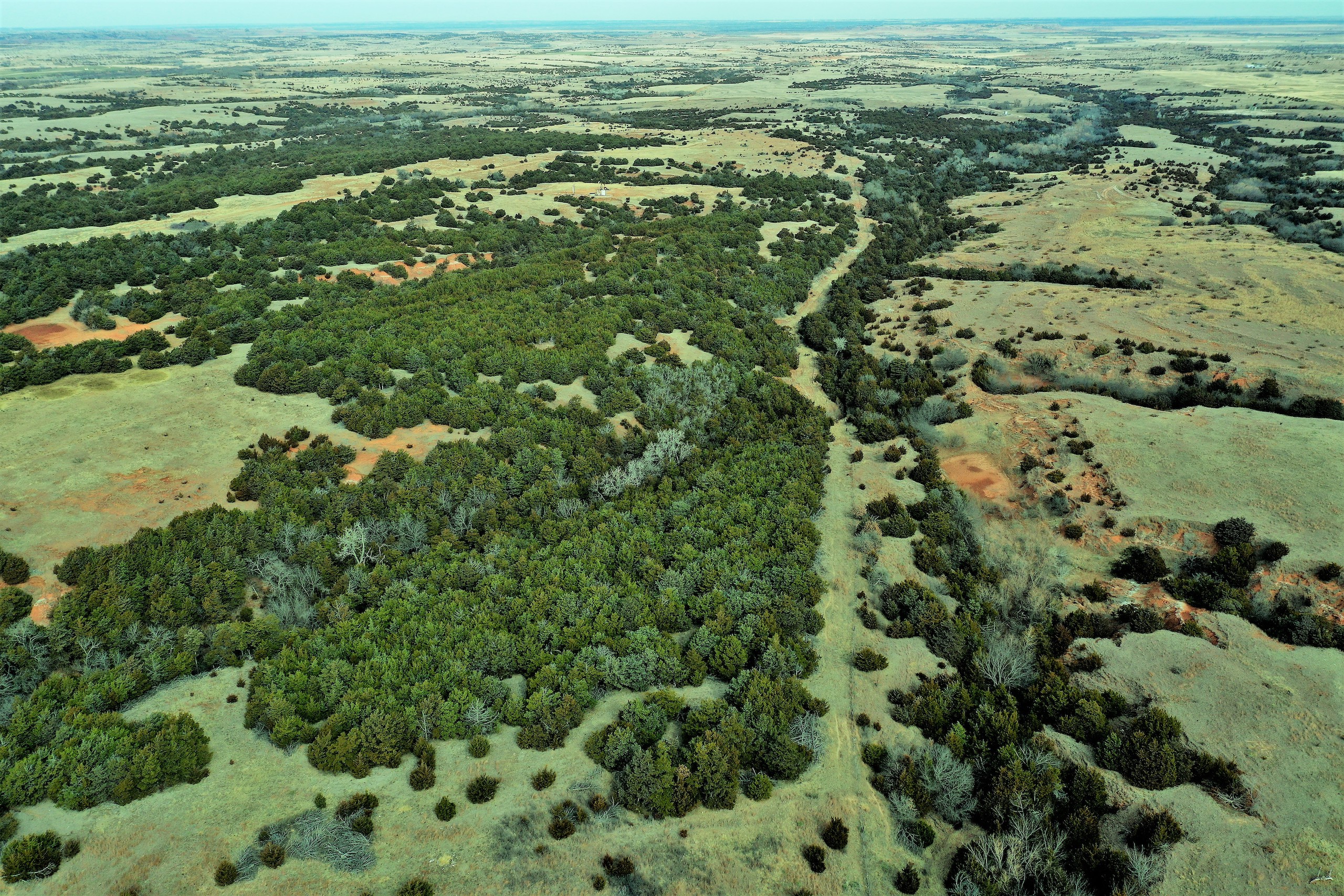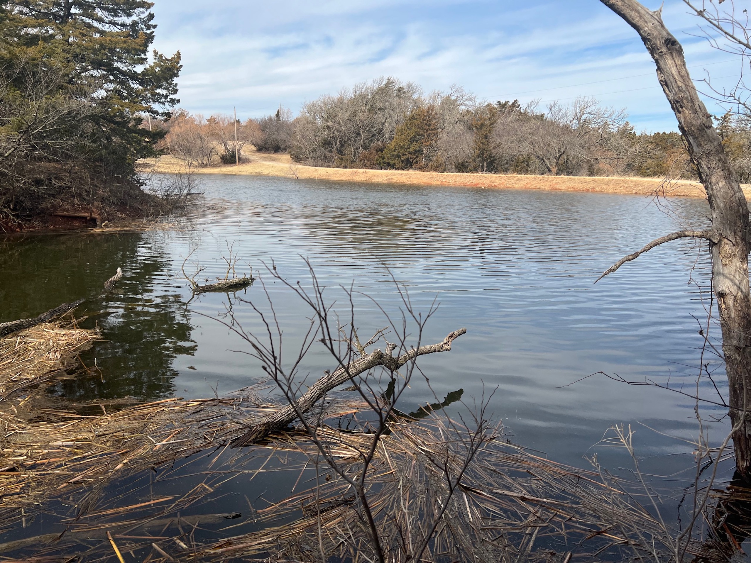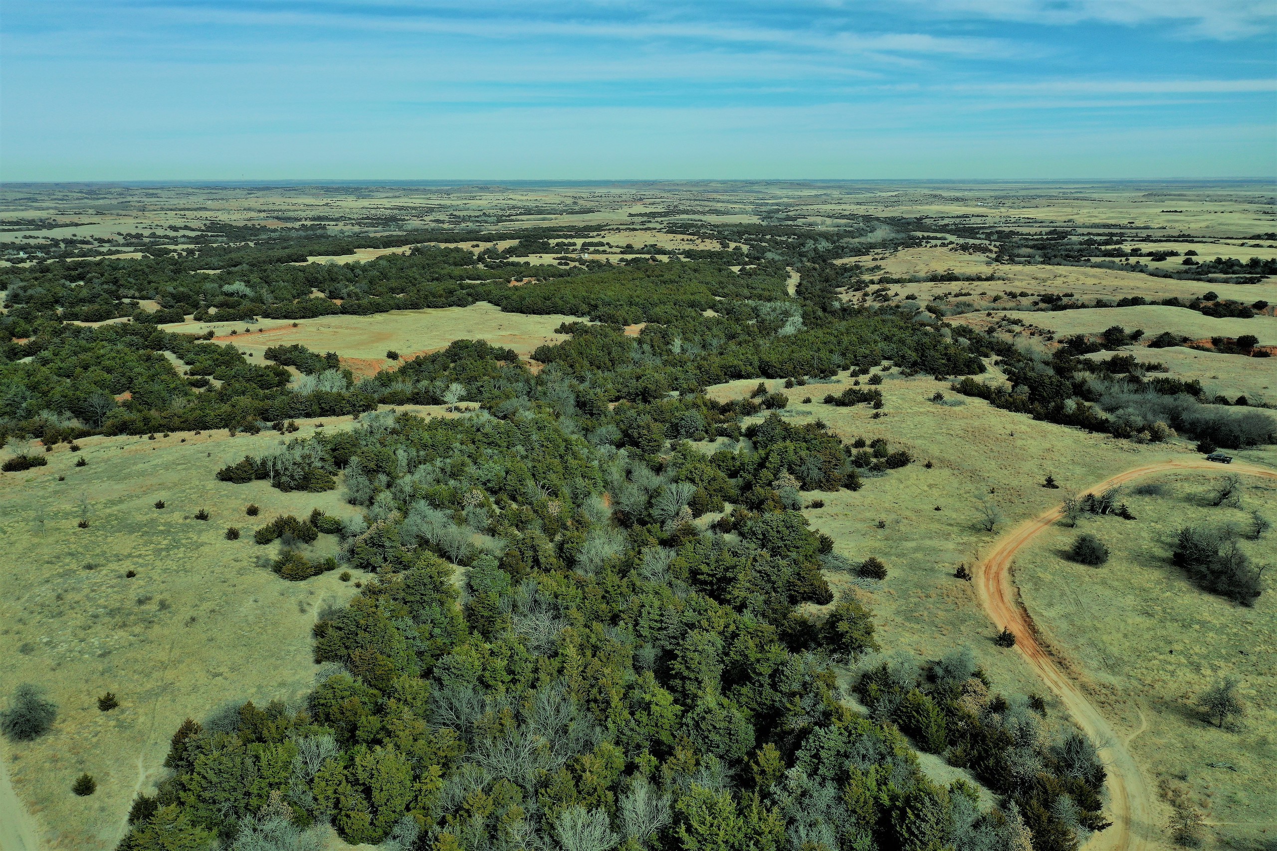 Here’s a beautiful Recreational property providing everything that Northwest Oklahoma has to offer; and then some! A beautiful Spring-fed Pond is a large highlight of the property. It’s full of fish and fish-cover. You can just visualize a big Bass hammering your spinner as you bring it by a fallen Oak log. The pond is maintained by a heavy water flow even in drought conditions. This spring is so strong that the pond-overflow provides a constant flow downstream as well. The creek supports some large, beautiful hardwoods, consisting of Blackjack Oak, Cottonwoods, China-Berry, and Elms.
