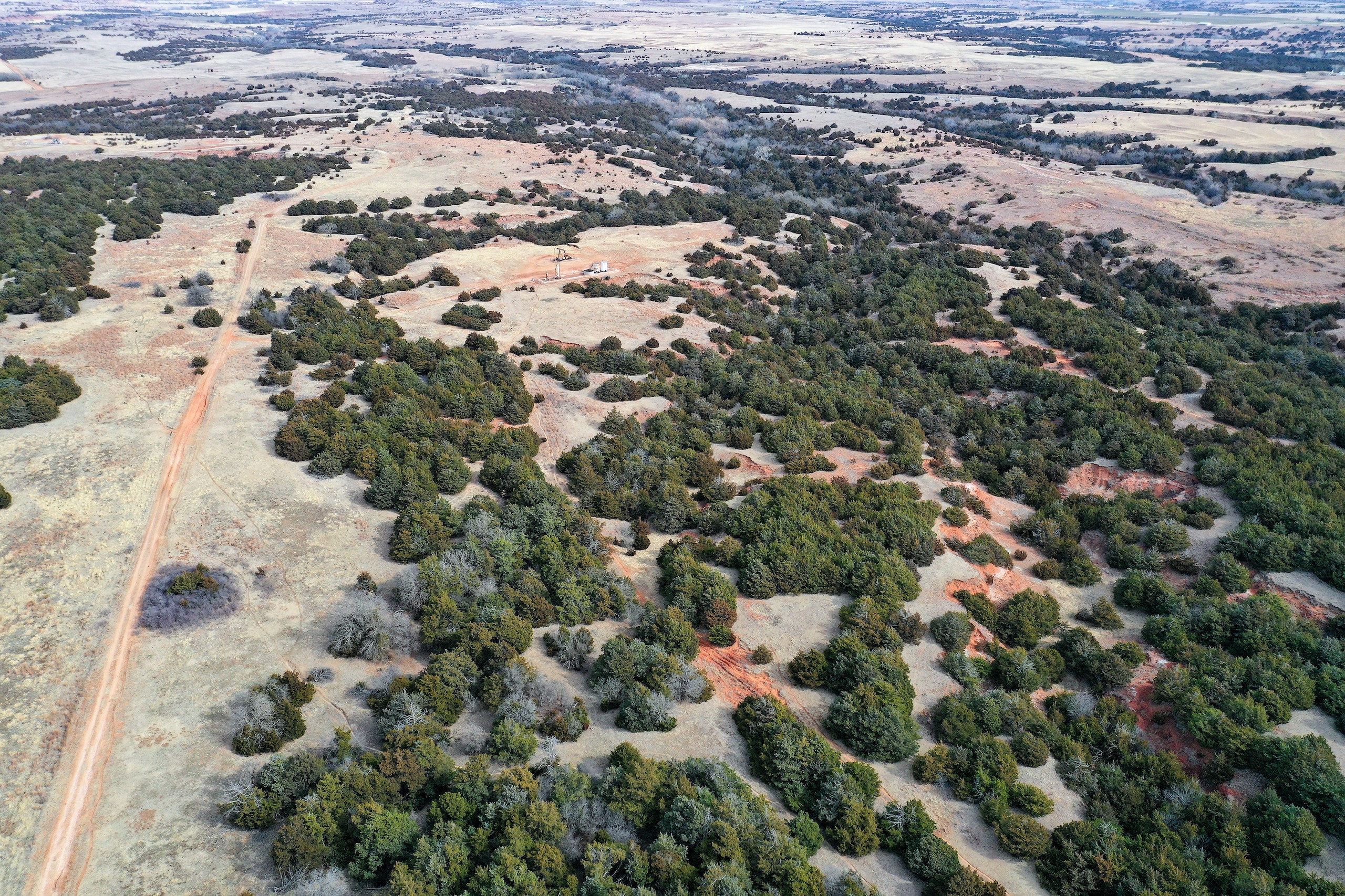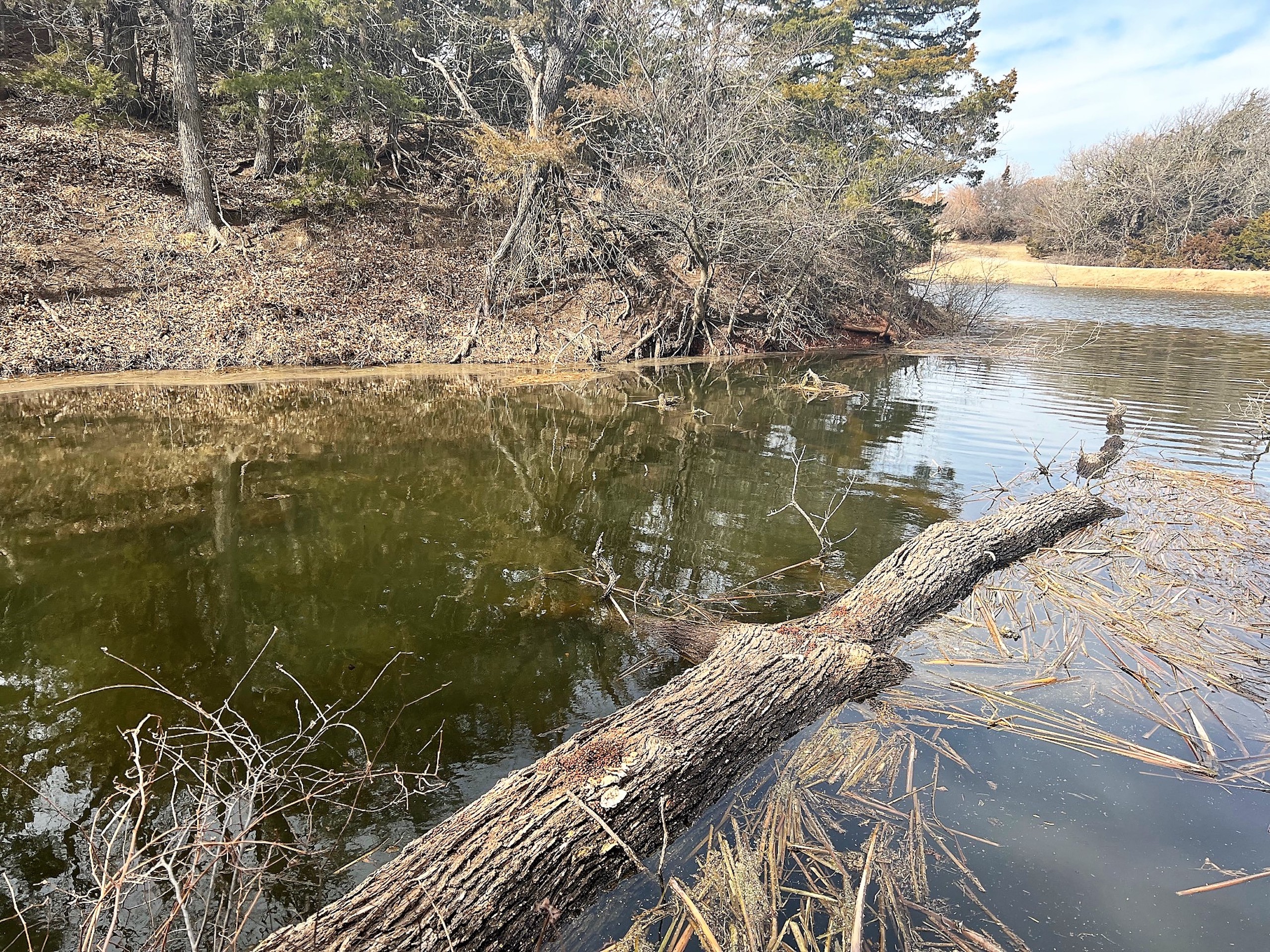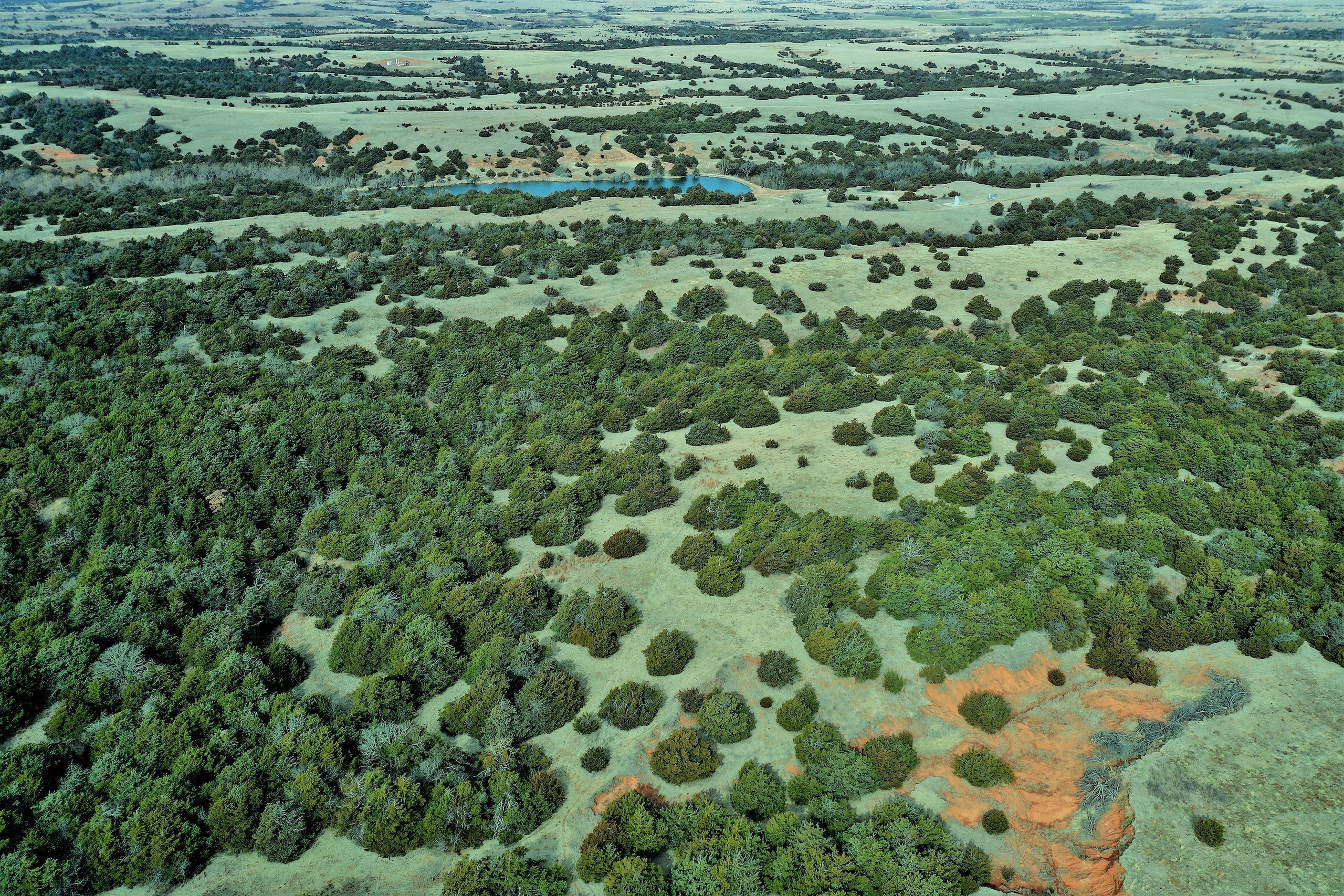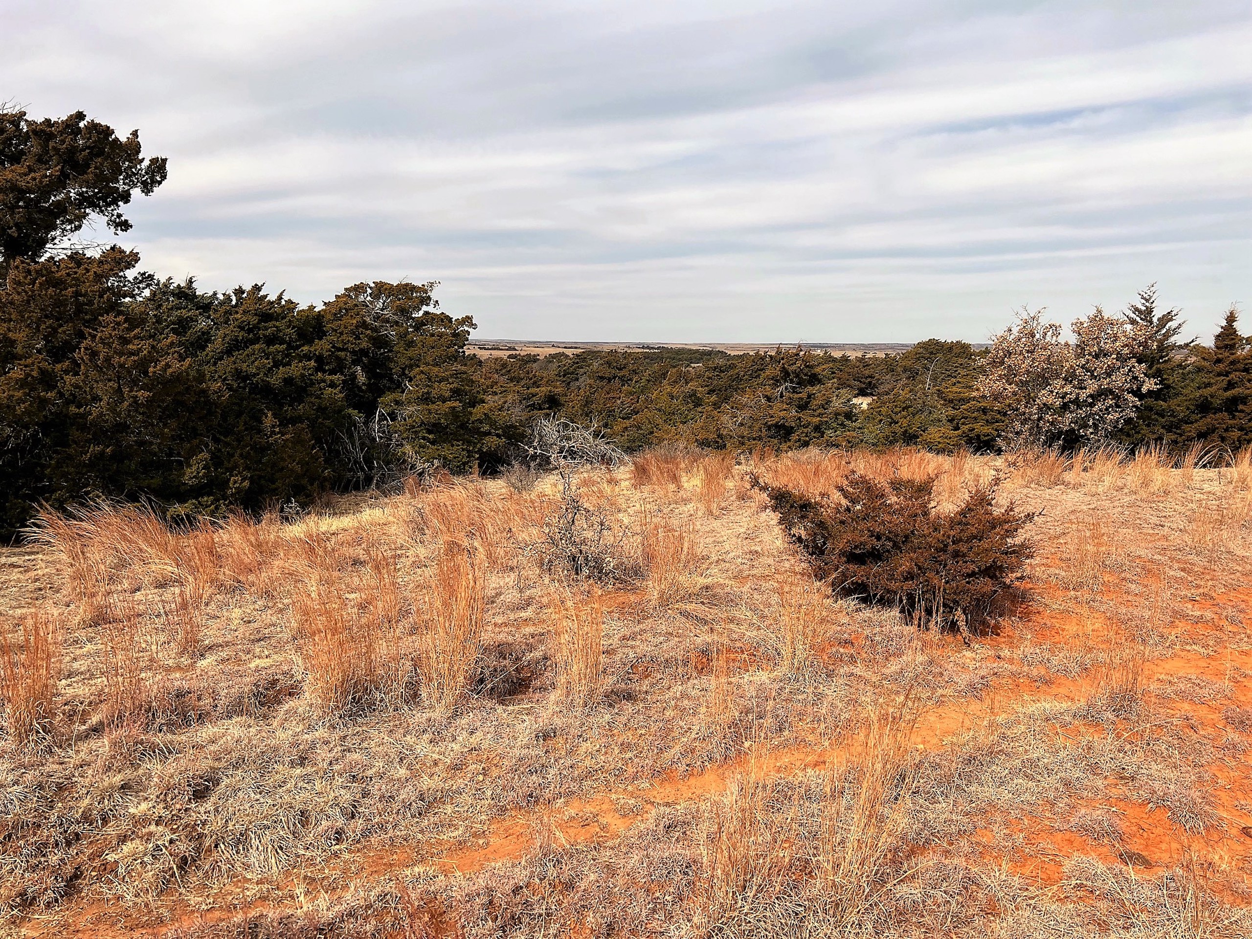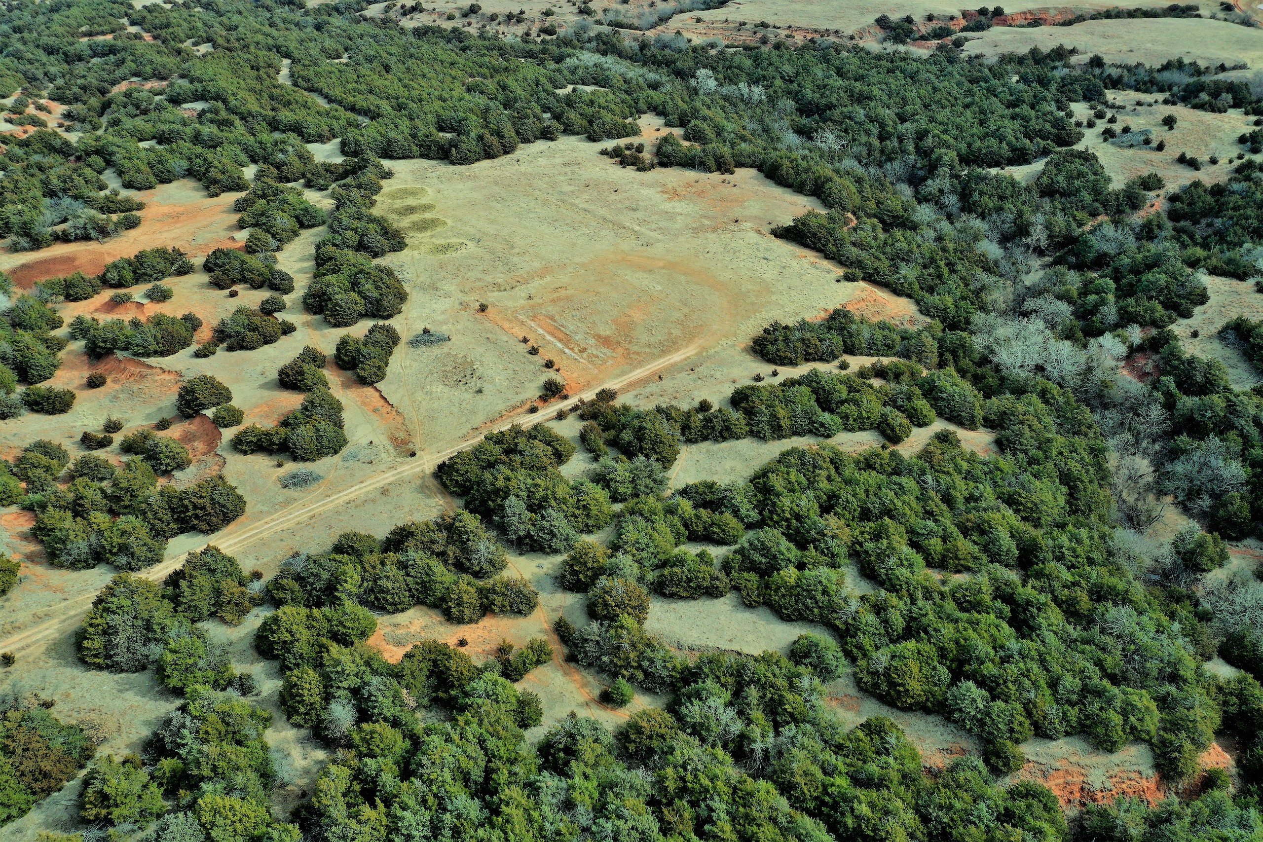 Here’s a beautiful Recreational property providing everything that Northwest Oklahoma has to offer; and then some! A beautiful Spring-fed Pond is a large highlight of the property. It’s full of fish and fish-cover. You can just visualize a big Bass hammering your spinner as you bring it by a fallen Oak log. The pond is maintained by a heavy water flow even in drought conditions. This spring is so strong that the pond-overflow provides a constant flow downstream as well. The creek supports some large, beautiful hardwoods, consisting of Blackjack Oak, Cottonwoods, China-Berry, and Elms.