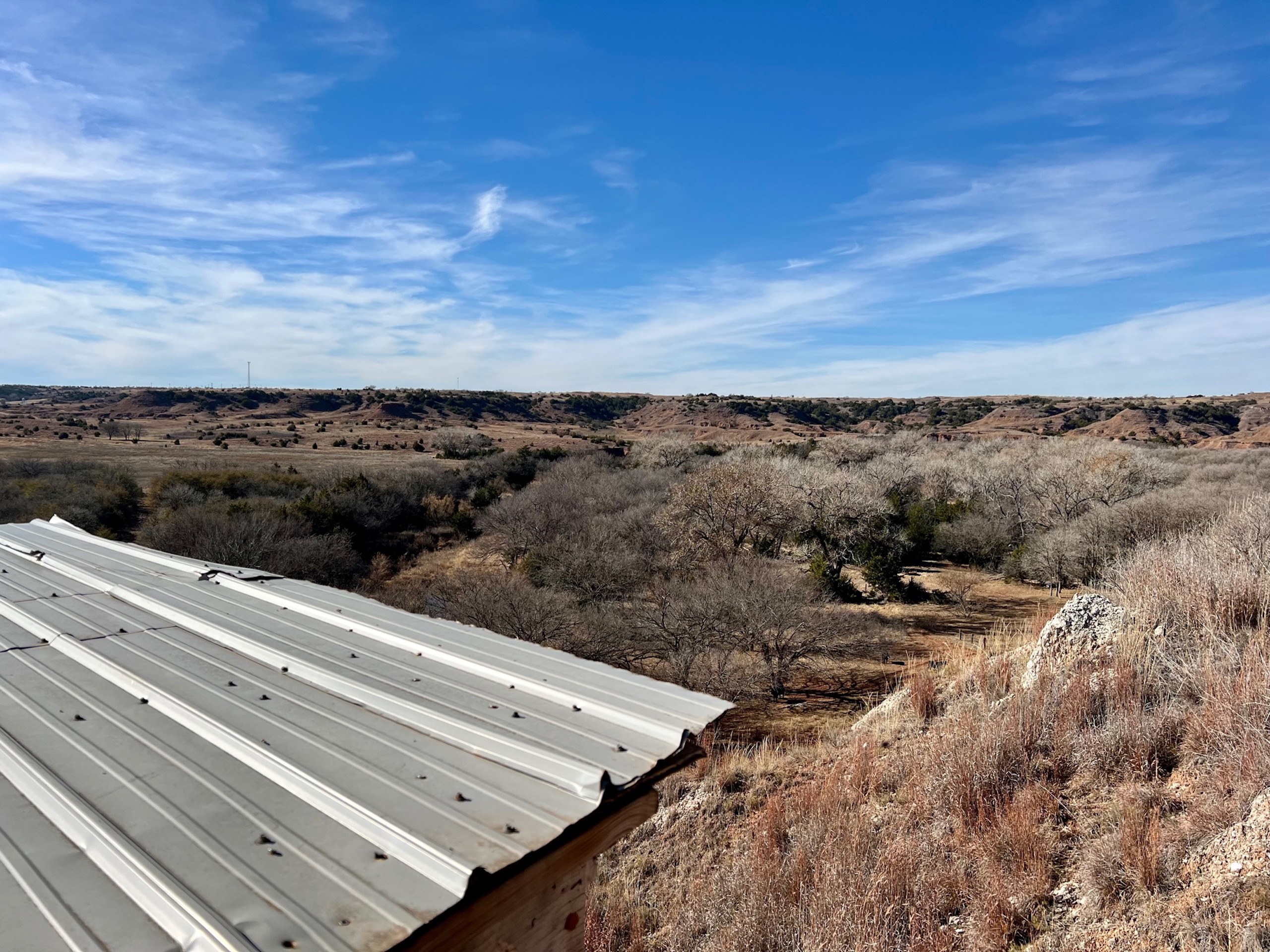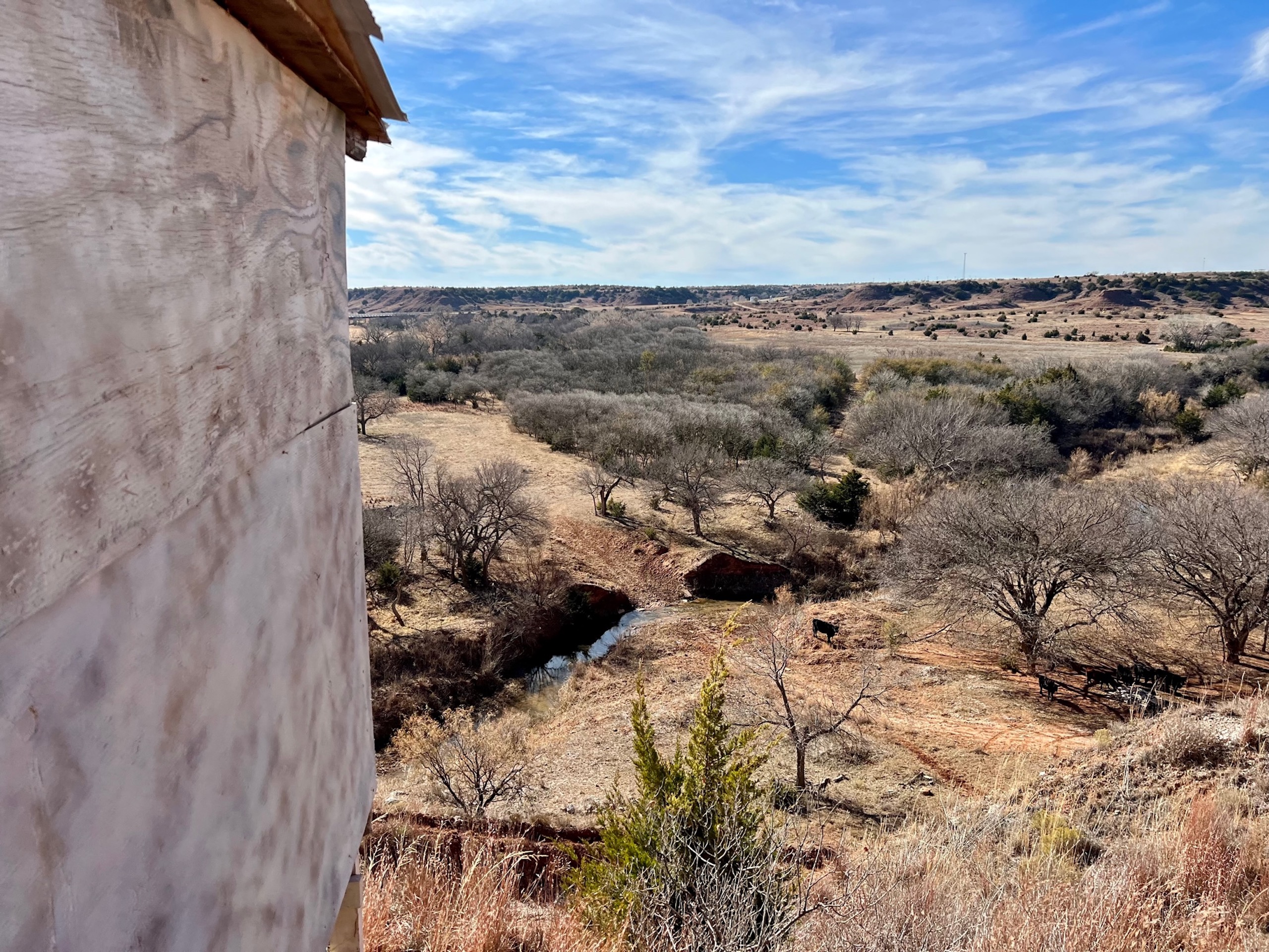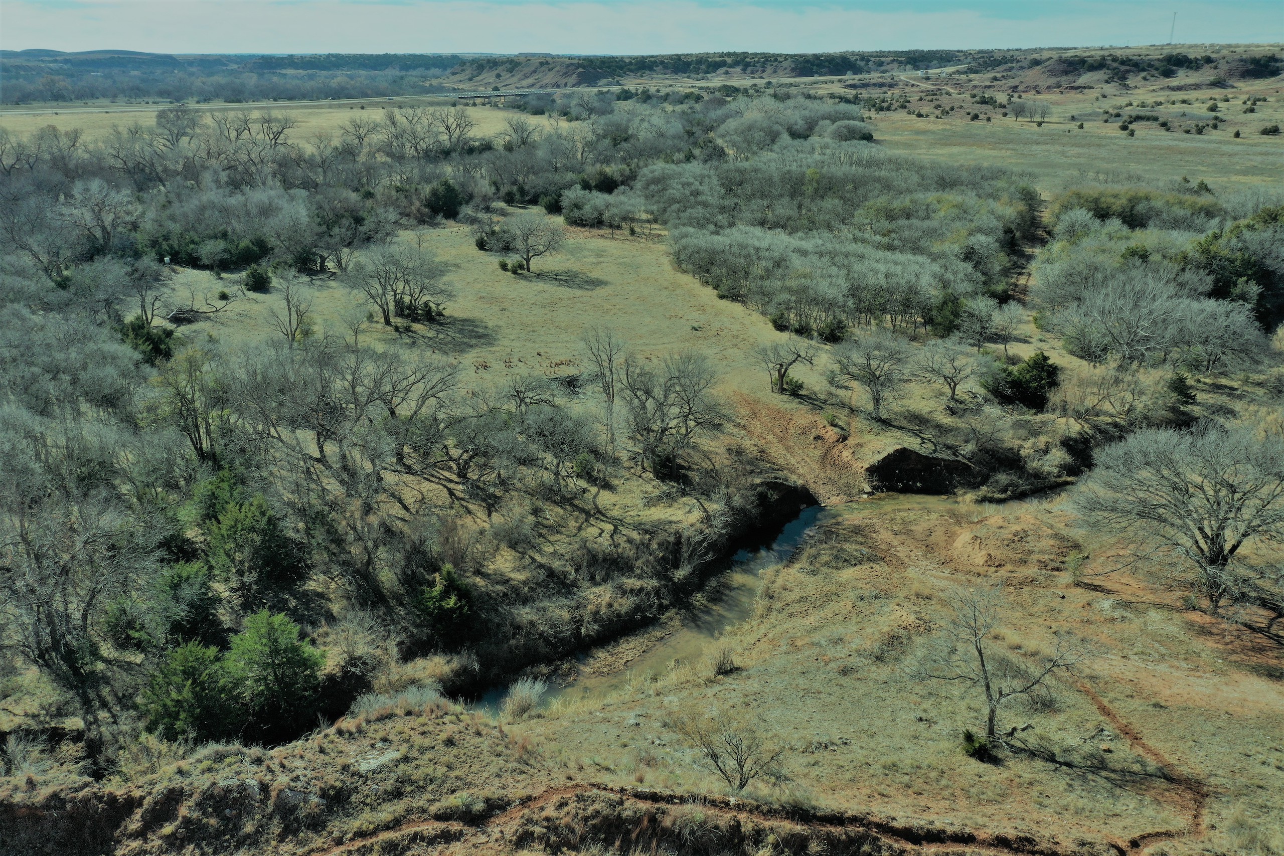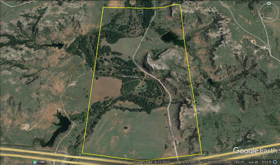 Main Creek Bottoms for sale! If you’ve driven down Hwy. 412 in Western Oklahoma, there’s a good chance you’ve noticed this beautiful property sitting on the north side of the highway. There’s an attractive barndo-minium overlooking a large field on the banks of Main Creek. The field is overlooked by towering cottonwoods on the back-side with deer and turkey in view most of the time.