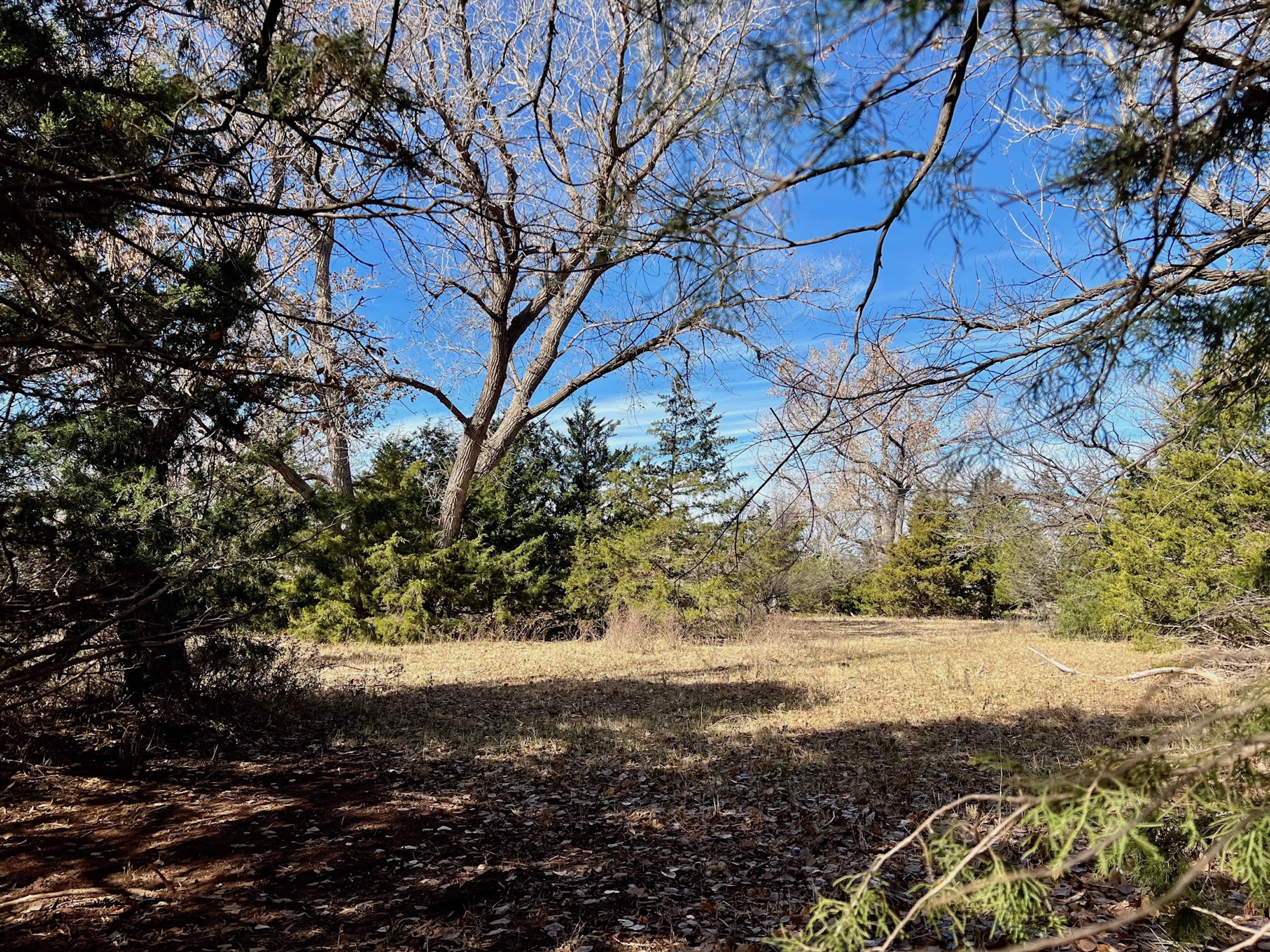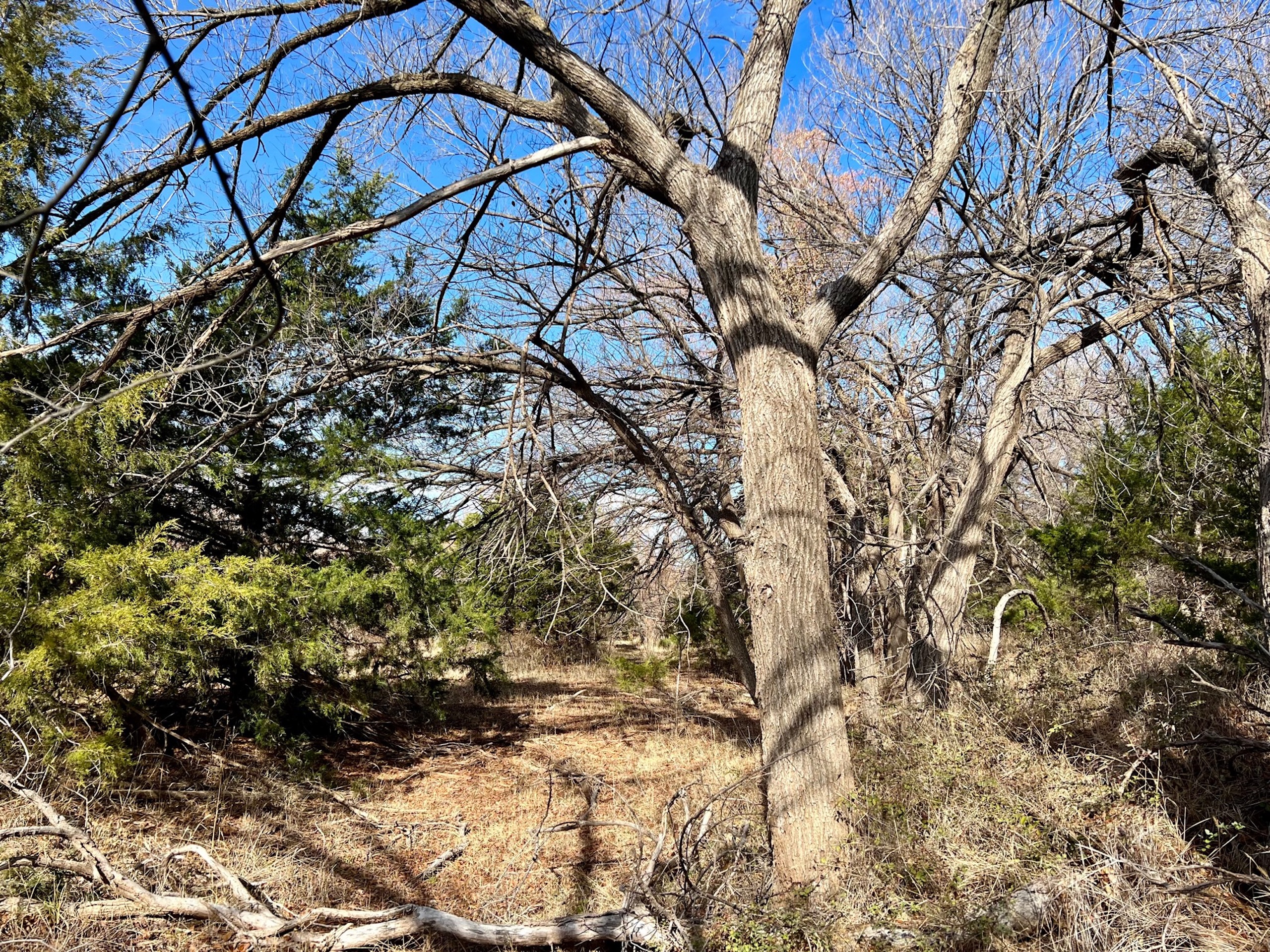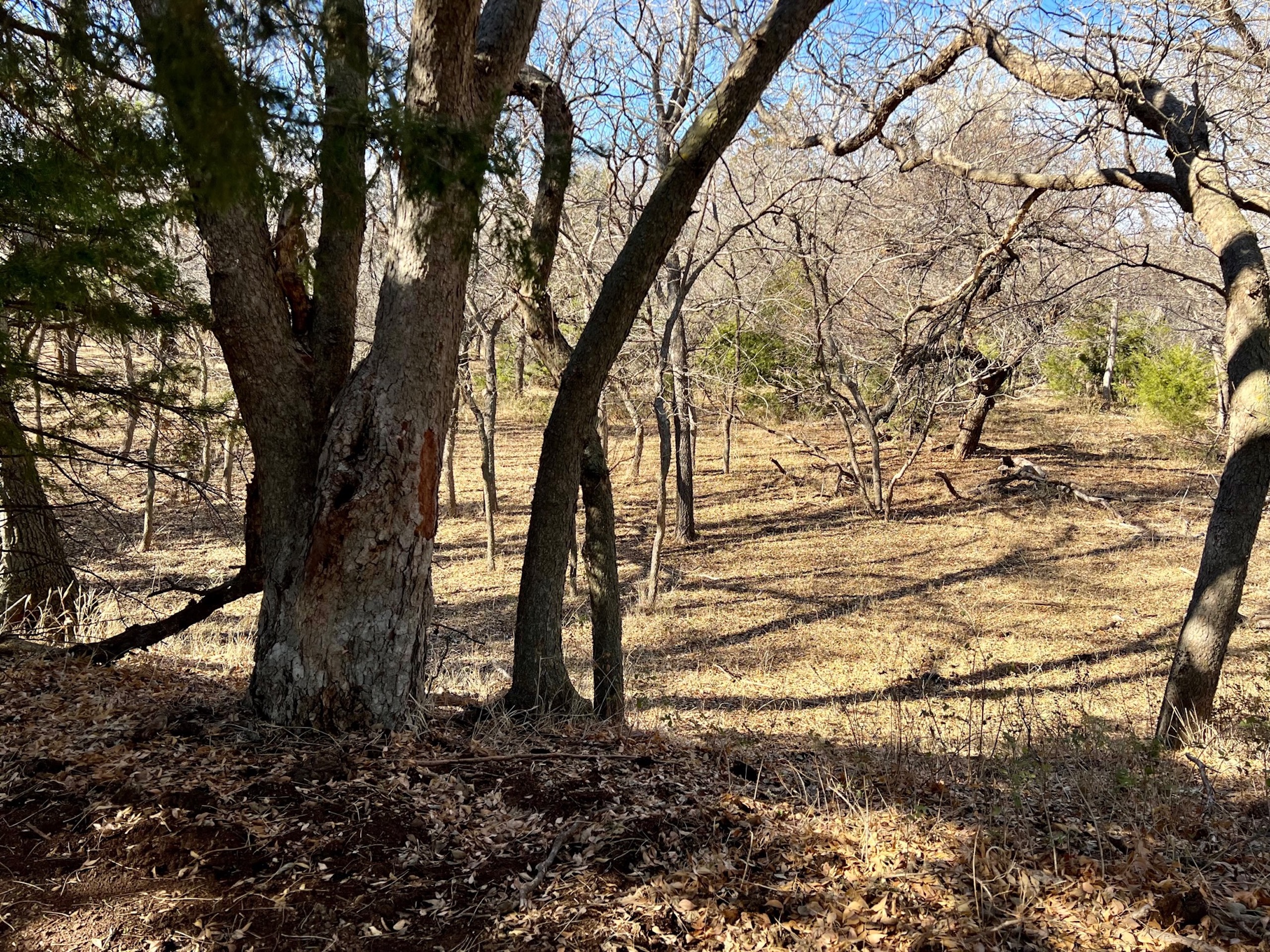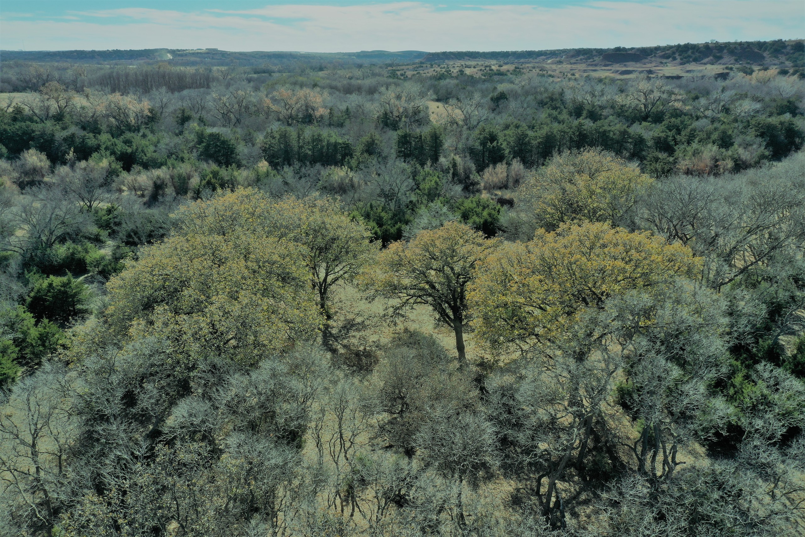 The ranch holds a diversity of wildlife. In addition to great Whitetail hunting, there are Mule Deer in this area. Sportsmen will also enjoy excellent Rio Grande turkey hunting. The mature hardwoods provide excellent roosting sites for a large winter flock of turkeys. Various portions of the ranch contain great Quail habitat as well. There is a 3-acre pond that went dry this summer. Unfortunately, we’ve experienced an extreme drought over the last year, one of the driest in many decades. The pond was stocked with fish and provided enjoyment for the owners for many years. It will fill up again. The scattered creek pools will hold ducks in the Winter as well. Once the fields are planted back to cropland, the waterfowl numbers could be unbelievable.
