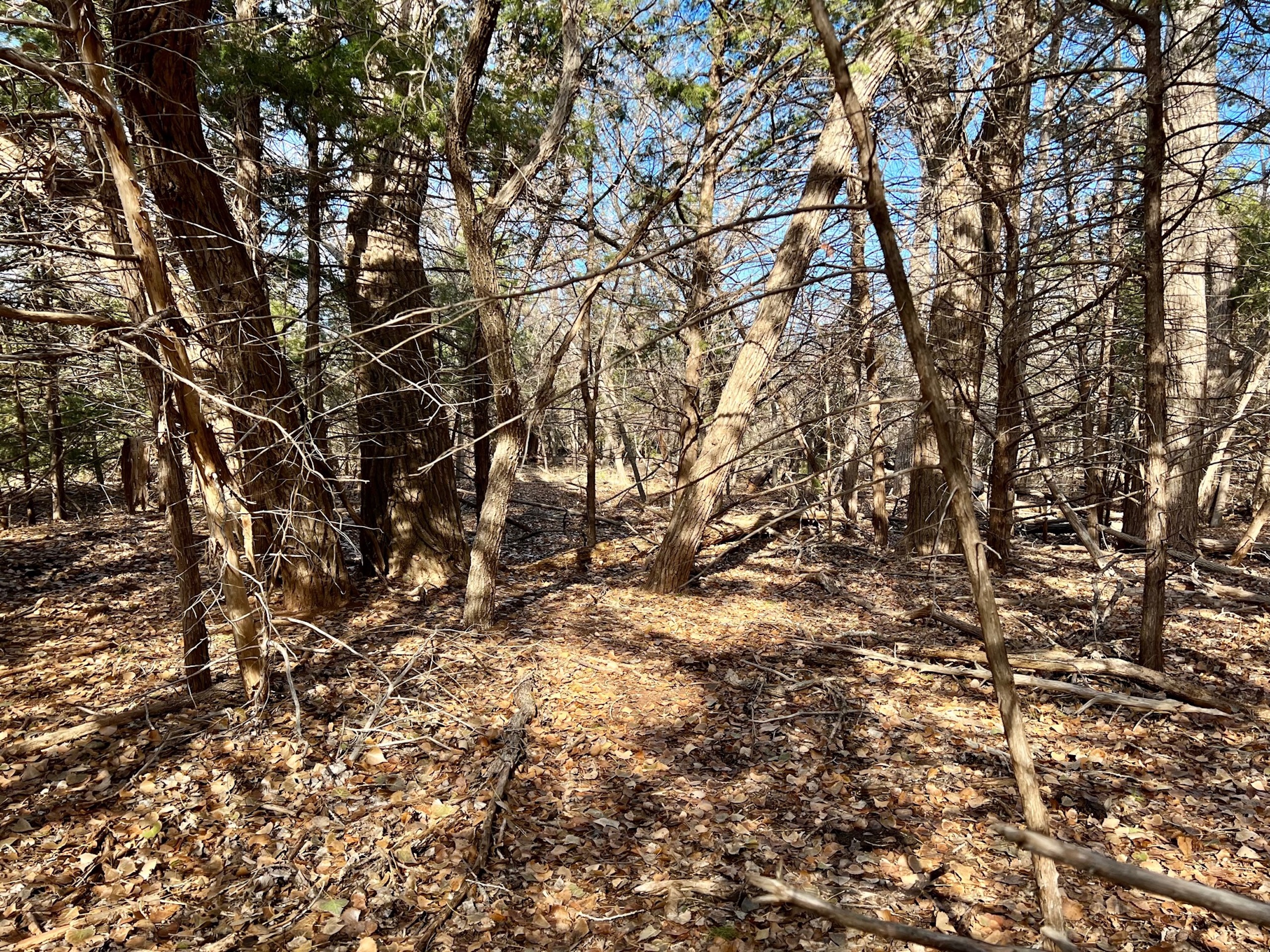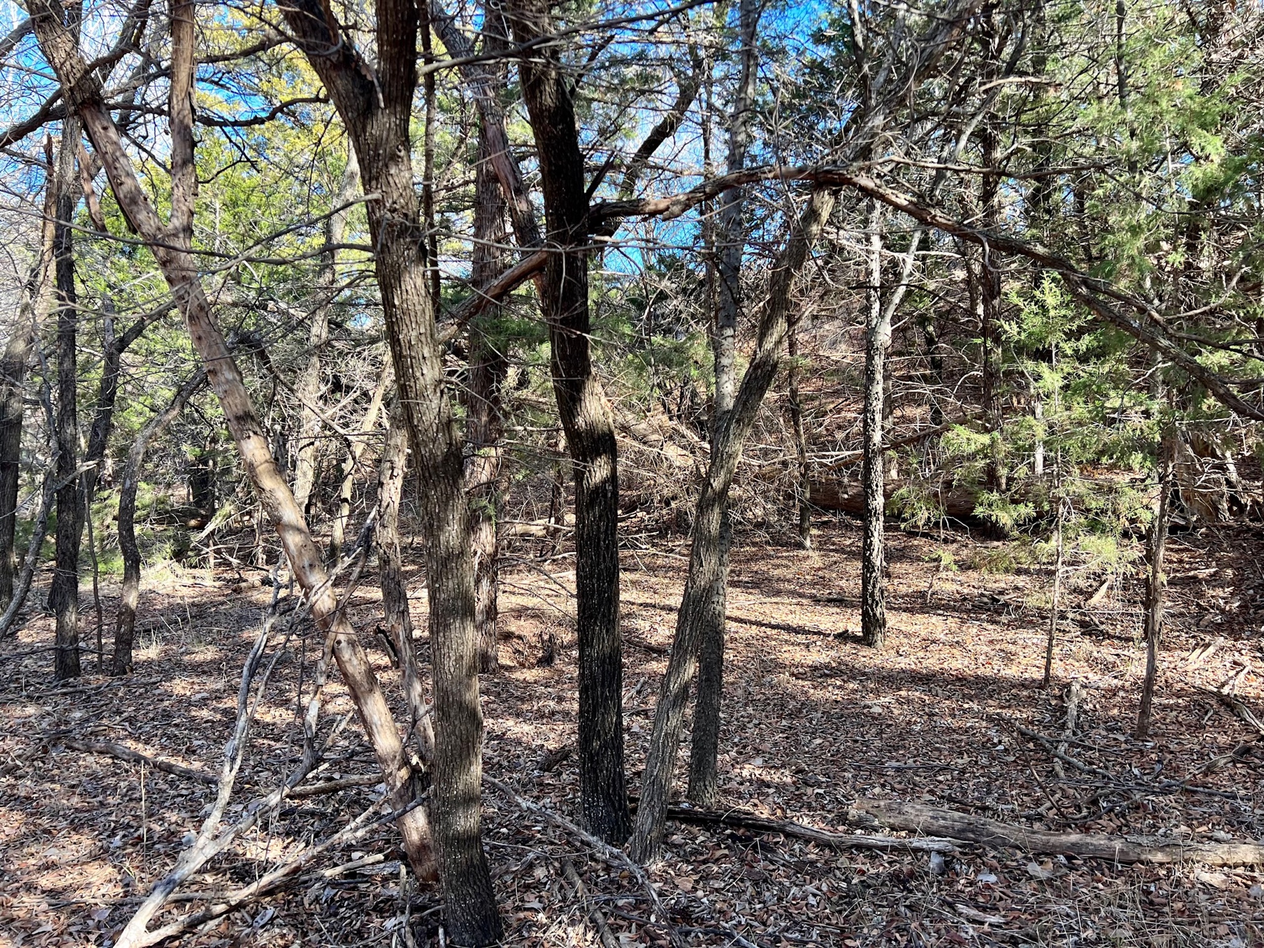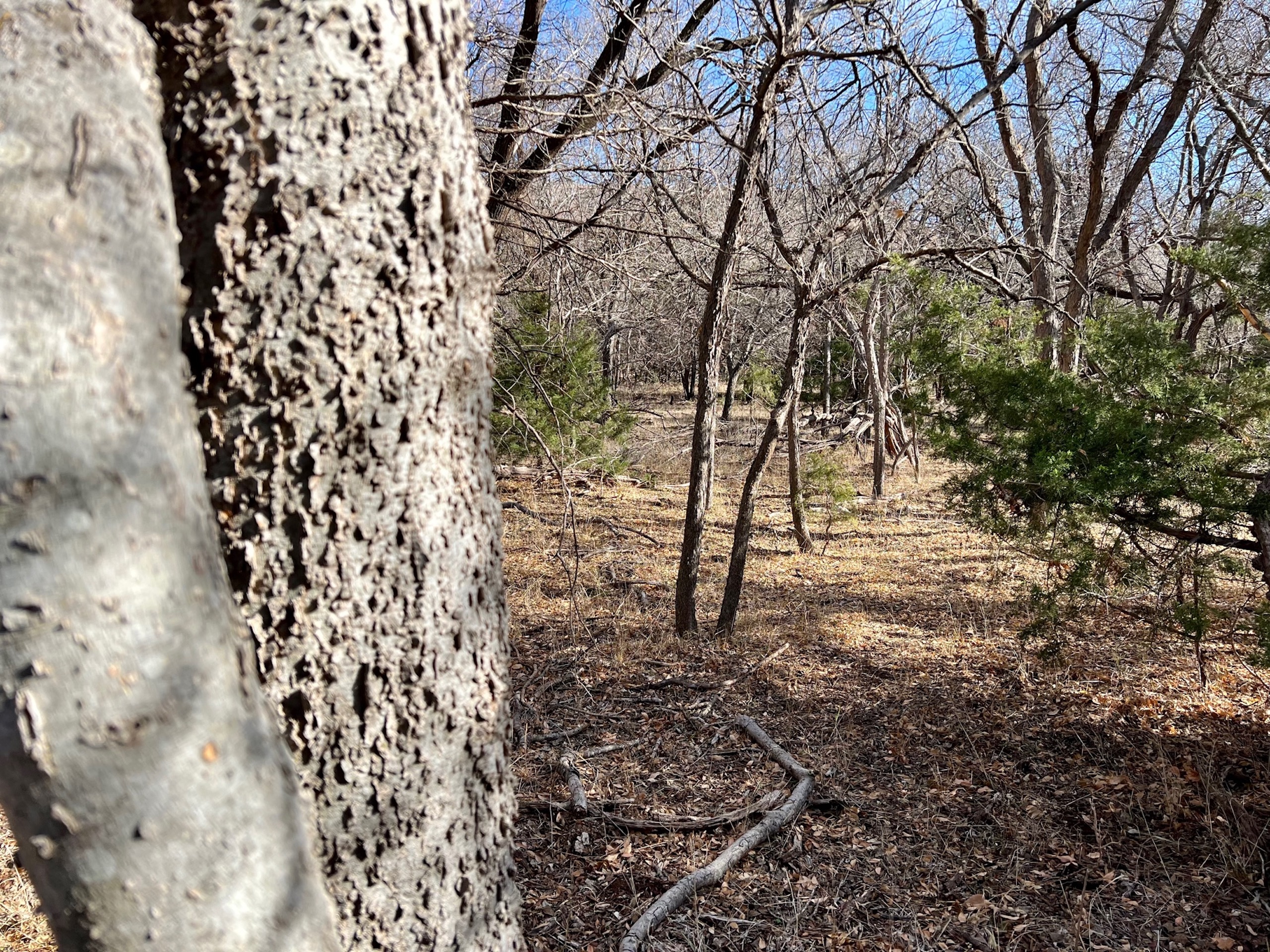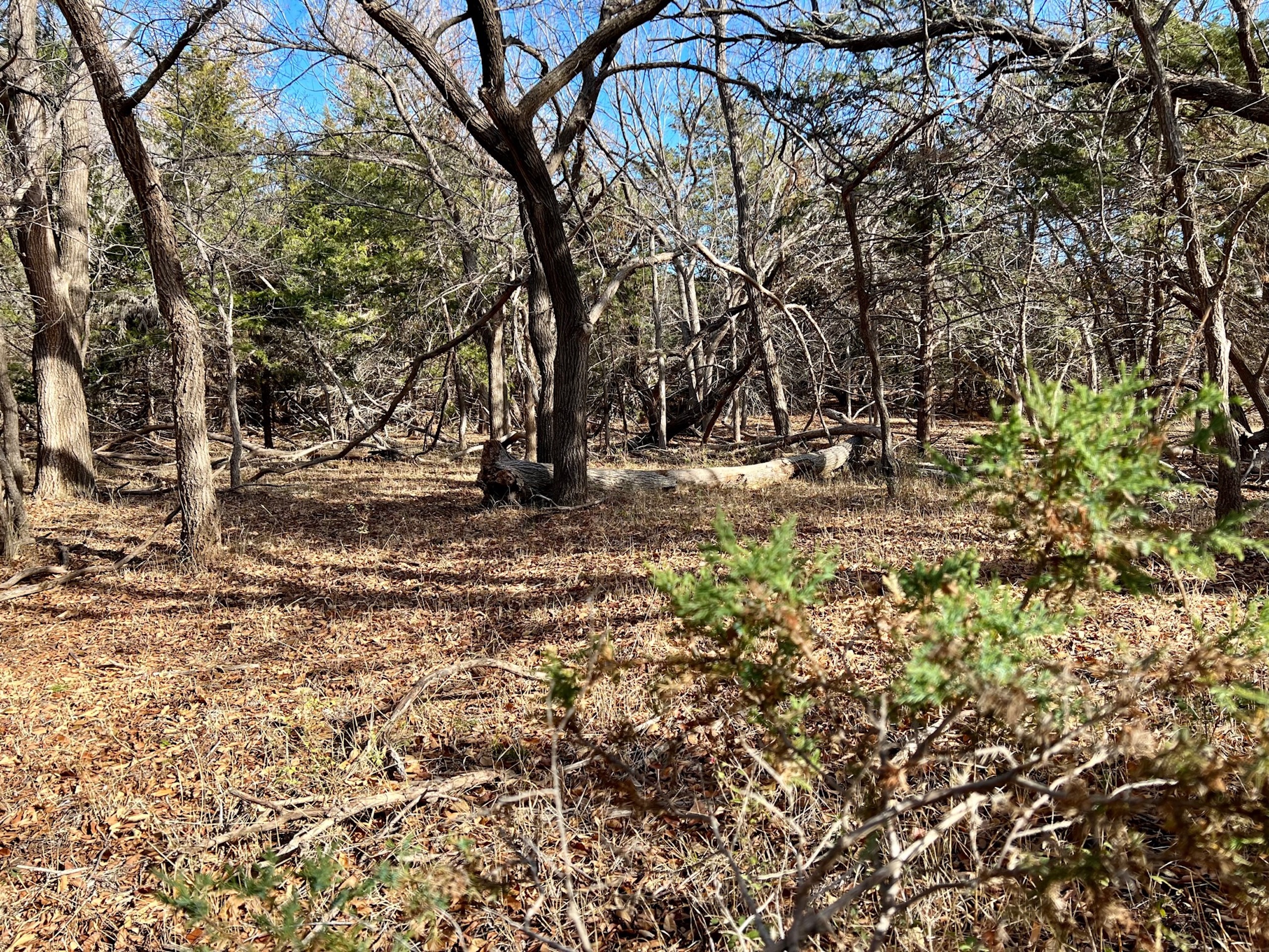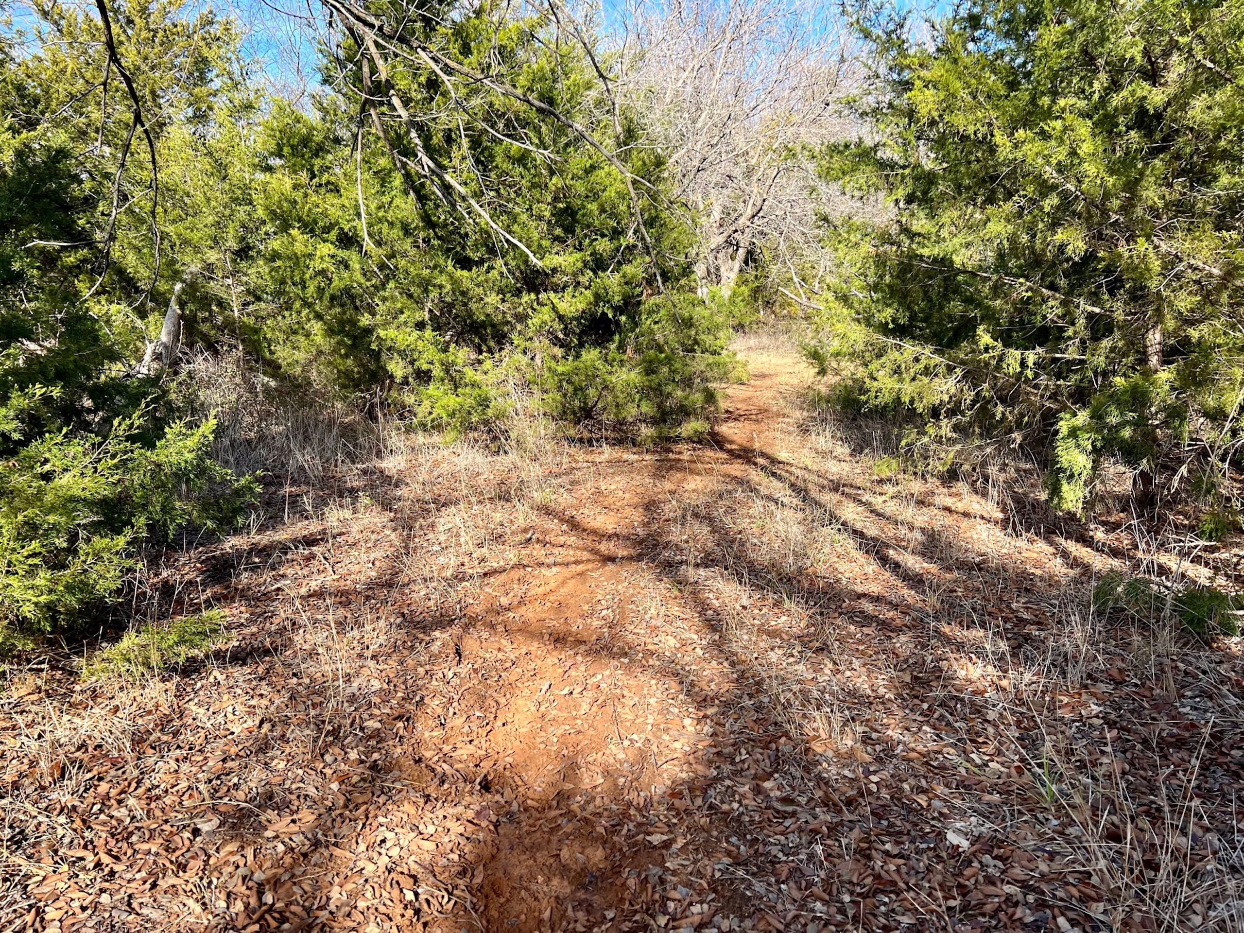 The ranch holds a diversity of wildlife. In addition to great Whitetail hunting, there are Mule Deer in this area. Sportsmen will also enjoy excellent Rio Grande turkey hunting. The mature hardwoods provide excellent roosting sites for a large winter flock of turkeys. Various portions of the ranch contain great Quail habitat as well. There is a 3-acre pond that went dry this summer. Unfortunately, we’ve experienced an extreme drought over the last year, one of the driest in many decades. The pond was stocked with fish and provided enjoyment for the owners for many years. It will fill up again. The scattered creek pools will hold ducks in the Winter as well. Once the fields are planted back to cropland, the waterfowl numbers could be unbelievable.
