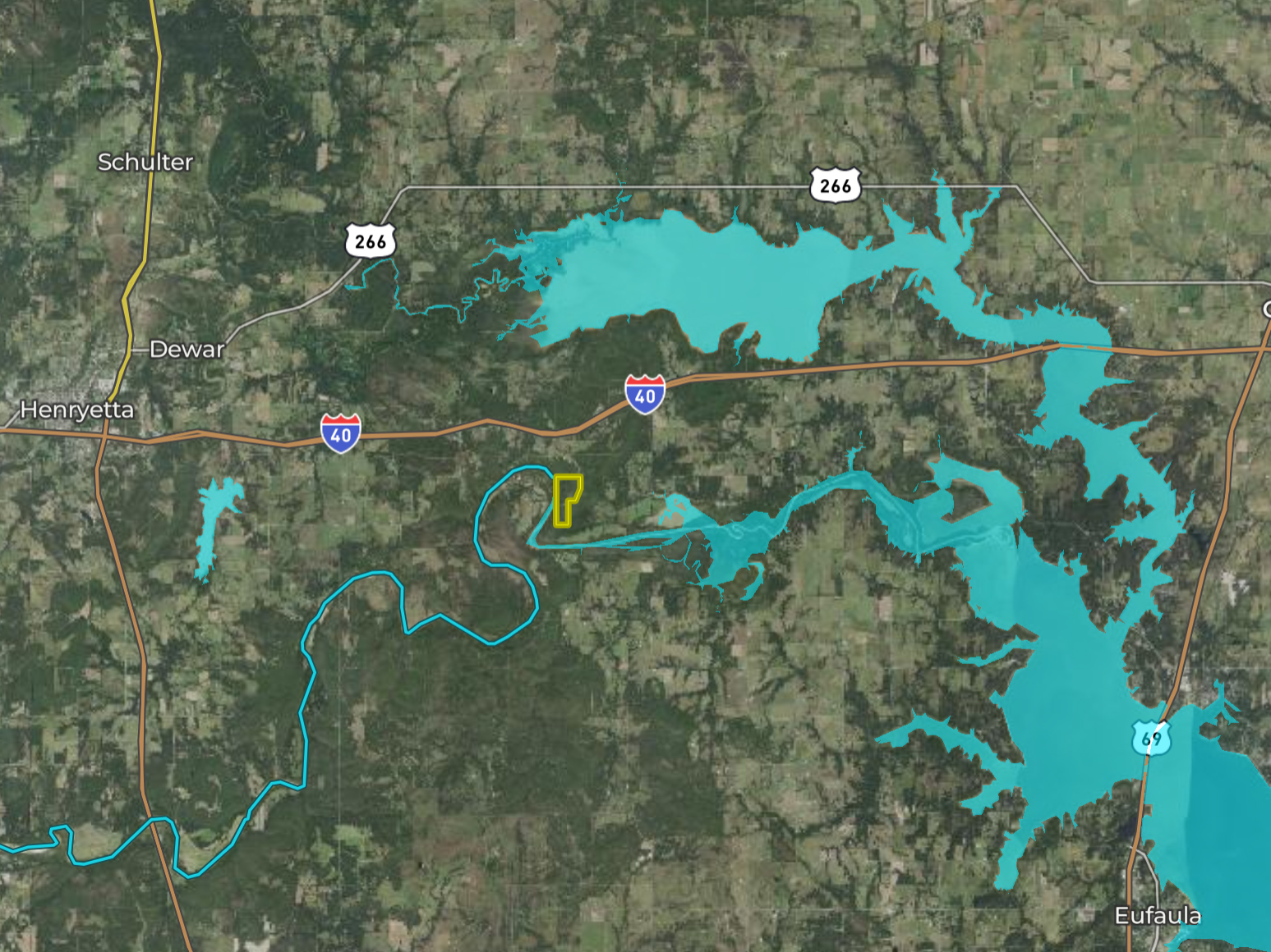 Properties joining the North Canadian River don’t come up for sale very often, so you better act quickly if you want to own your own slice of hunting and fishing “awesomeness”. This property is located in a secluded area with very limited access which creates some great hunting and fishing. Electric has been brought in to a small cabin which has a cistern for water. Additionally, another area has been cleared overlooking the river which would make a great home location. Several areas have been cleared along with trails throughout. There is access all the way down to the river where you can put in a small Jon boat and access some great fishing and seasonal duck hunting. Recently a mining operation has shown some interest in mining some flagstone but no contract is currently in place but the potential is there. Come out and let us take you for a tour around this great hunting and fishing property.