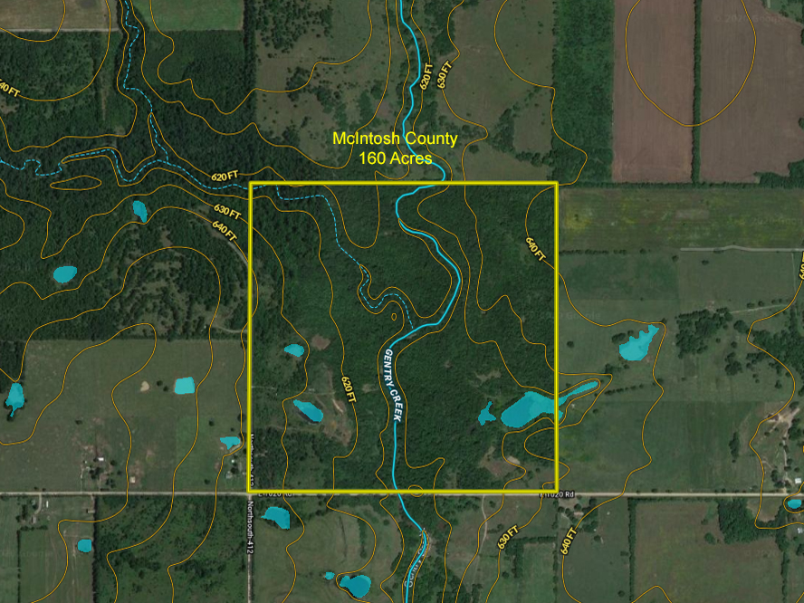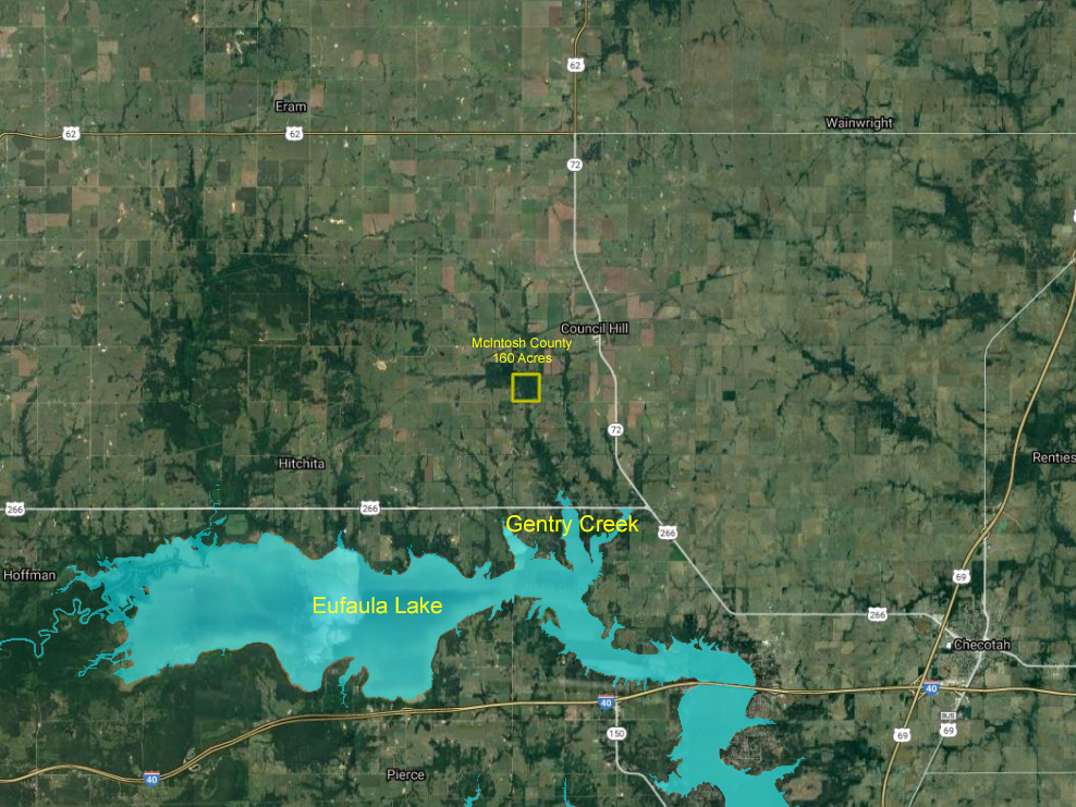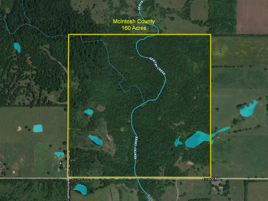 Gentry Creek Ranch is the perfect get-a-way for hunting, fishing, and camping and a great location for building a cabin or dream home. Gentry creek runs through the property not only providing a year around water source but also helping to create great wildlife habitat. Massive old growth hardwoods line the banks of the creek include walnut, red oak, post oak, hickory, pecan, along with beautiful redbud and sycamore. There are three ponds for you to fish and I was told there are fish that come up Gentry creek (seasonally). Without a doubt you can drive just a few miles to the Gentry creek boat ramp and enjoy a day of fishing in one of the hotspots in OK for crappie, catfish and sand bass. Call and let me take you for a ride around this great recreational tract.